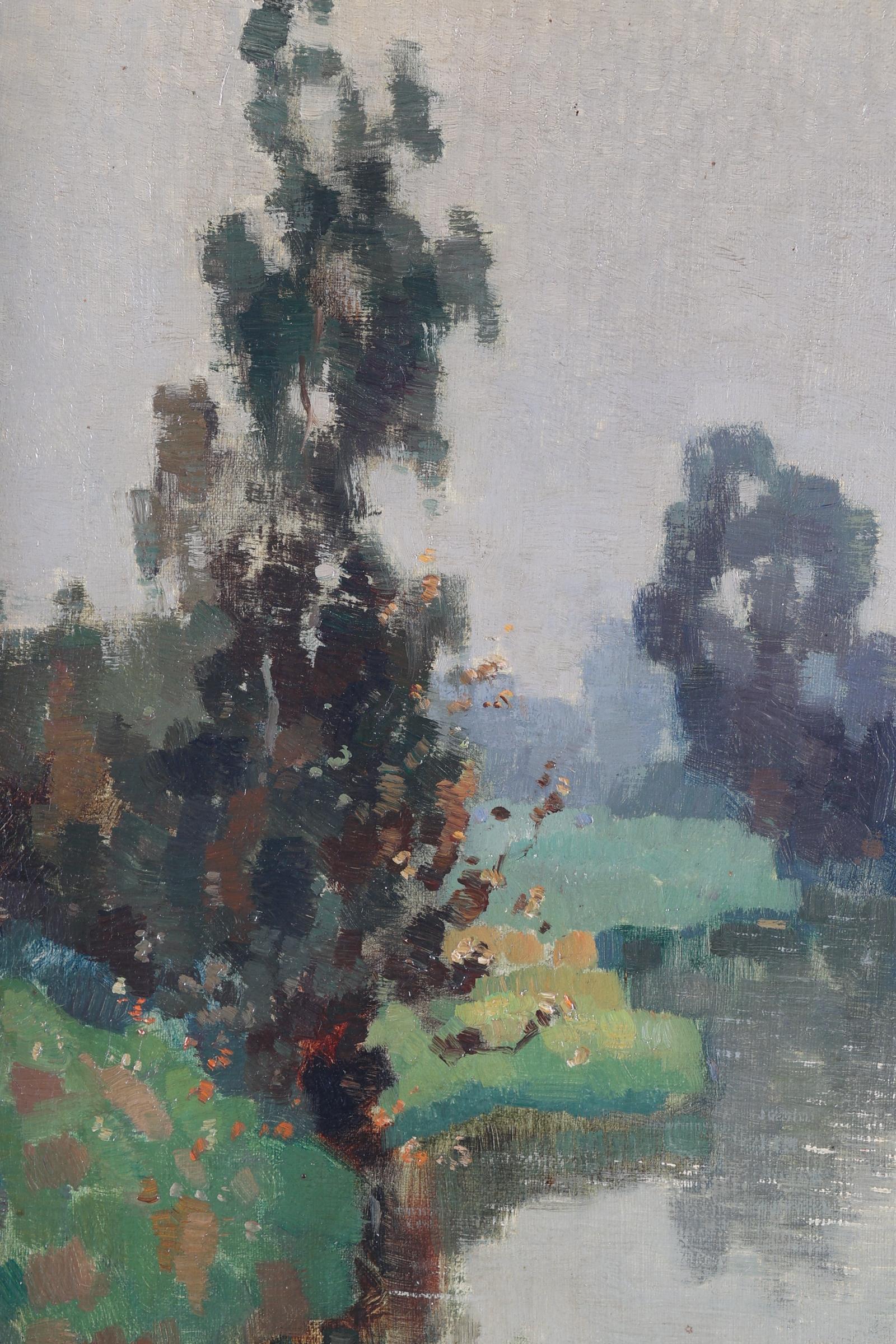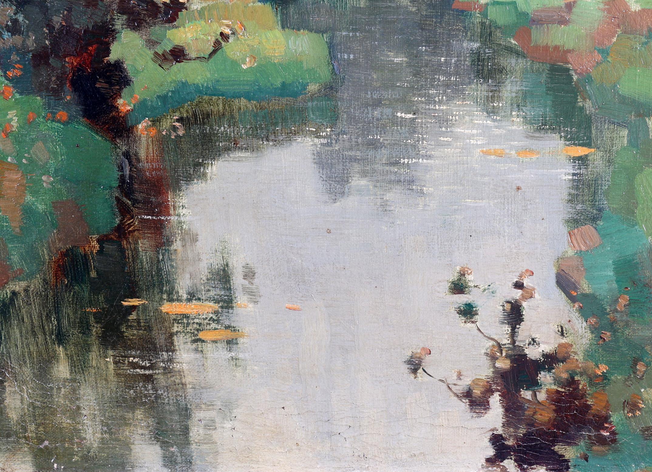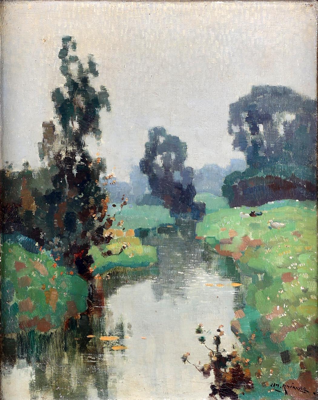Jan Knikker, Waterrijk landschap met eenden, olieverf op doek, 52 x 40 cm.