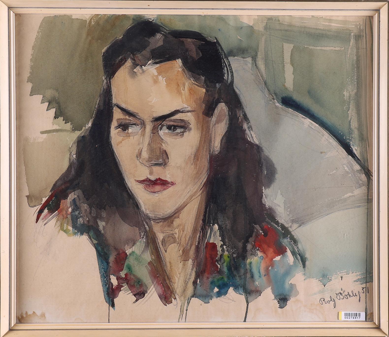 Rolf Böhlig (1904-1979), Portret van ballerina Maria Sylvaine, aquarel op papier, 45 x 38 cm., gedateerd 1951