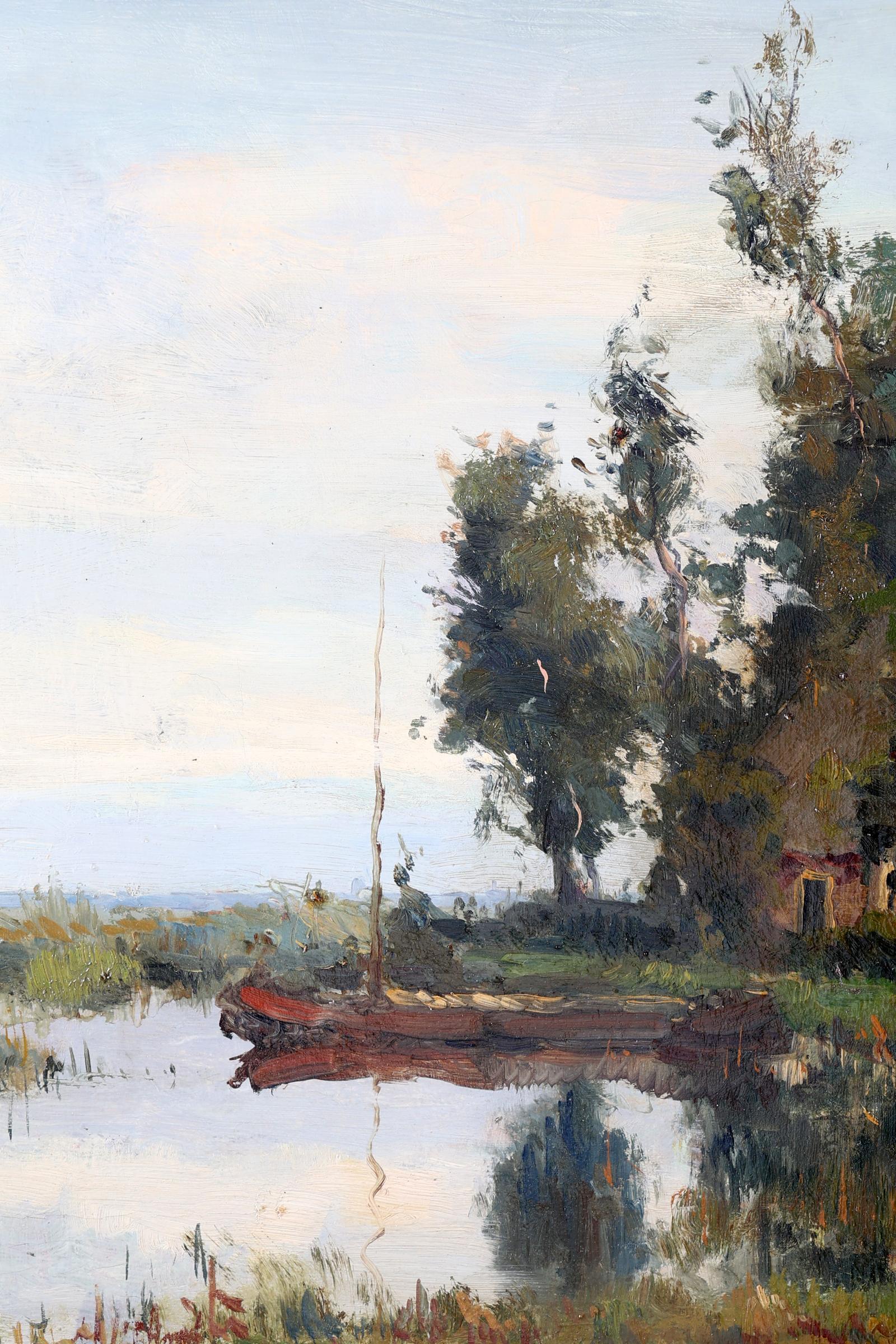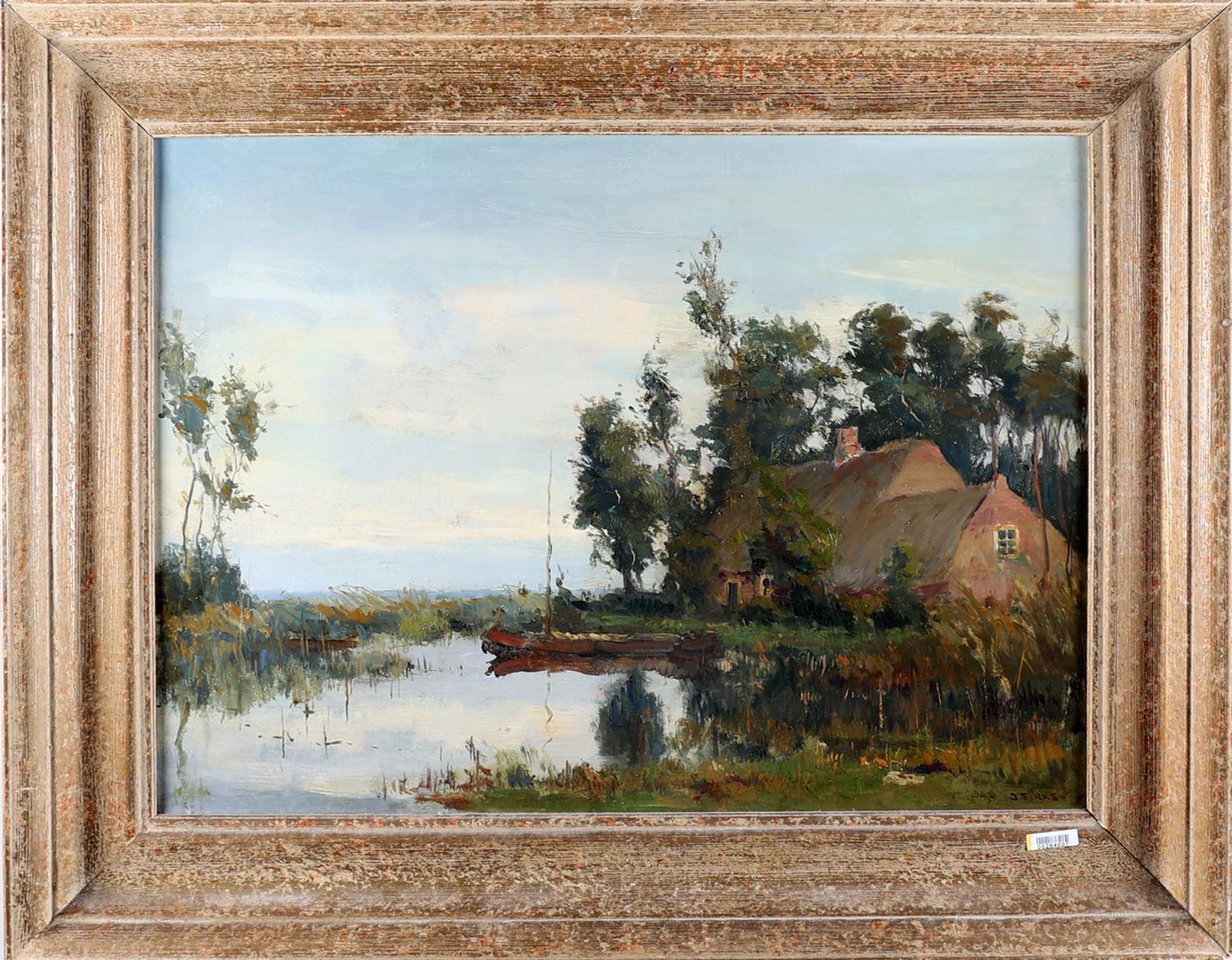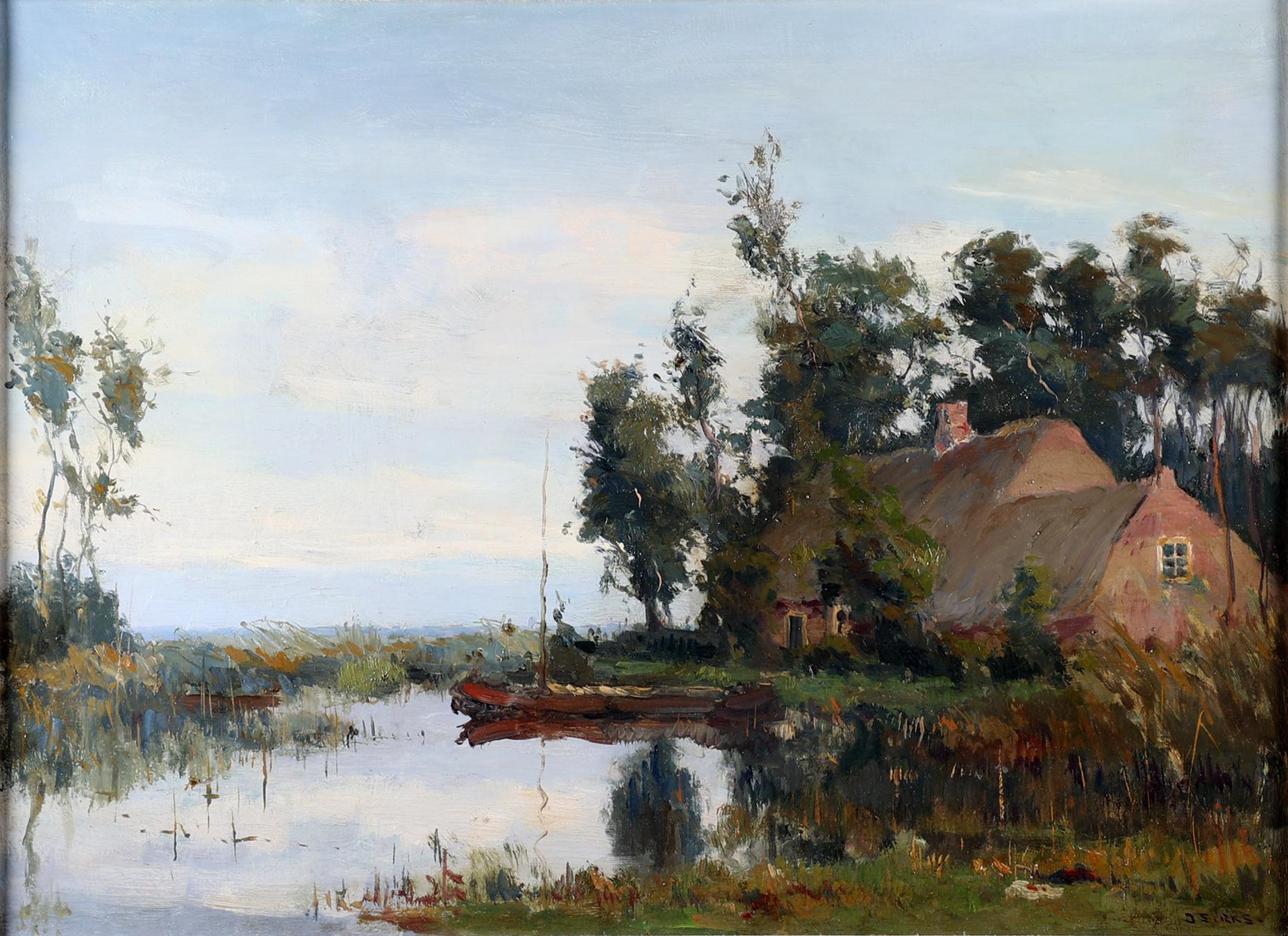 Jan Sirks (1885-1938), Landschap met boerderij aan plas, olieverf op doek, 46 x 61 cm.
