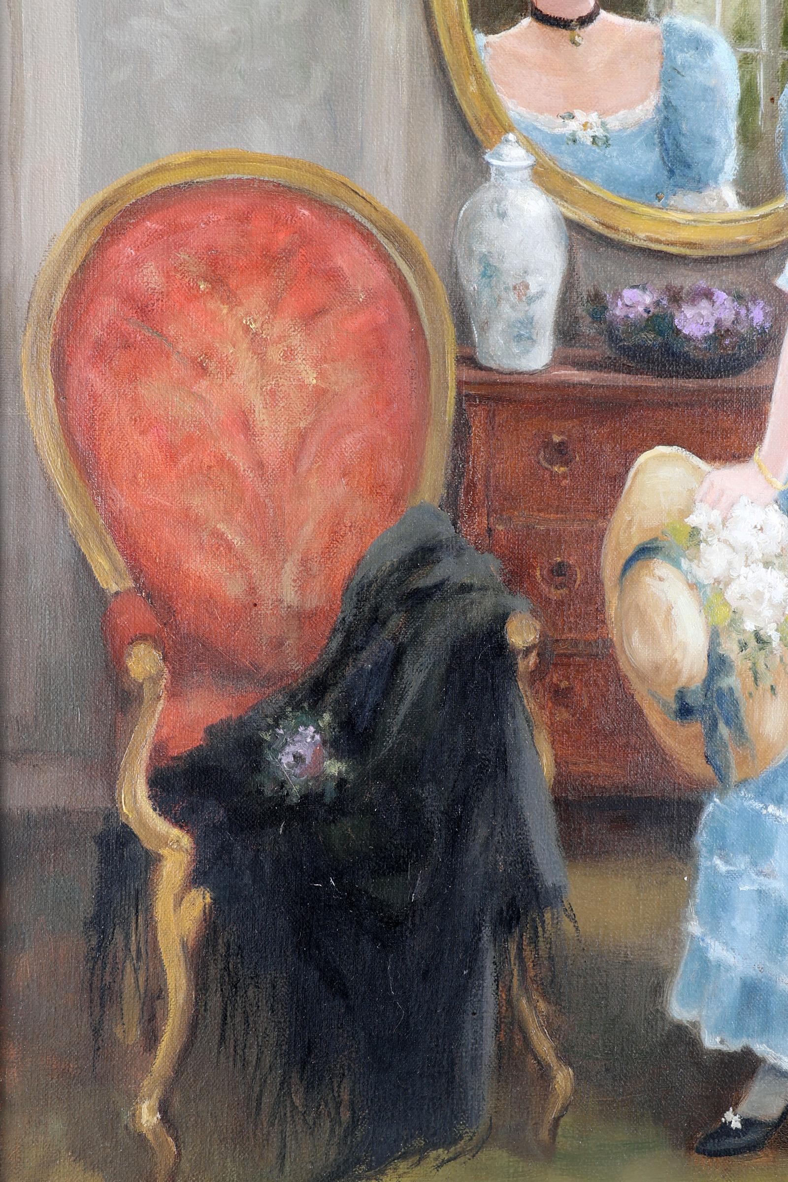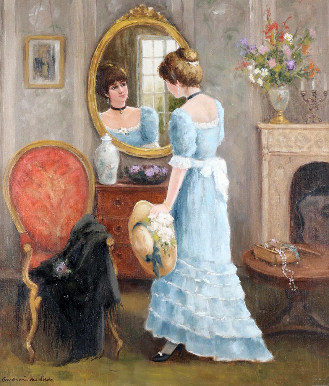 Annemarie van Wolde (1921-2018), Een vrouw voor de spiegel, olieverf op doek, 60 x 70 cm.