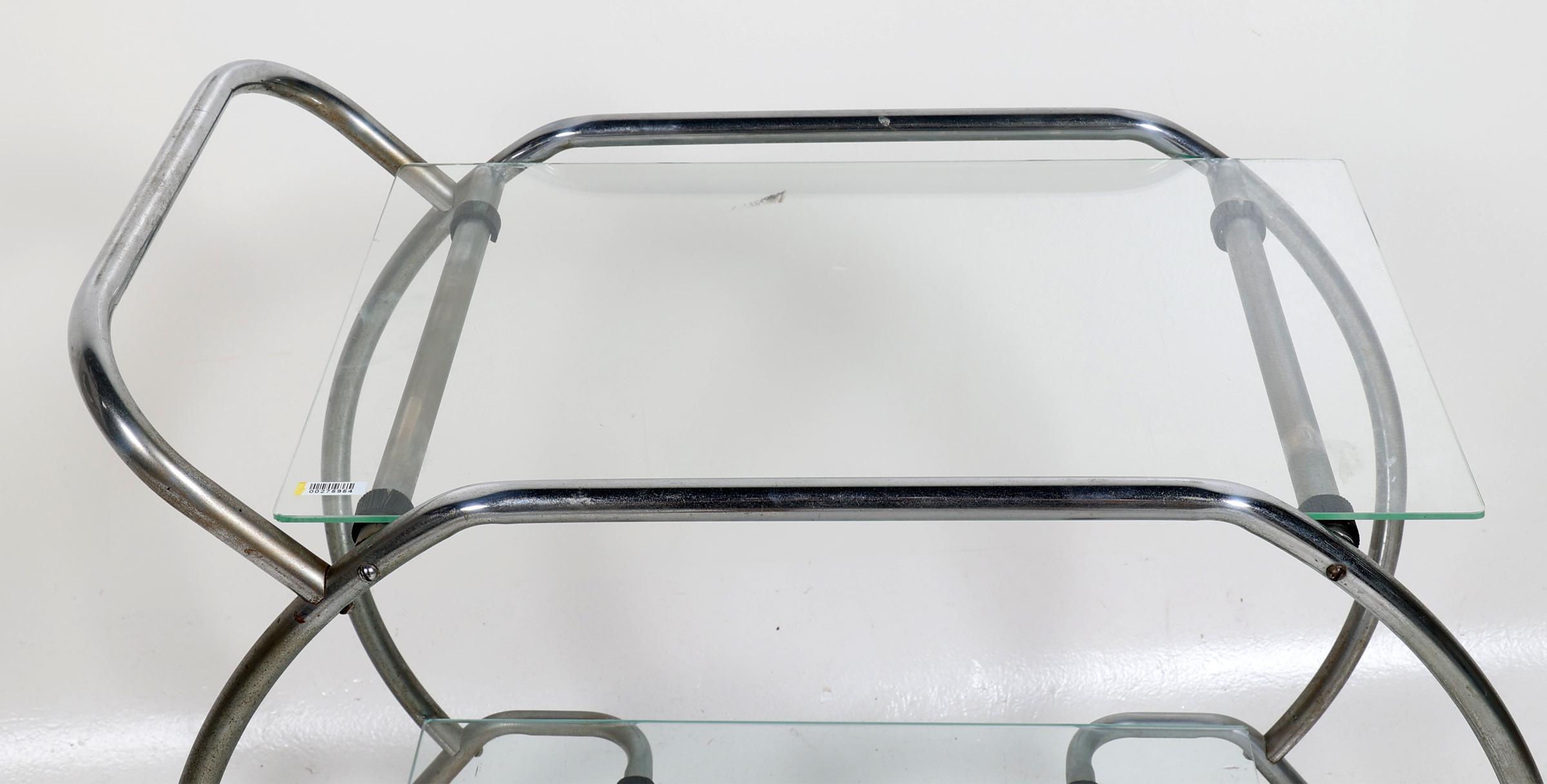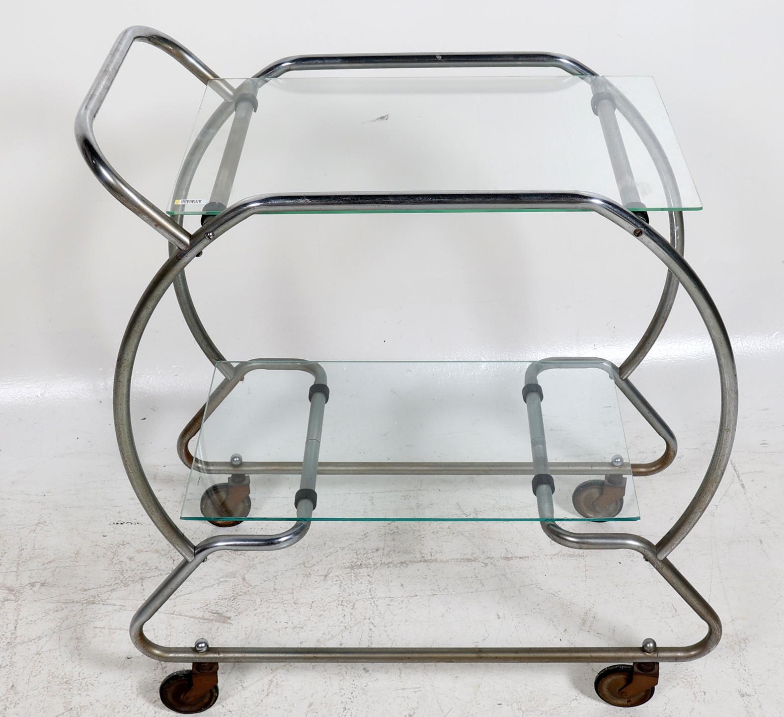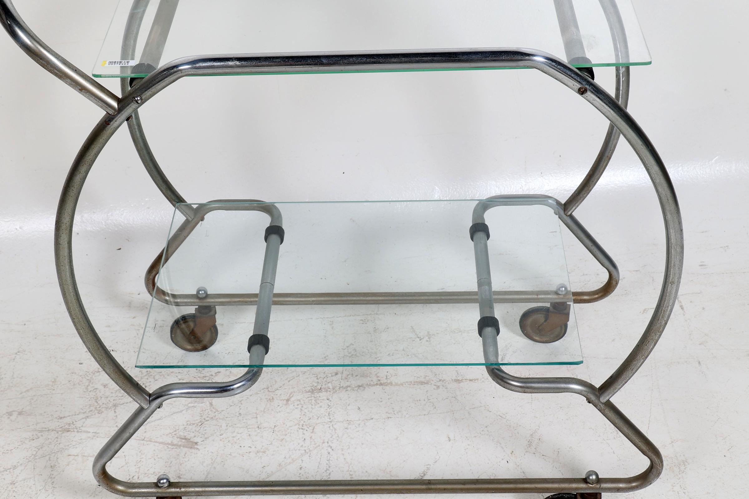 Chroom art deco ronde theewagen met glasplaten, 20-erjaren, h.81 x b.70 x d.38 cm.