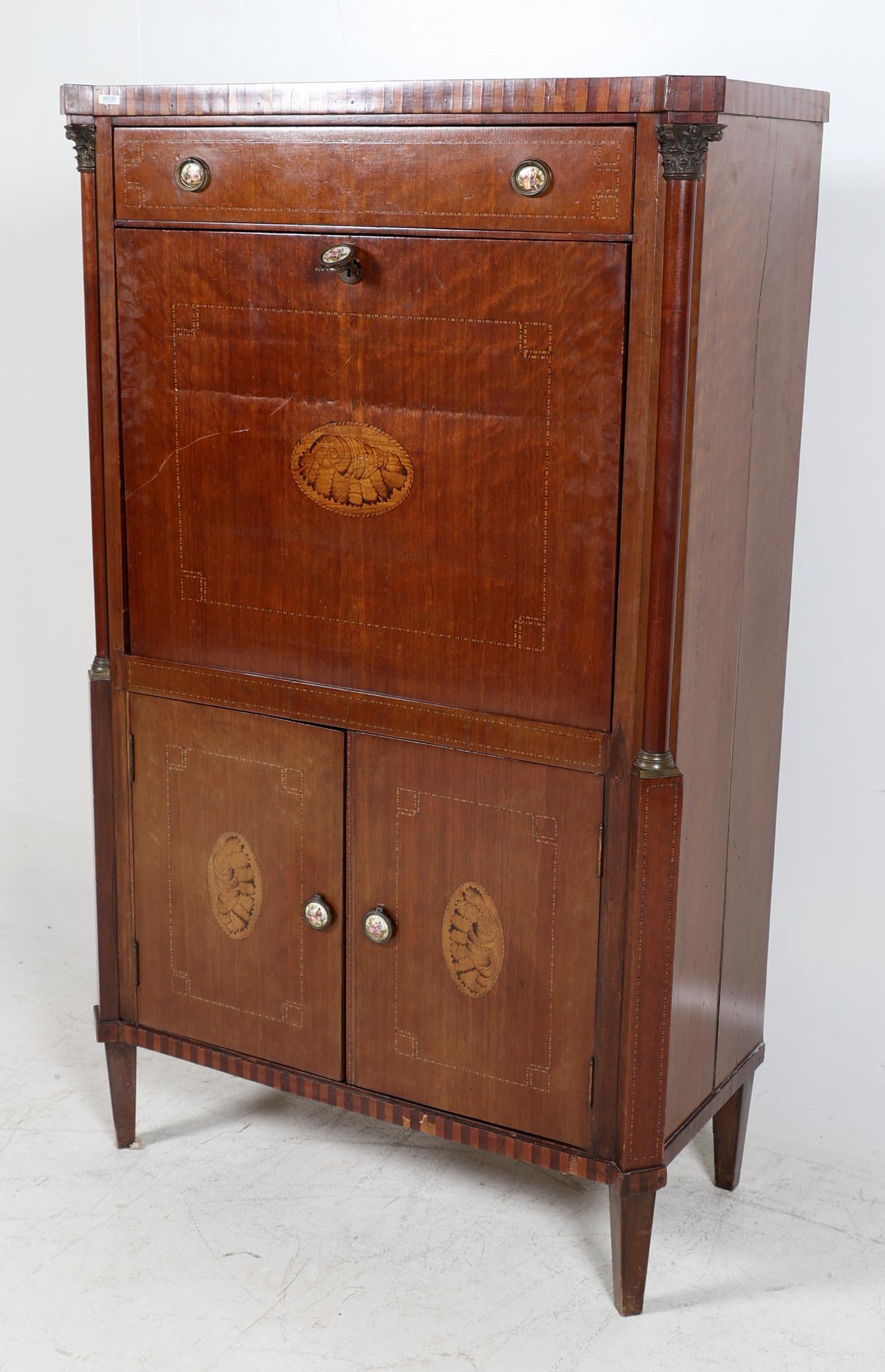 Antieke ingelegde Louis Seize secretaire à abattant, Holland ca.1790, h.151 x b.92 x d.46 cm.
