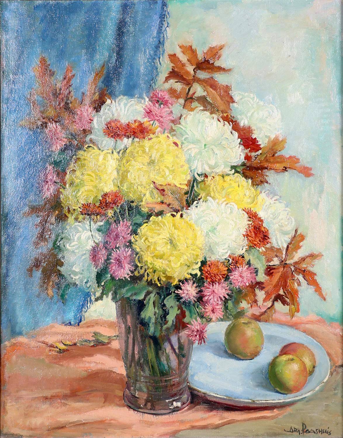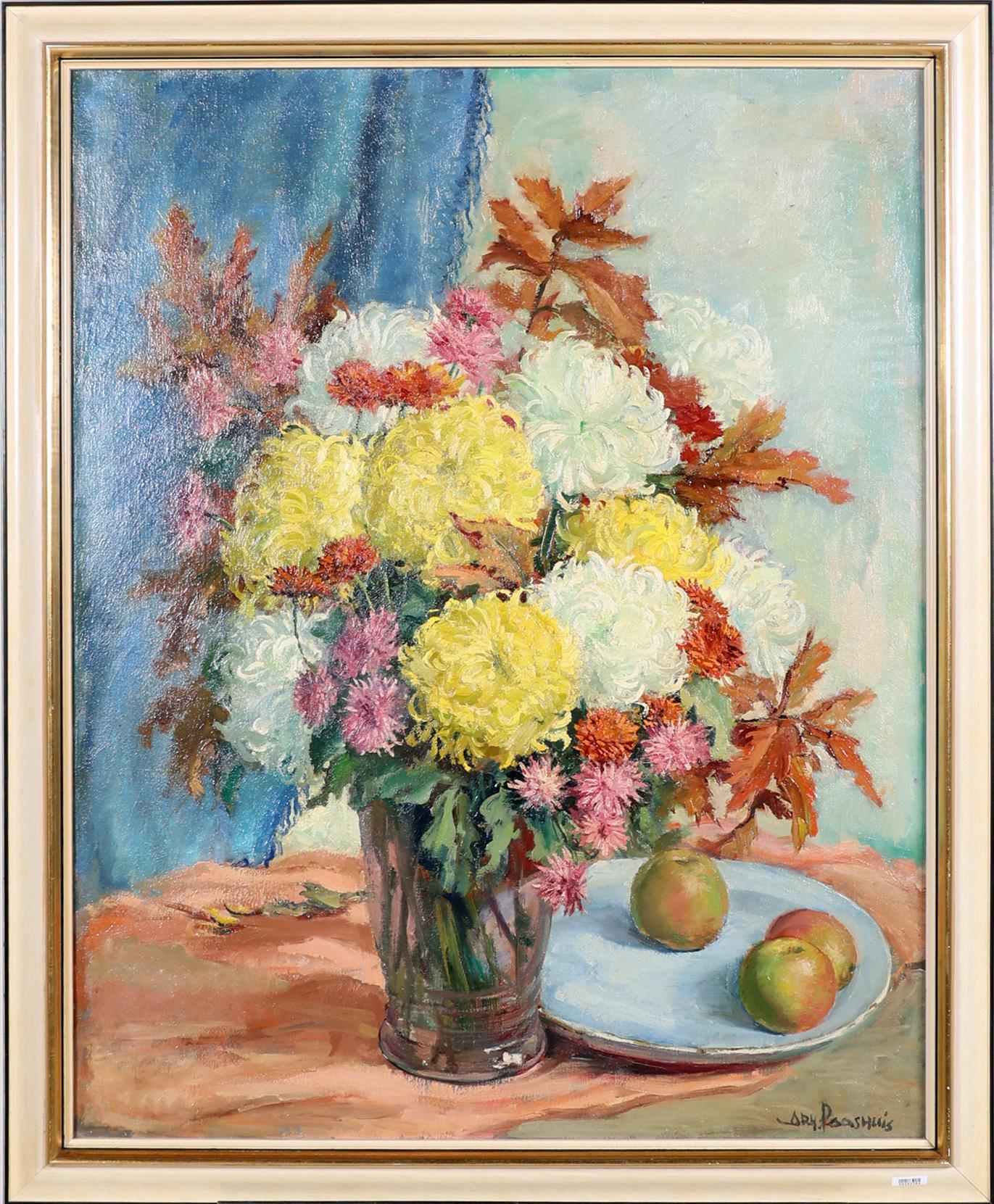Arnoud Paashuis (1912-1974), Stilleven met Chrysanten, olieverf op doek, 100 x 80 cm.