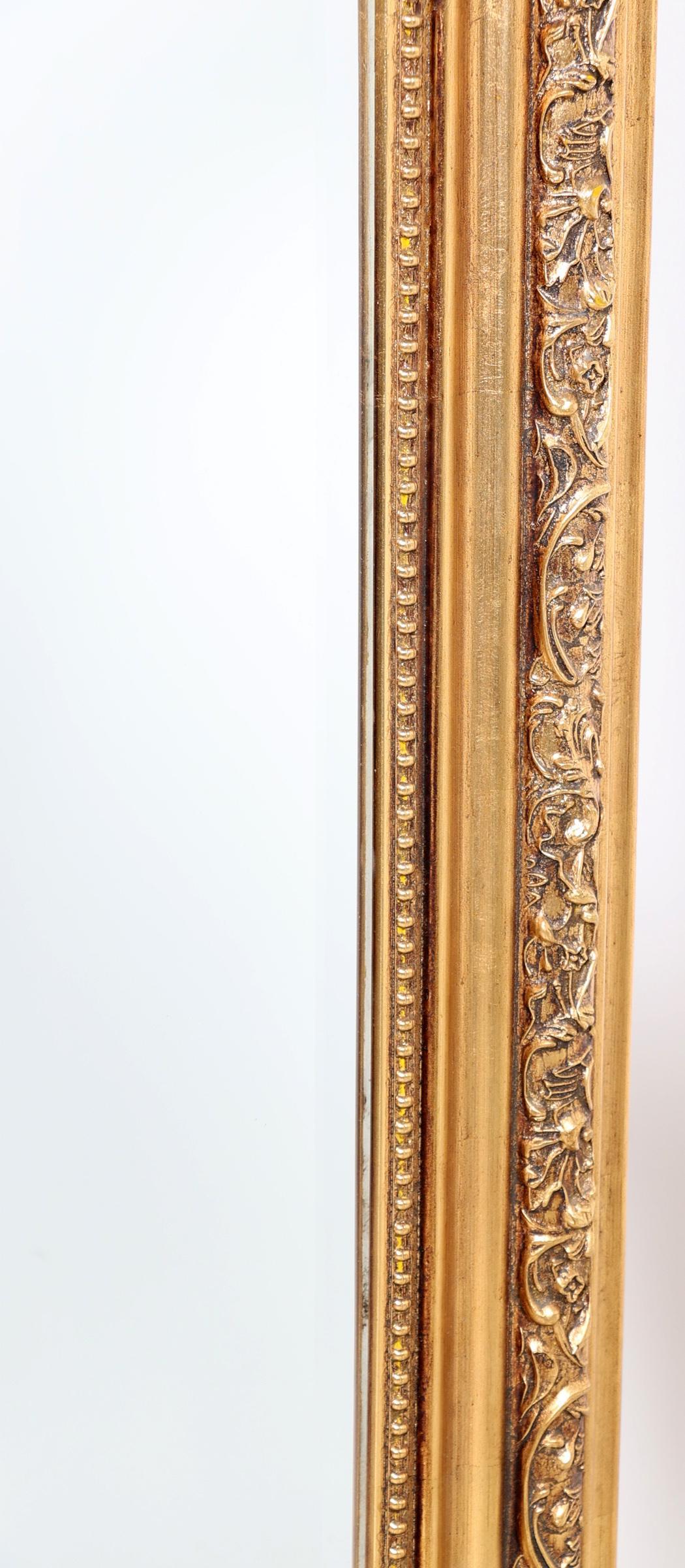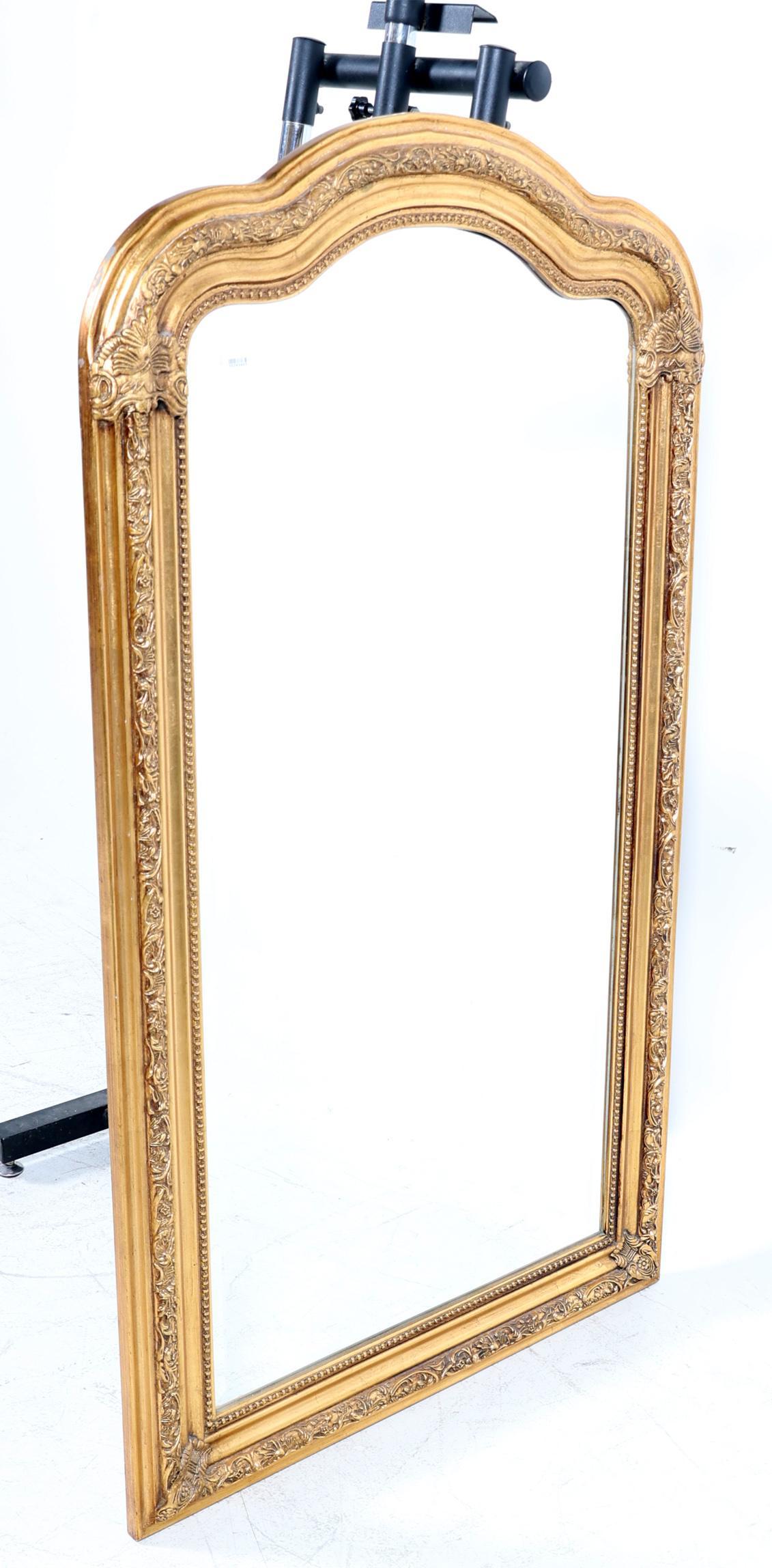 Geslepen spiegel in goudkleurige lijst, 140 x 79 cm.