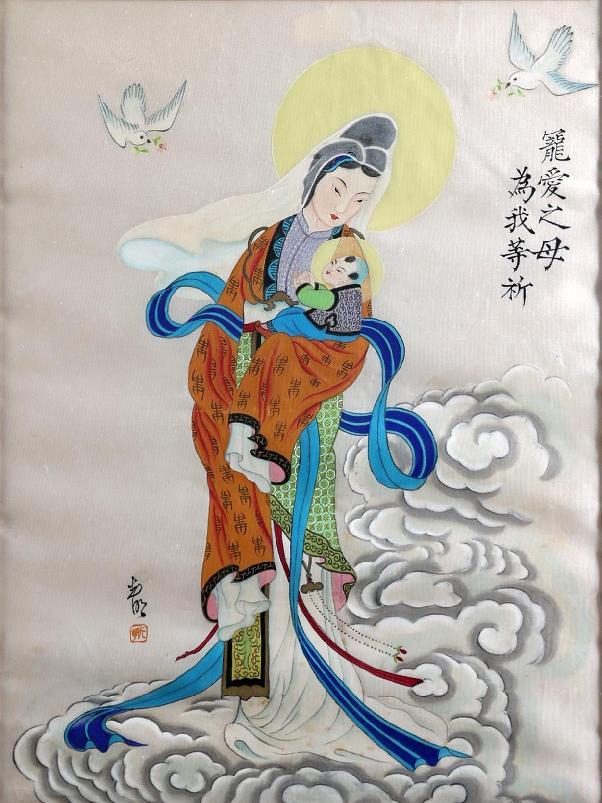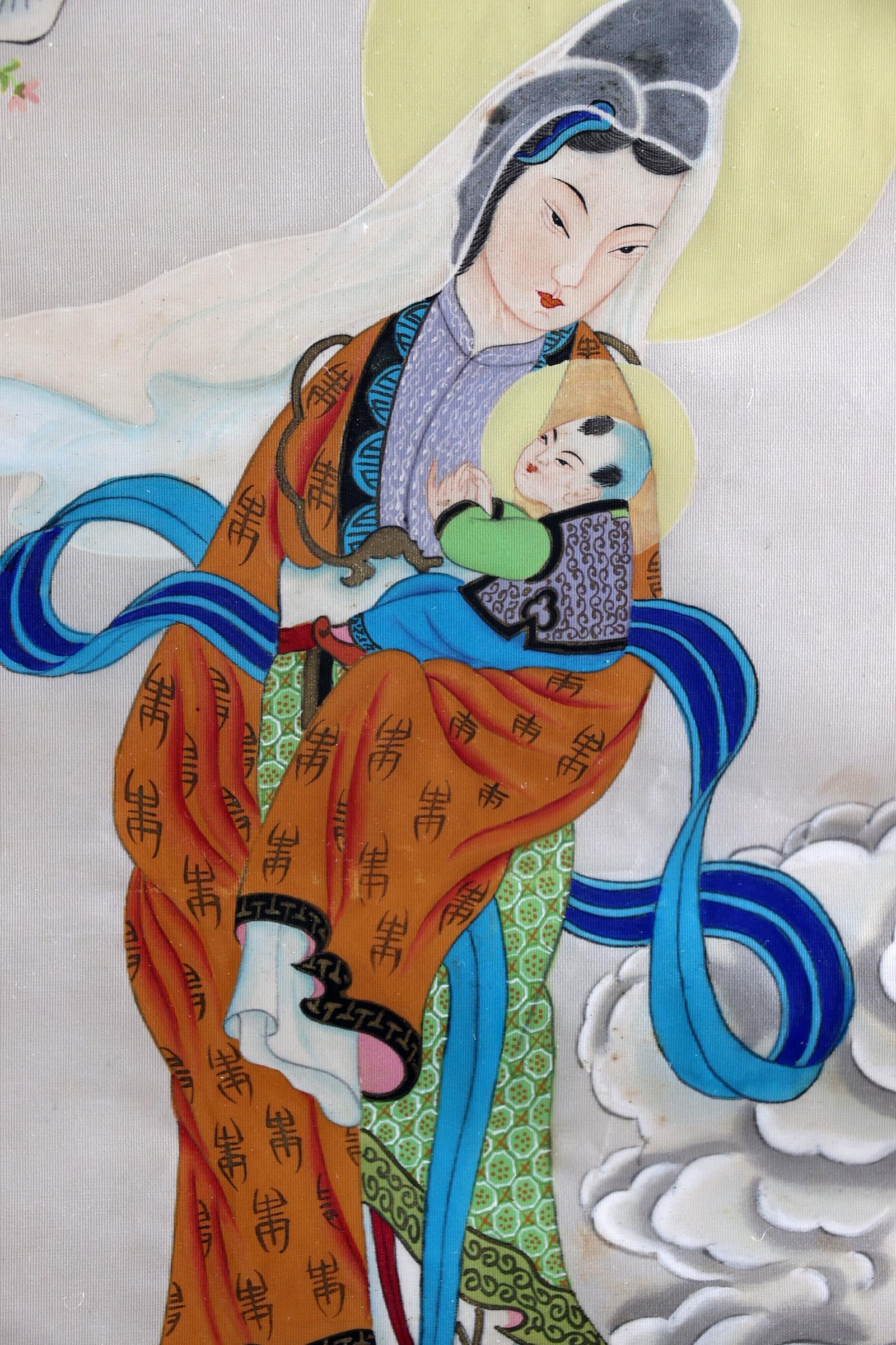 Onb.,meester, Chinese voorstelling van moeder met kind, acryl op stof, 41 x 31 cm.