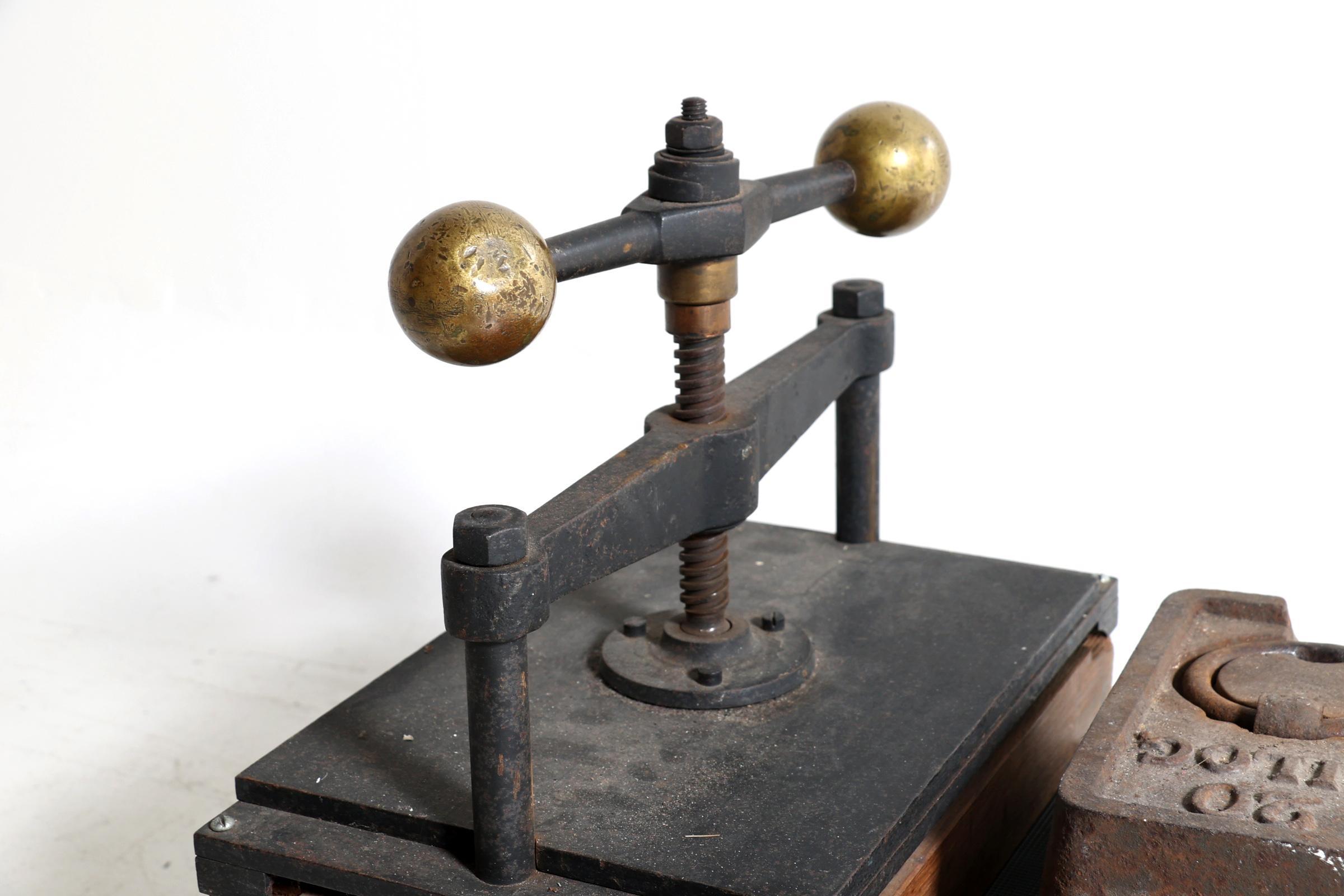 Koop van een oude boekenpers en een gewicht (2 kg.)