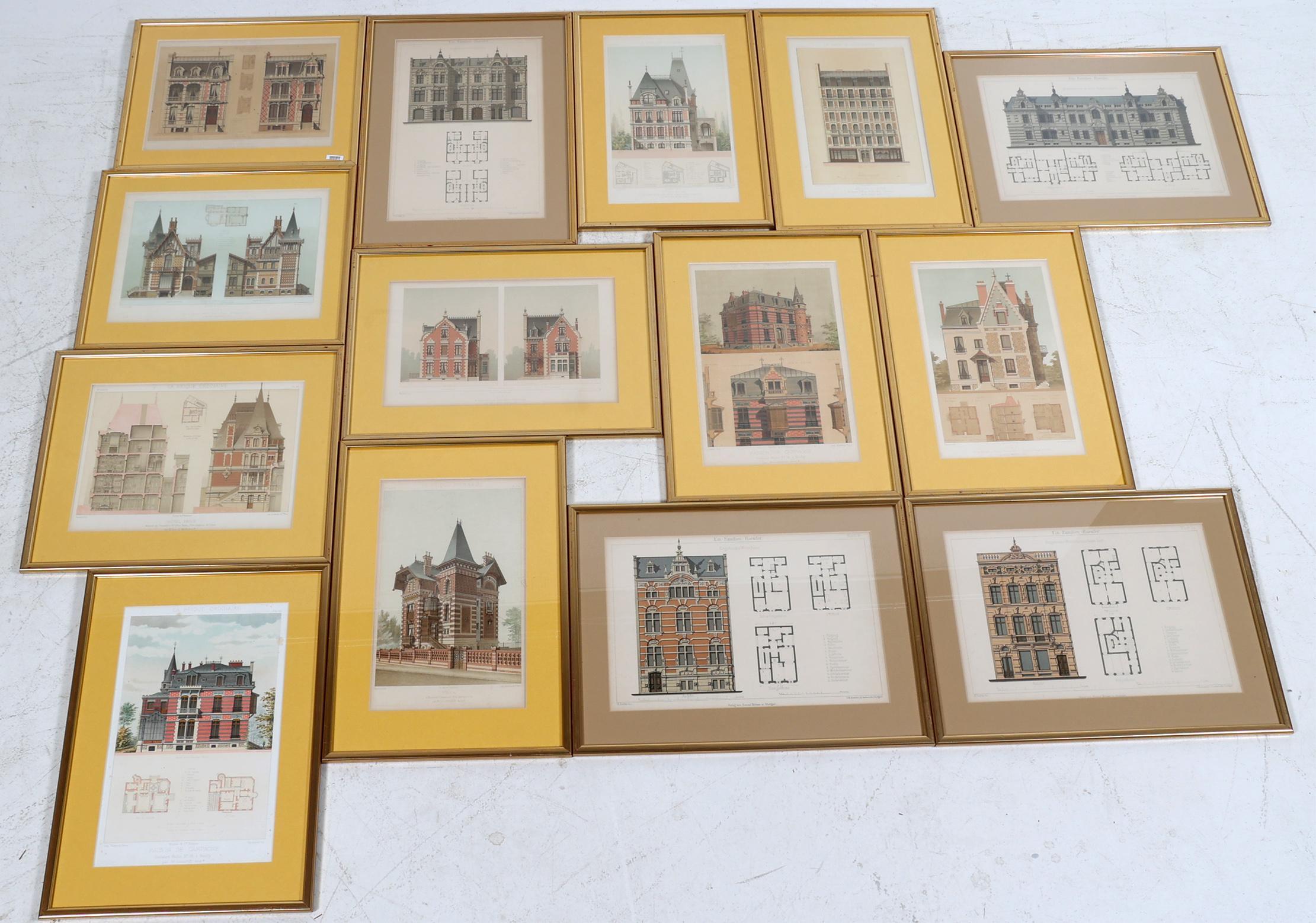 14 Antieke lithografieën van gebouwen