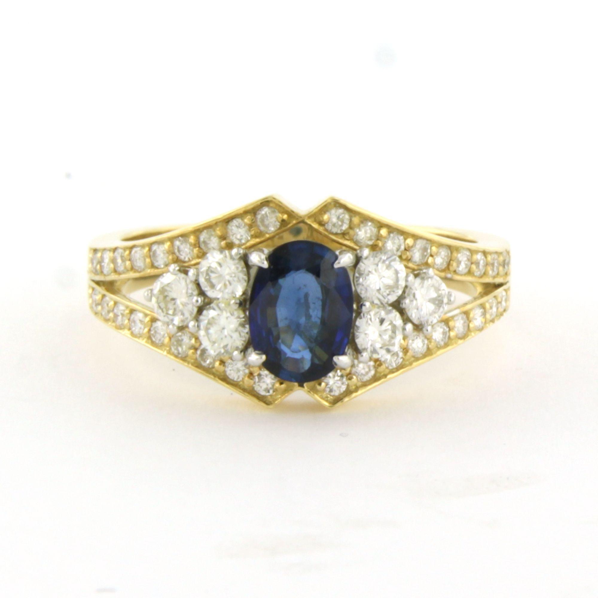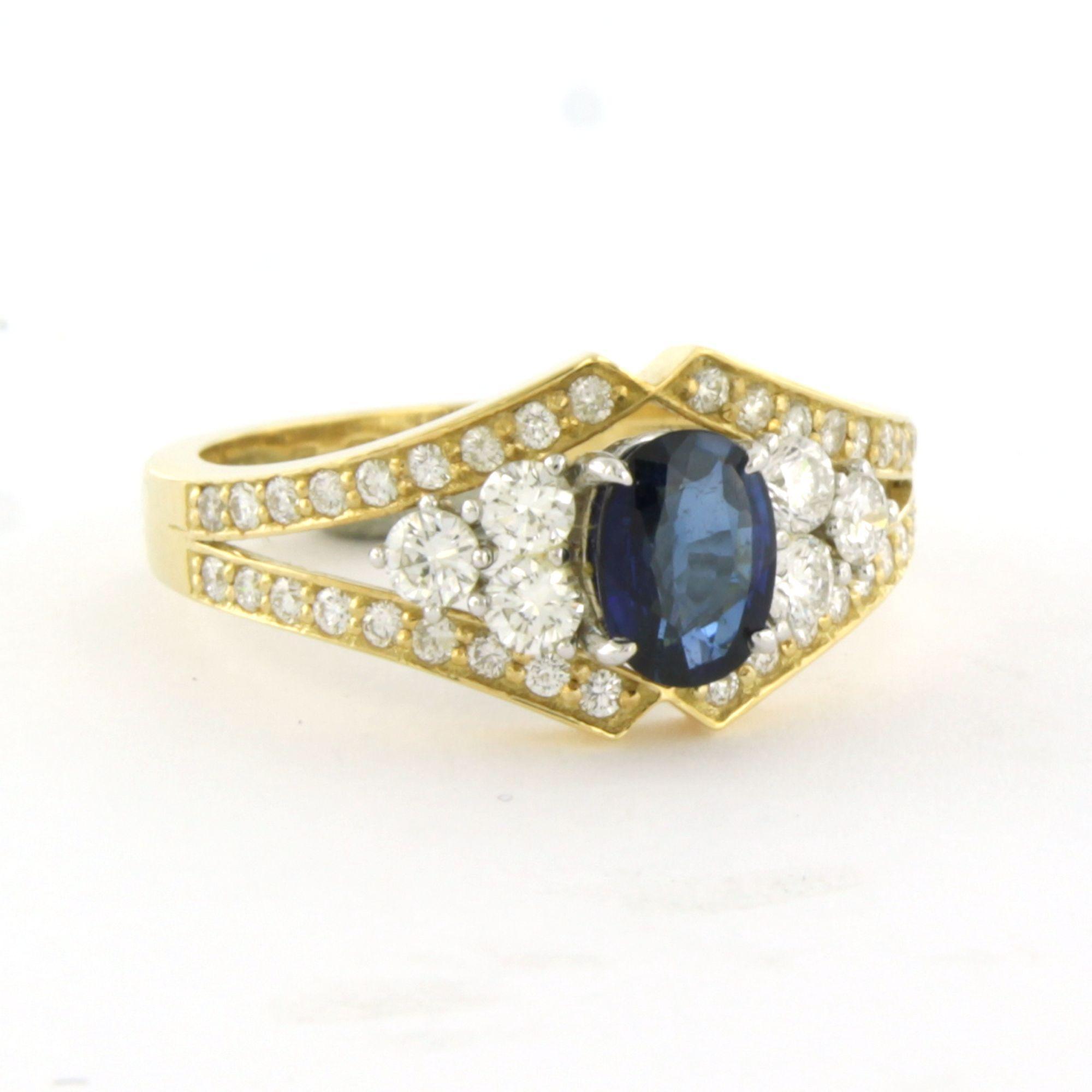 18 Kt. bicolour gouden ring bezet met saffier 0.69 ct en briljant geslepen diamanten tot. 0.70 ct F/G VS/SI - ringmaat 17.5 (55)