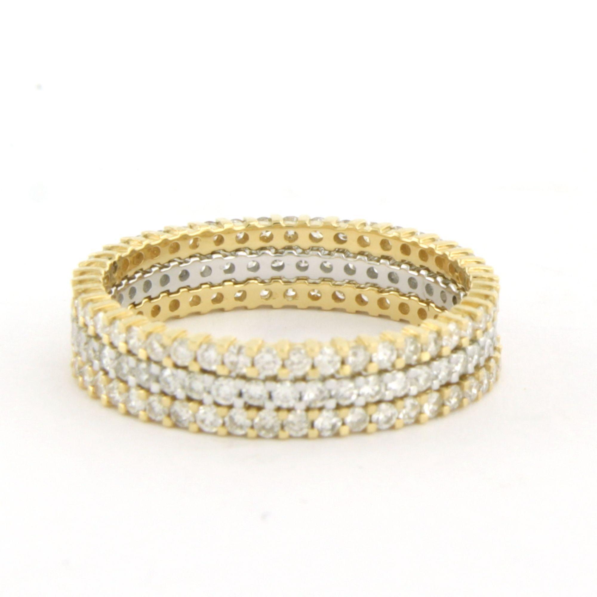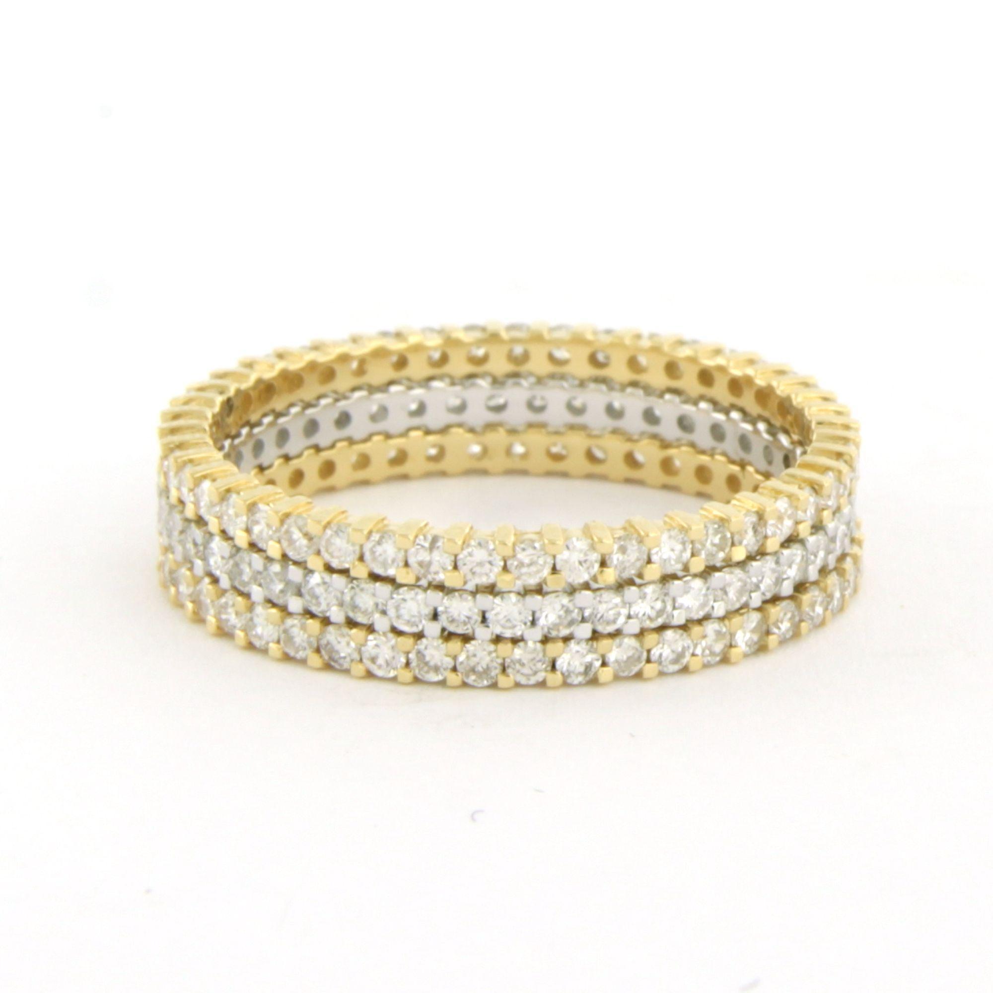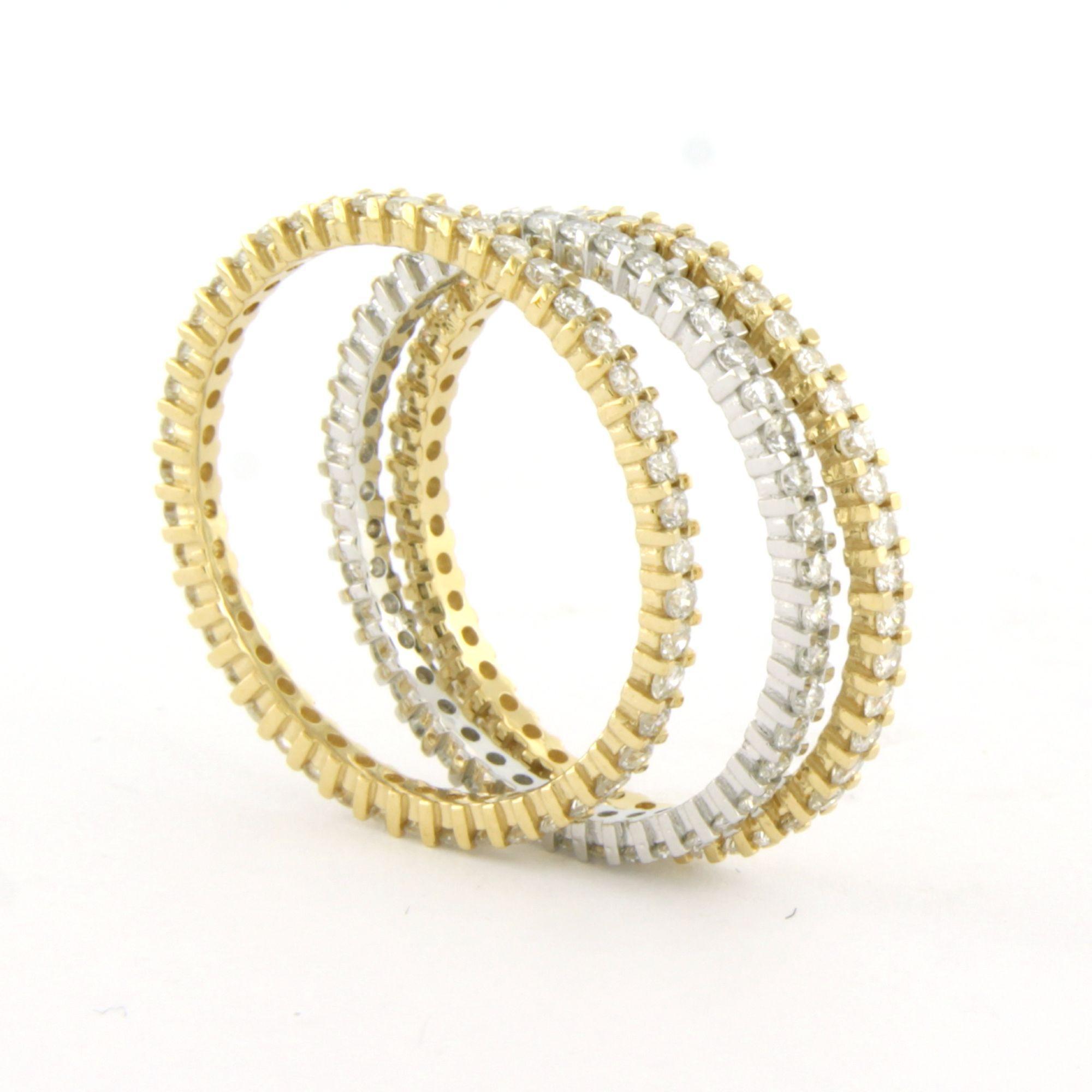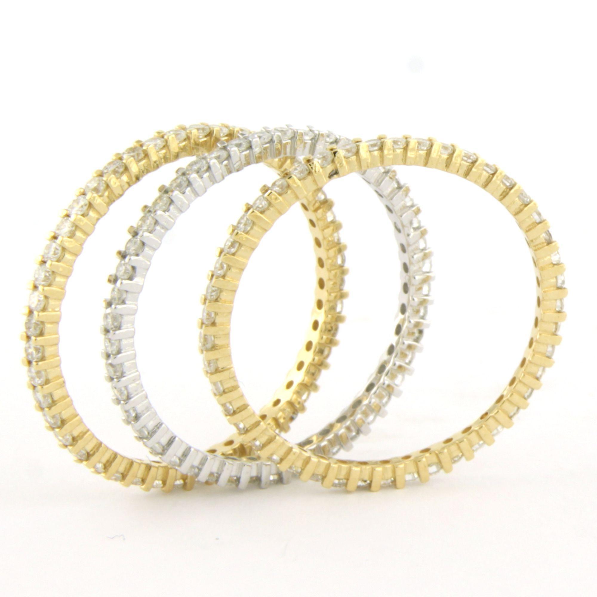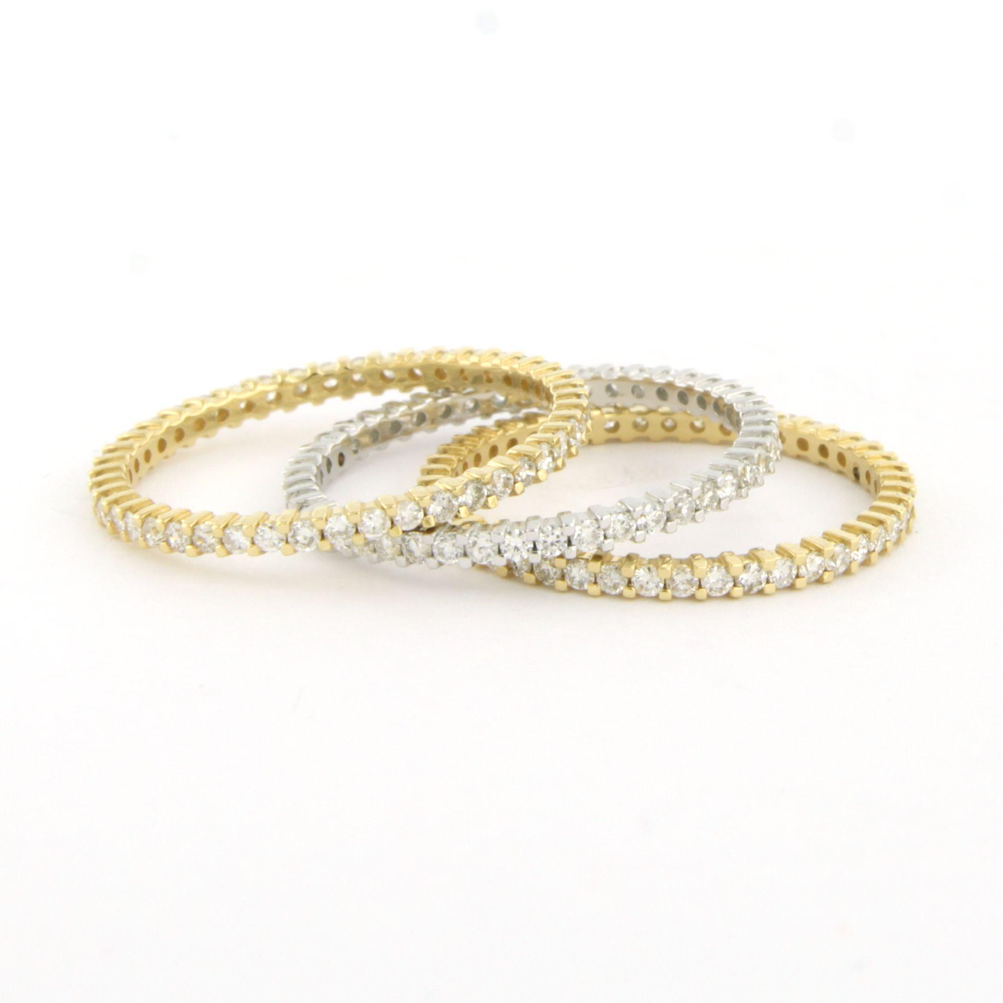 Set van drie hele alliance ringen, 18 Kt. witgoud en geelgoud, totaal 1.42 ct F/G VS/SI - ringmaat 18 (57)