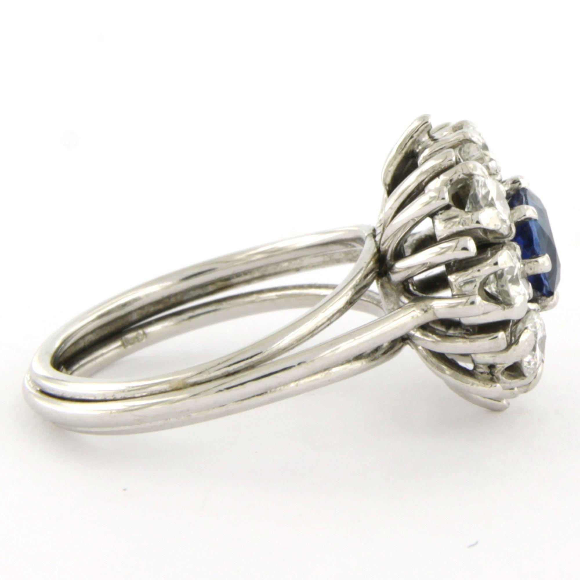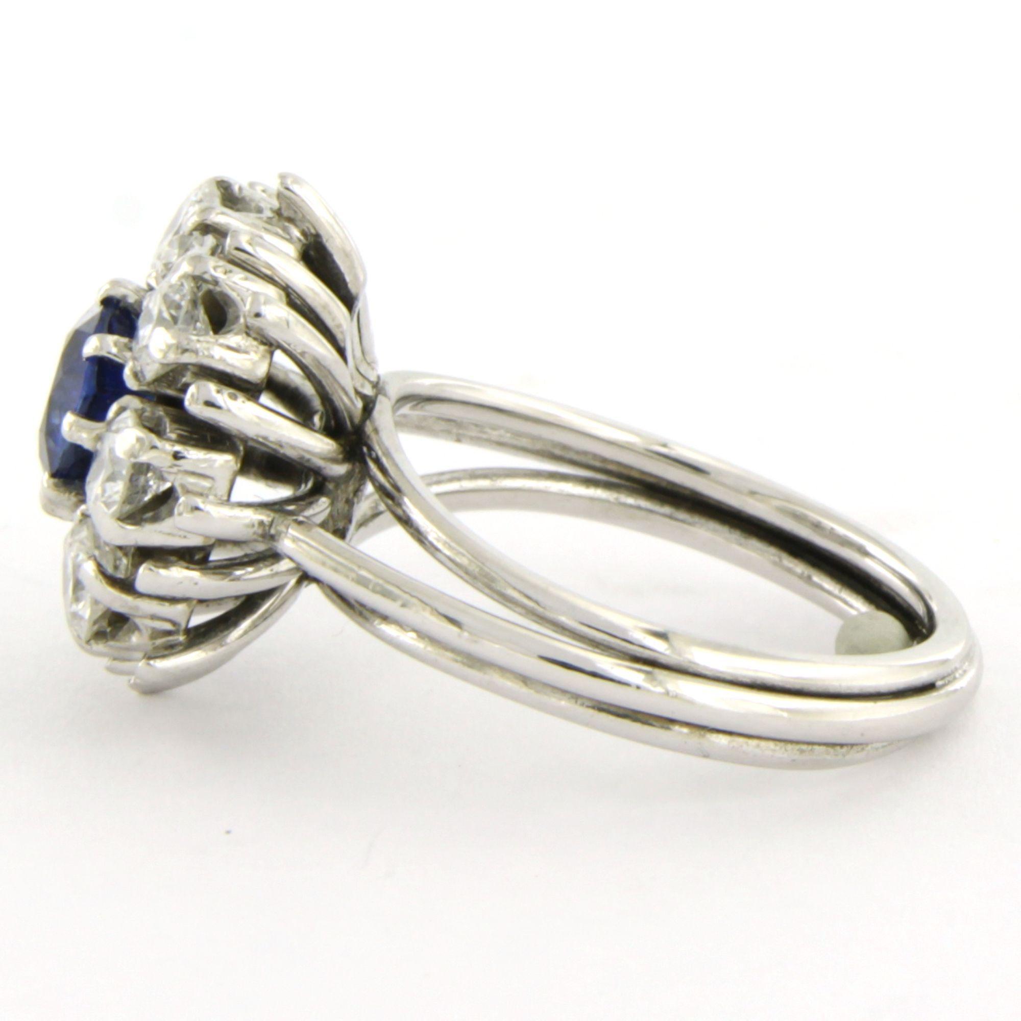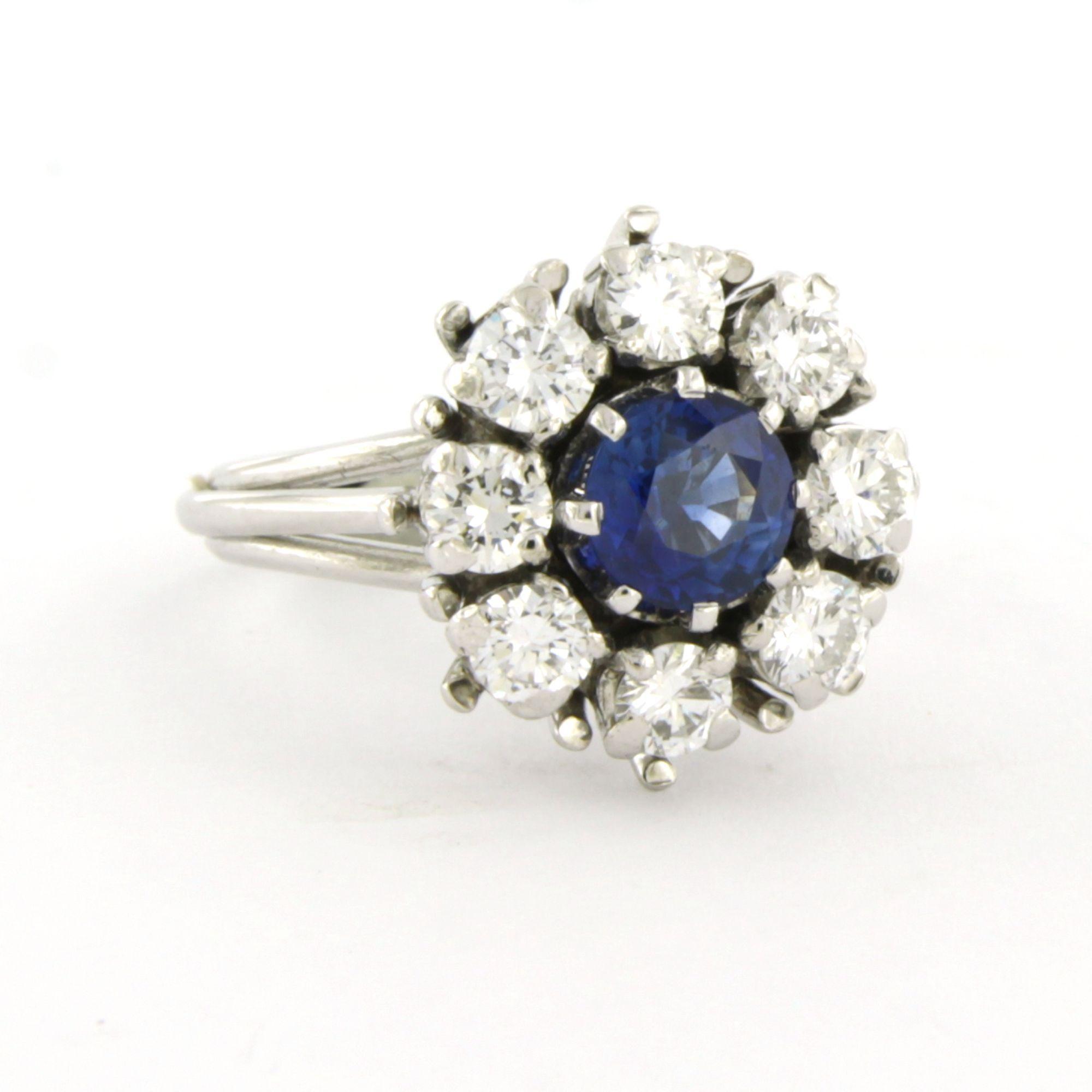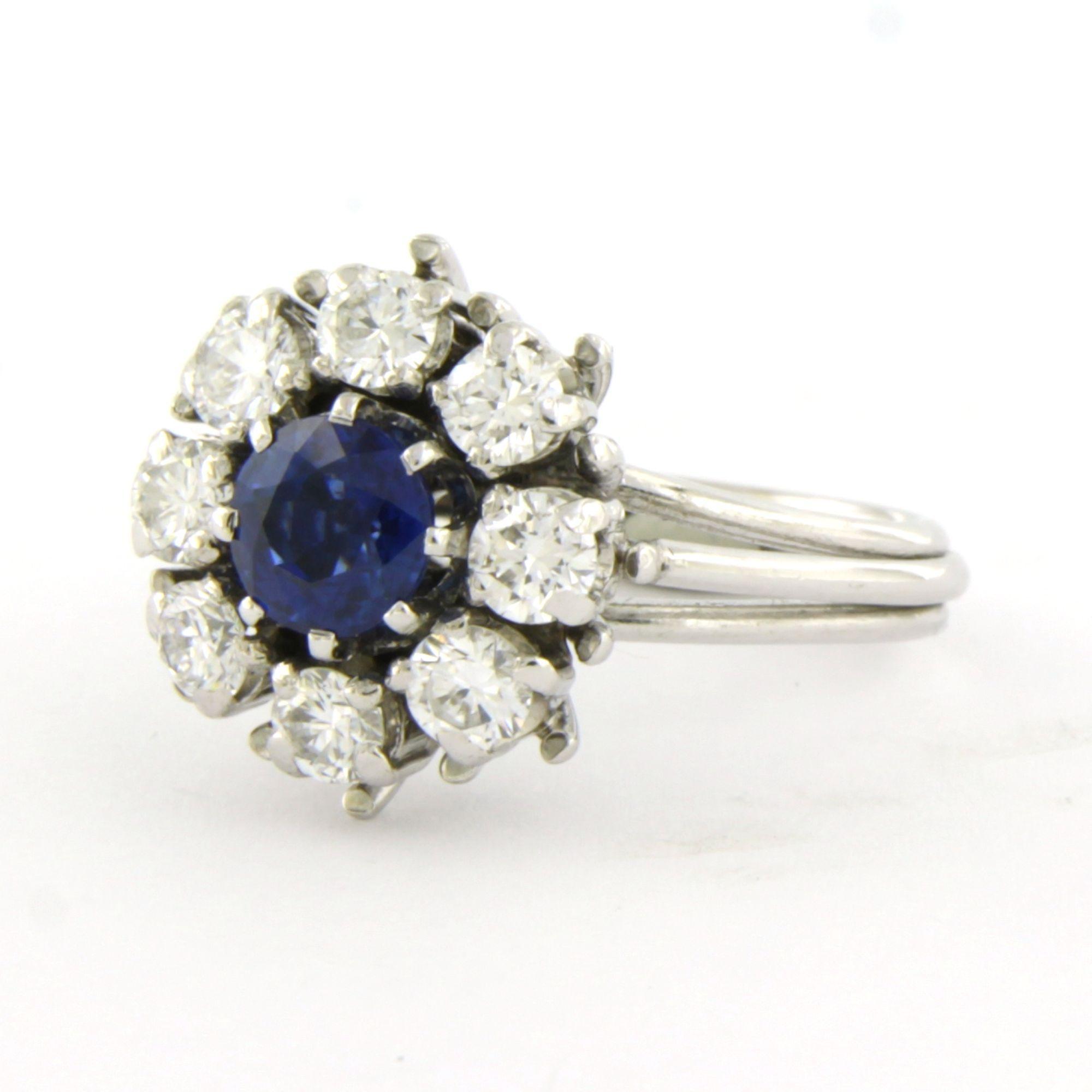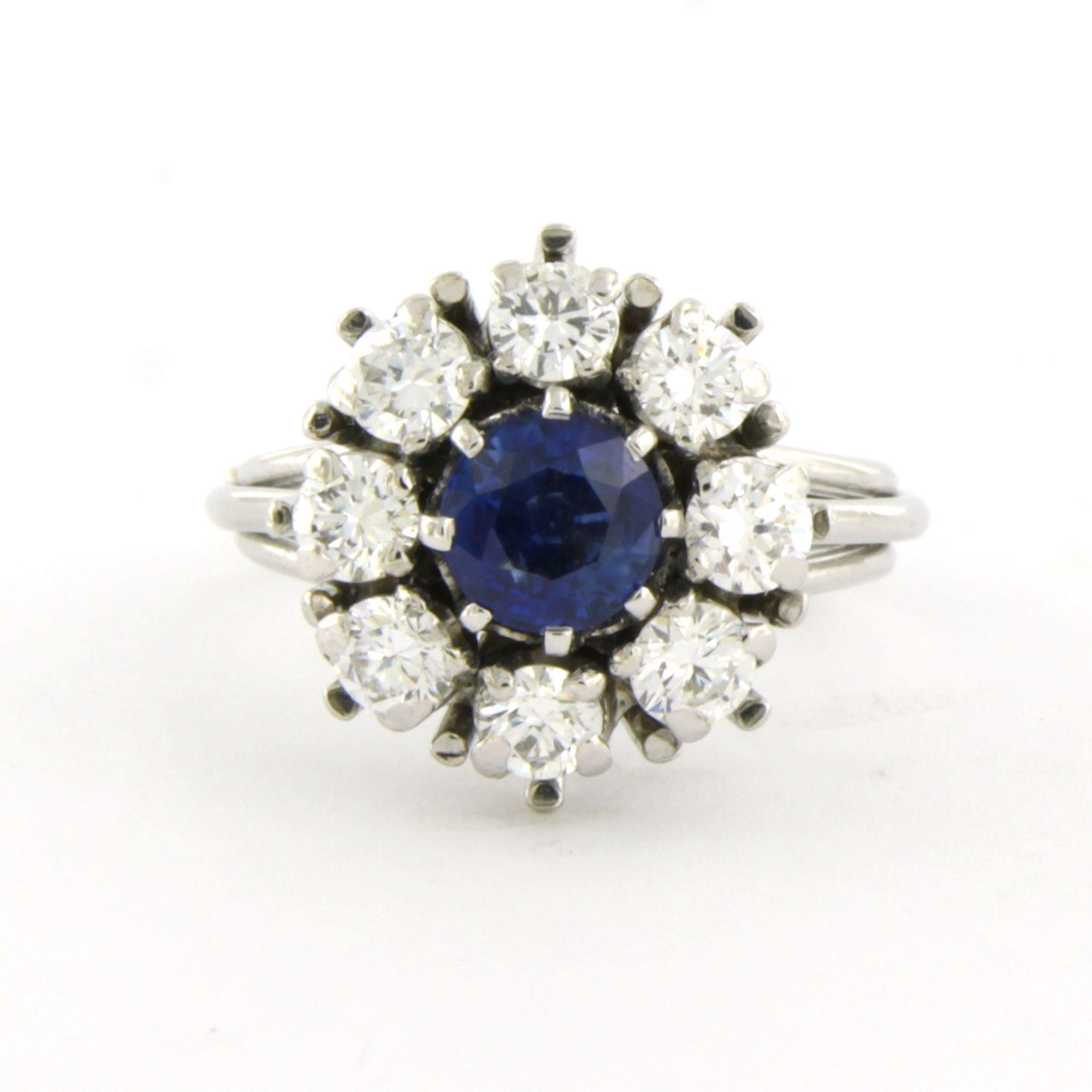14 Kt. witgouden entourage ring bezet met centraal een saffier tot. 1,07ct en aan entourage briljant geslepen diamanten tot. 1,05ct - F - VS/SI - ringmaat 16(50)