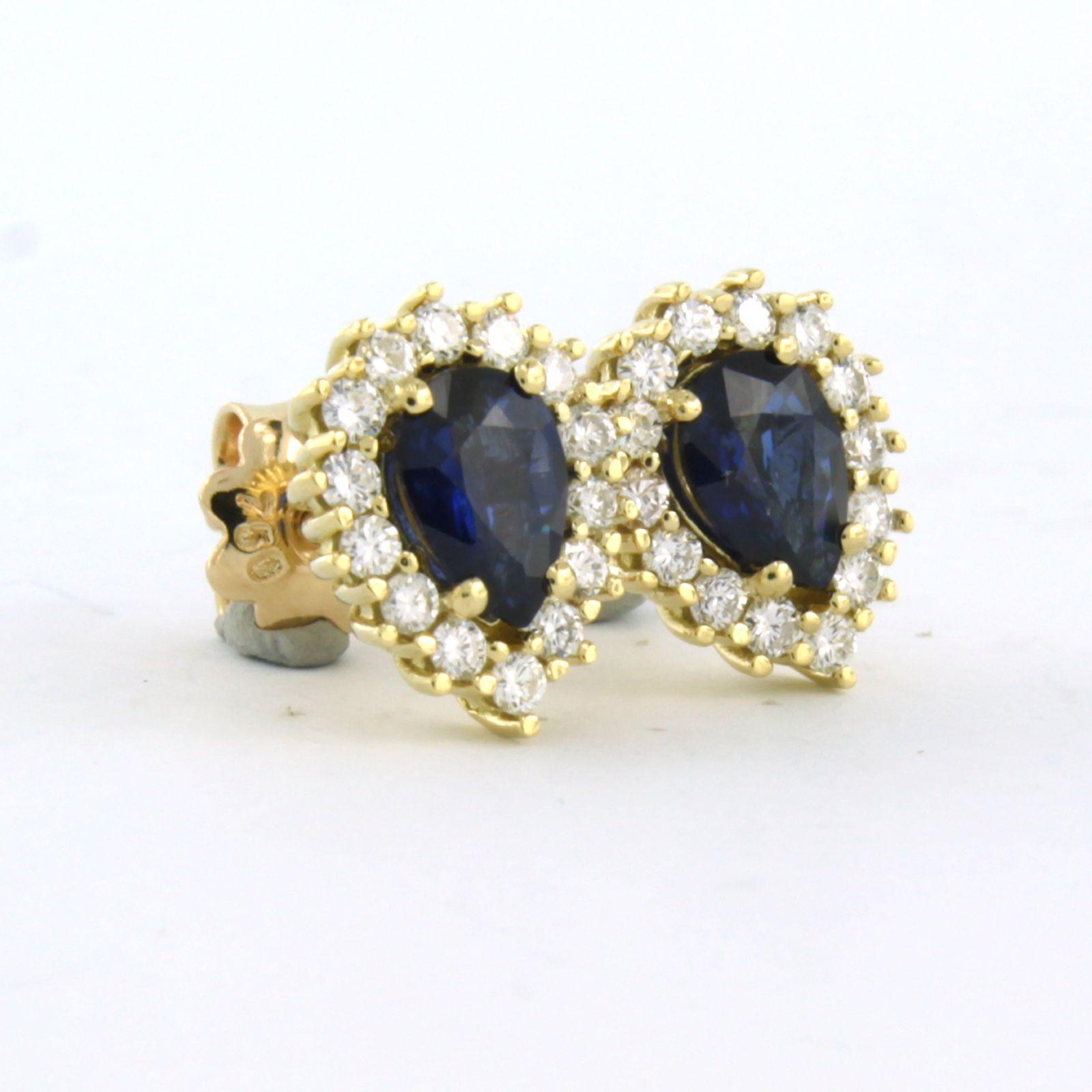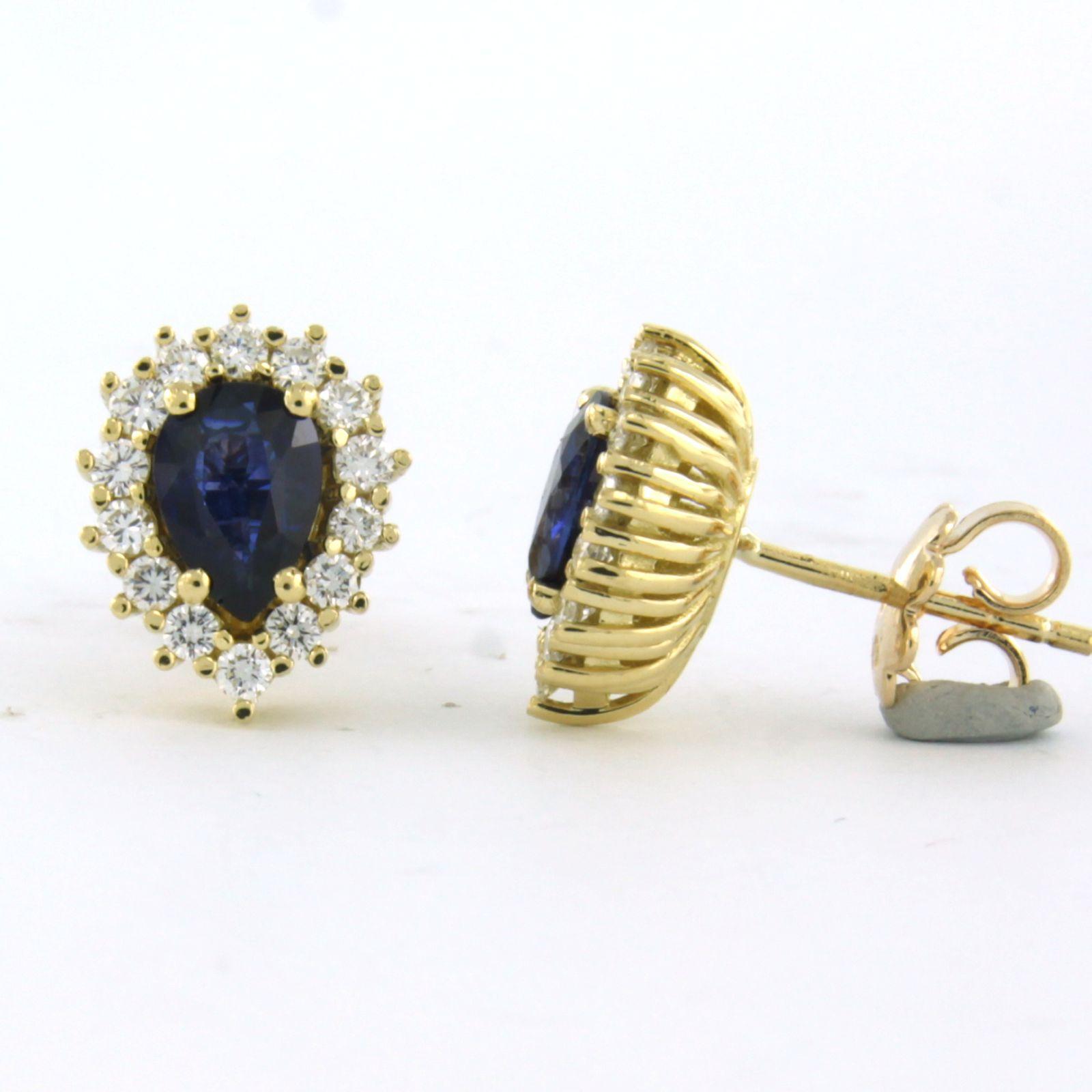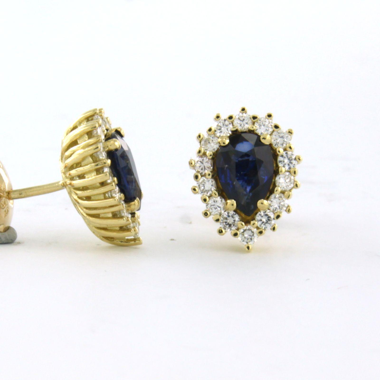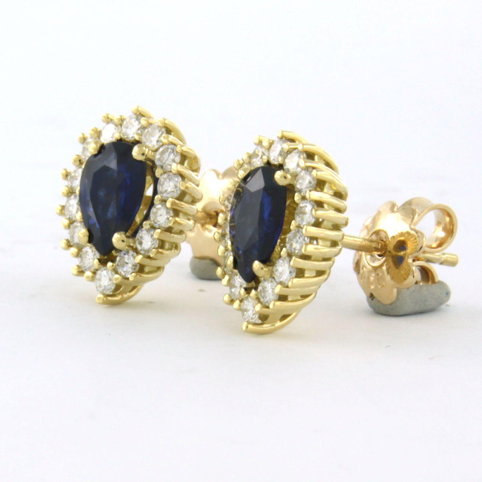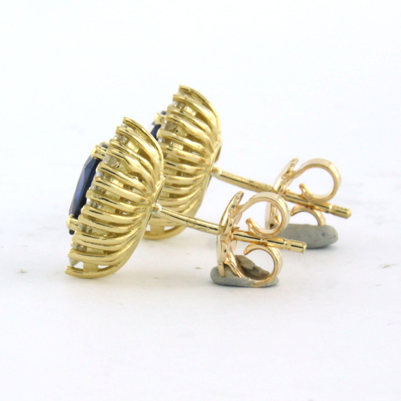 18 Kt. geelgouden entourage oorknoppen bezet met saffier en briljant geslepen diamanten tot. 0,54ct - F/G - VS/SI
