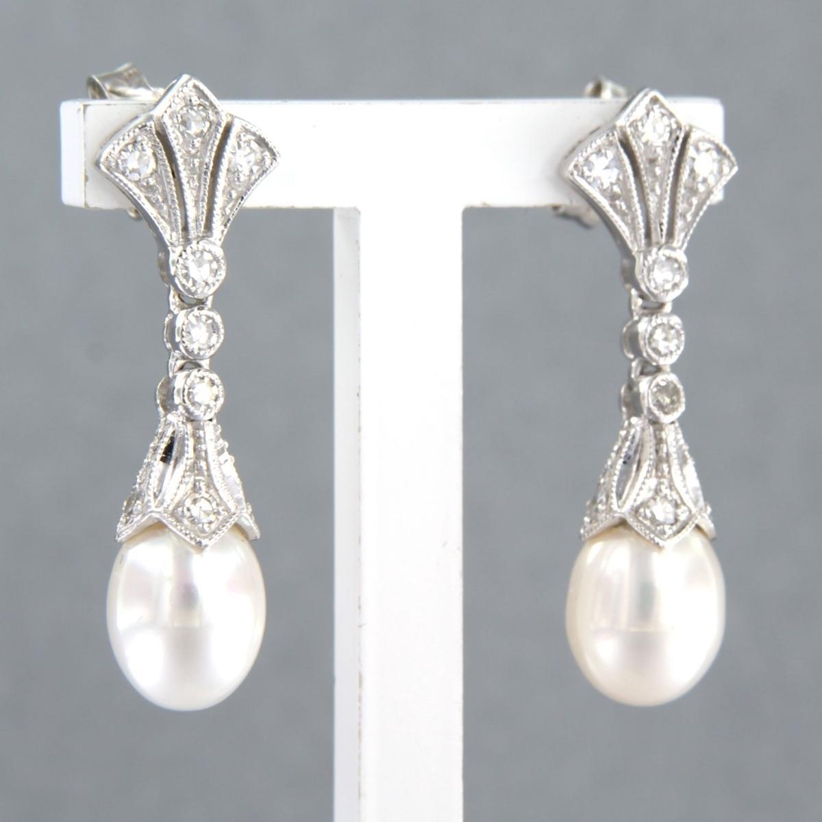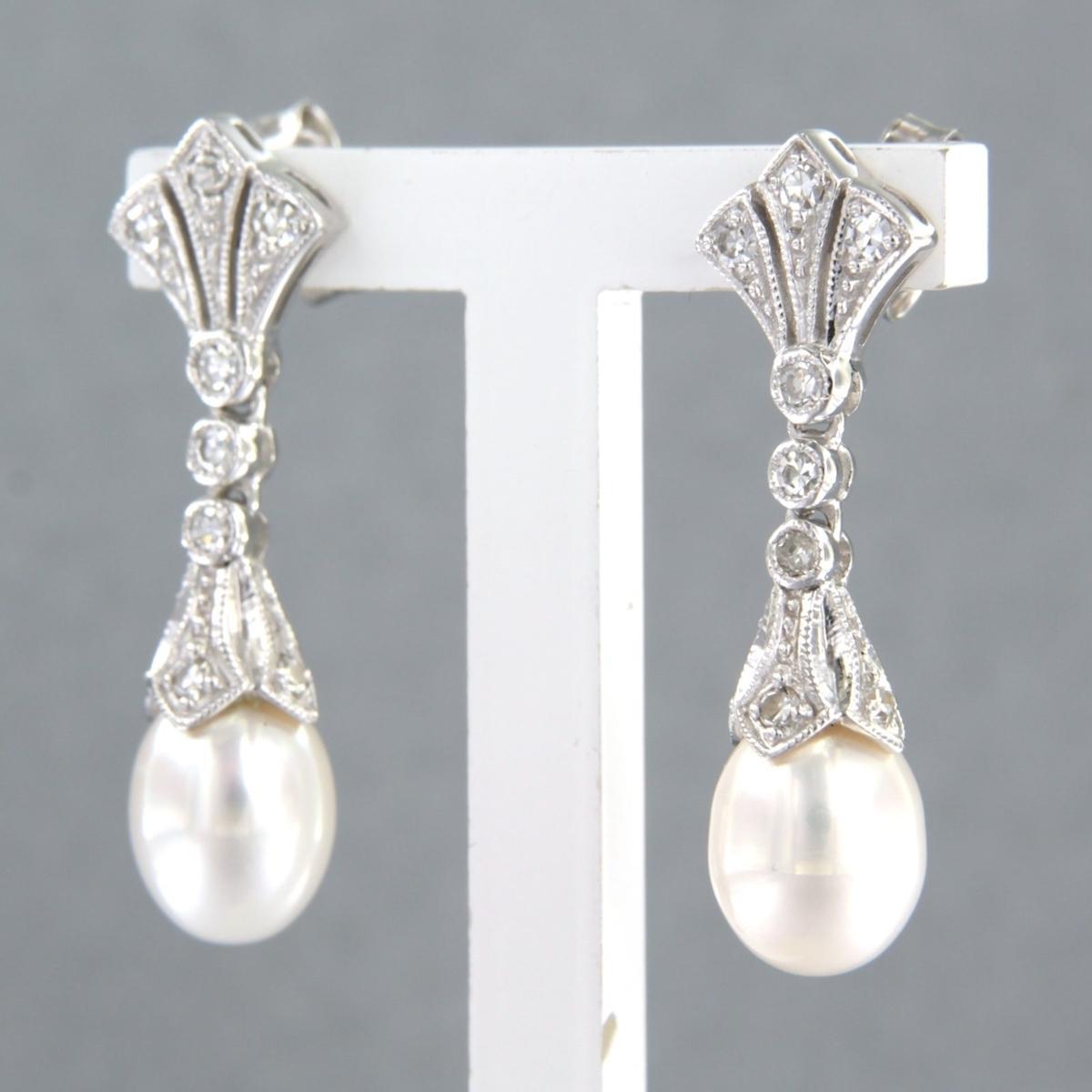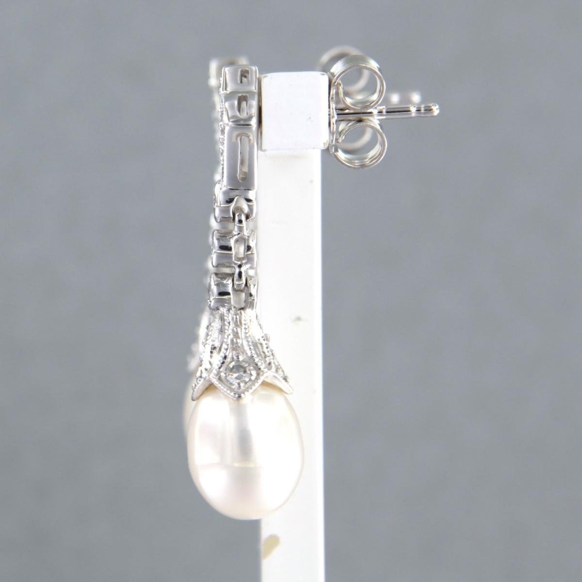 14 Kt. witgouden oorhangers bezet met parel en single cut geslepen diamanten tot. 0,45ct - F/G - VS/SI
