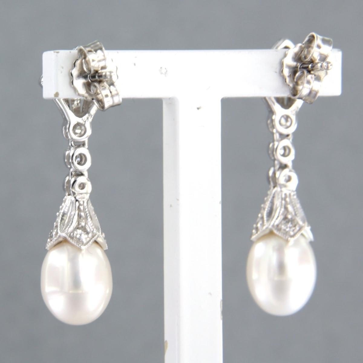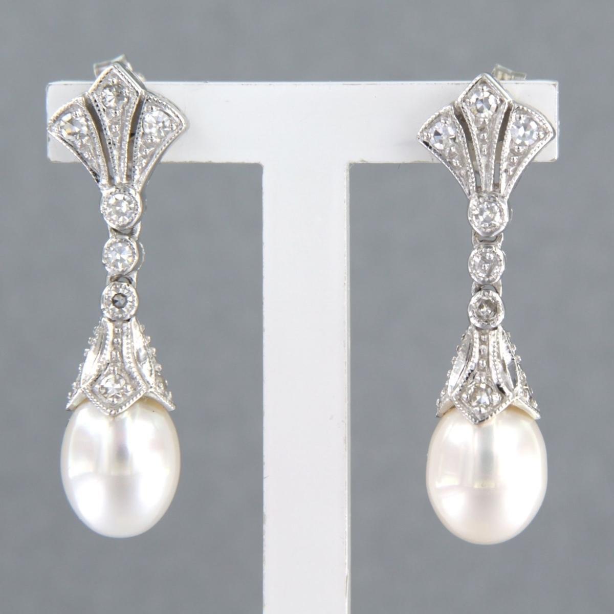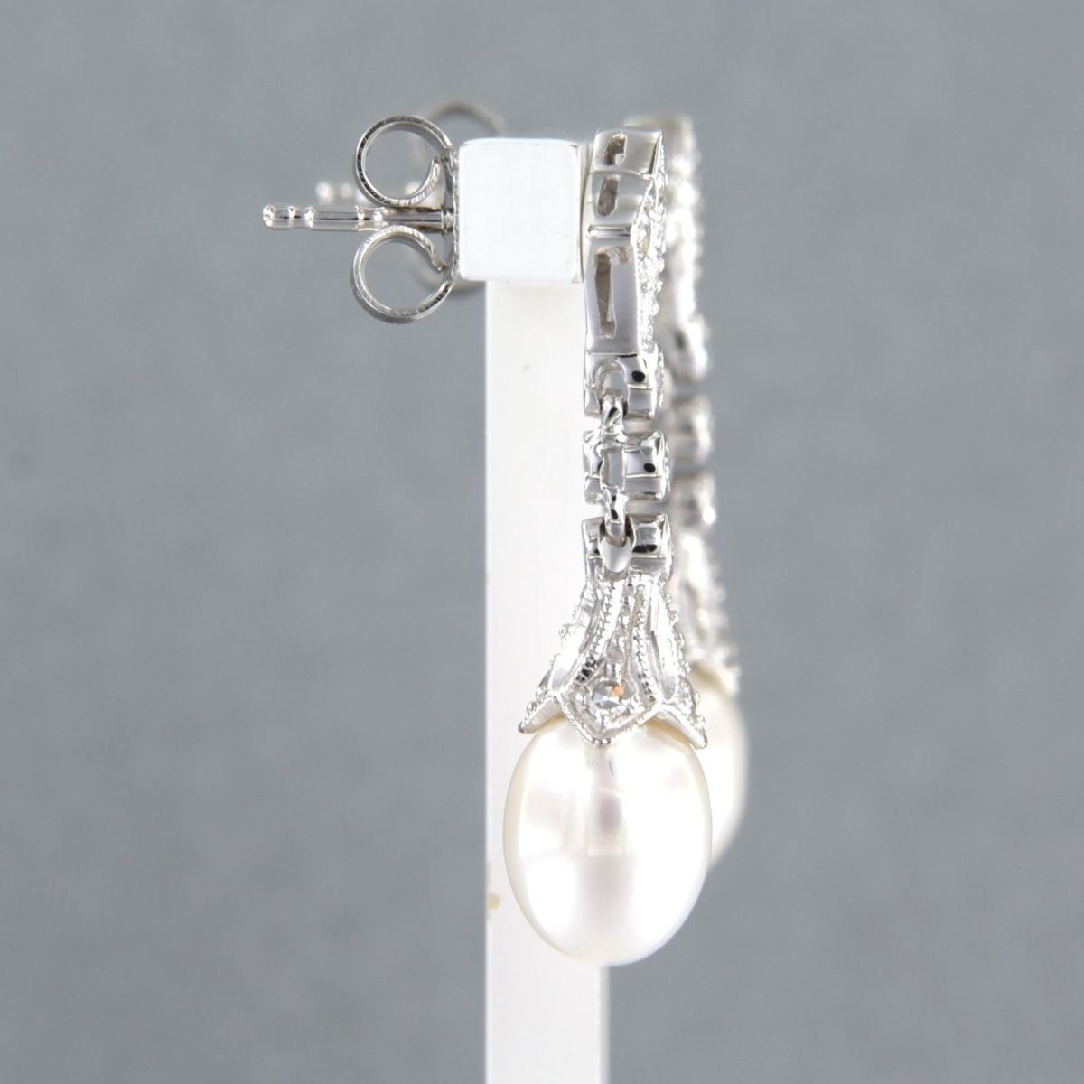 14 Kt. witgouden oorhangers bezet met parel en single cut geslepen diamanten tot. 0,45ct - F/G - VS/SI
