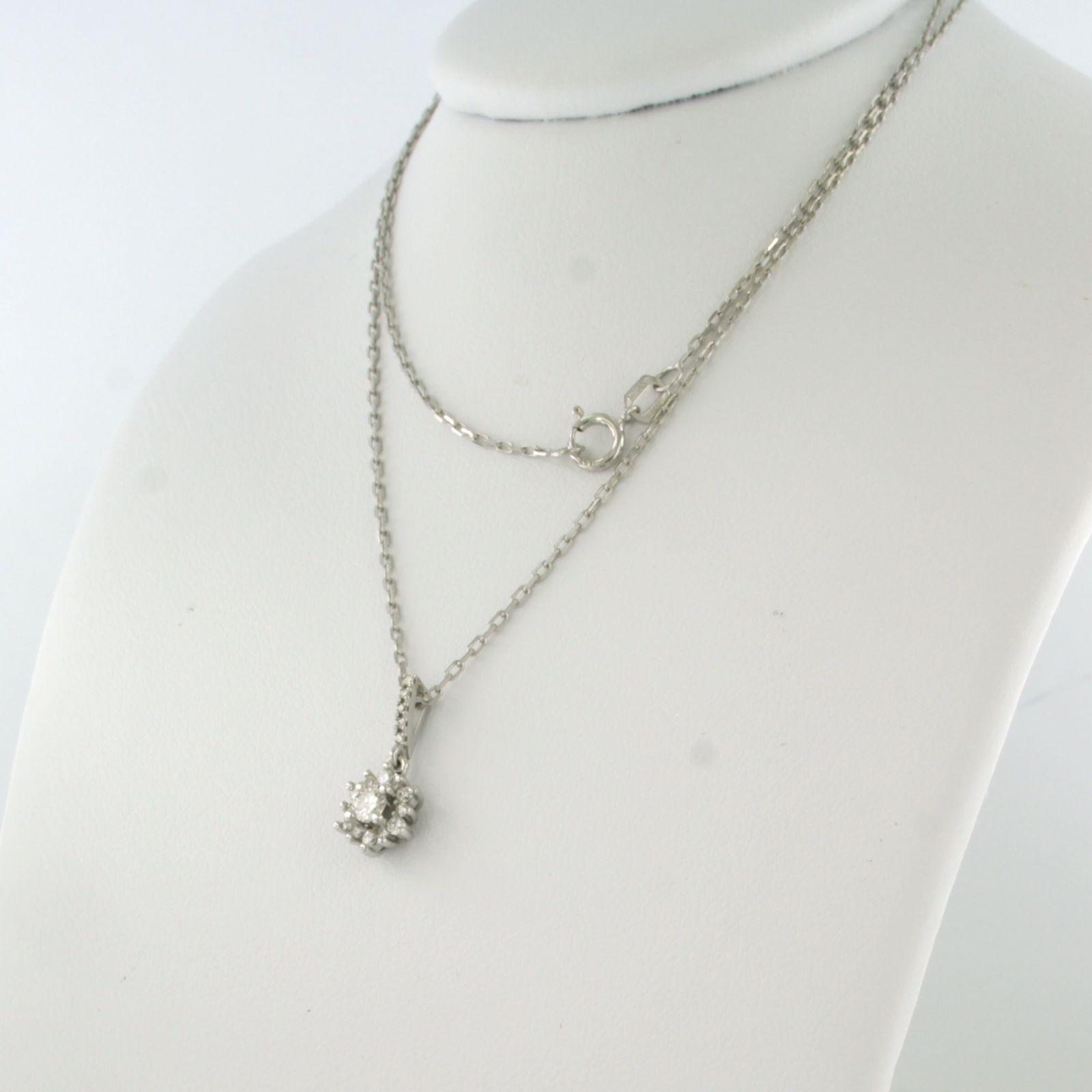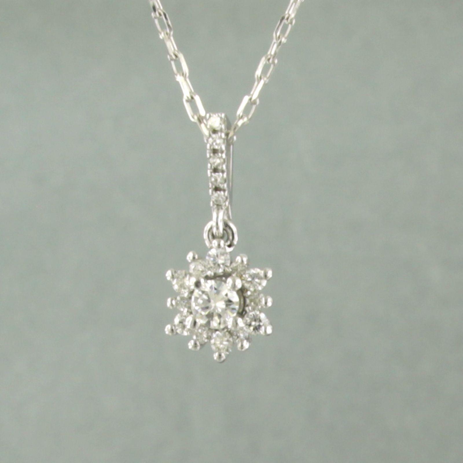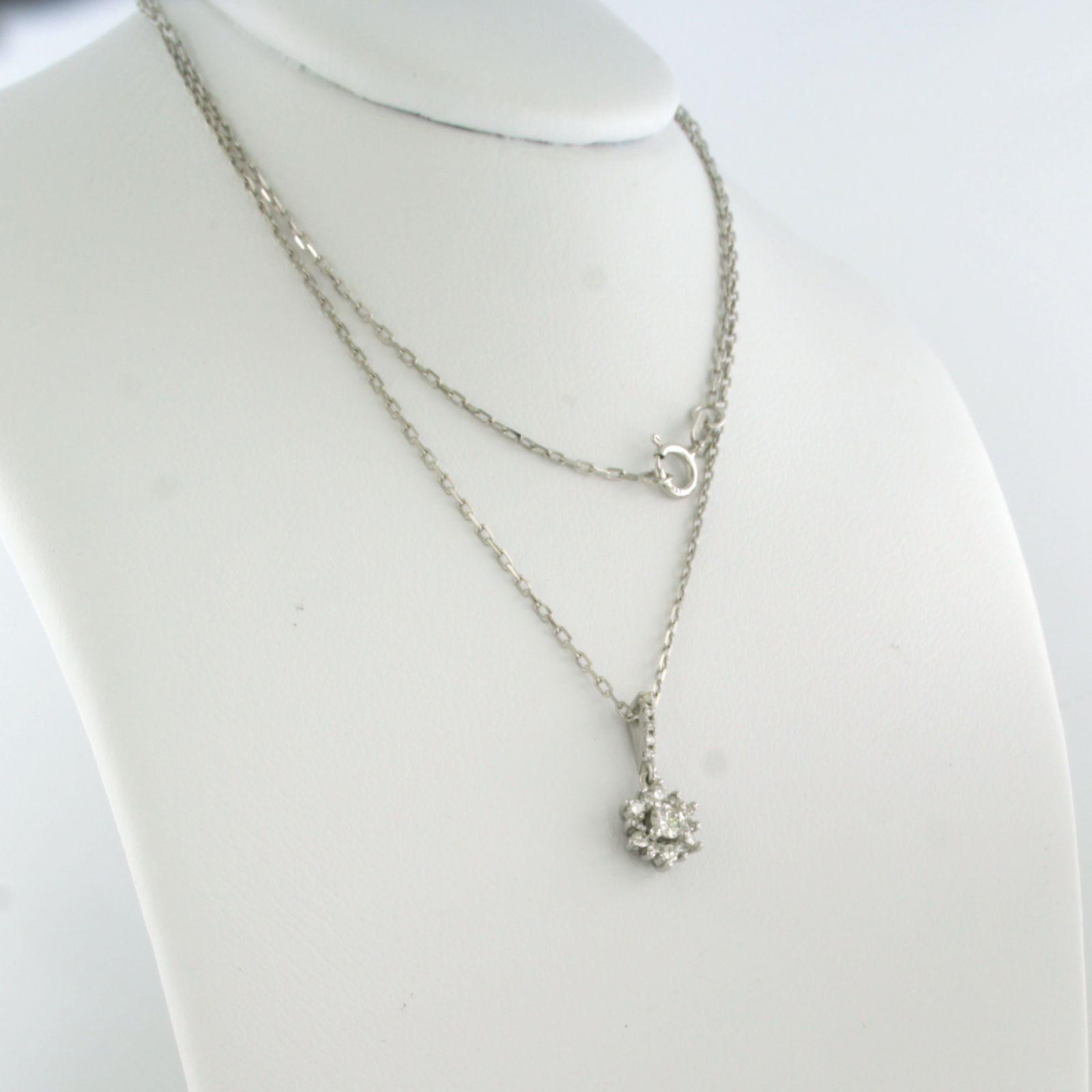 14 Kt. witgouden collier met hanger bezet met briljant geslepen diamanten tot. 0.26 ct F/G VS/SI, 44 cm lang