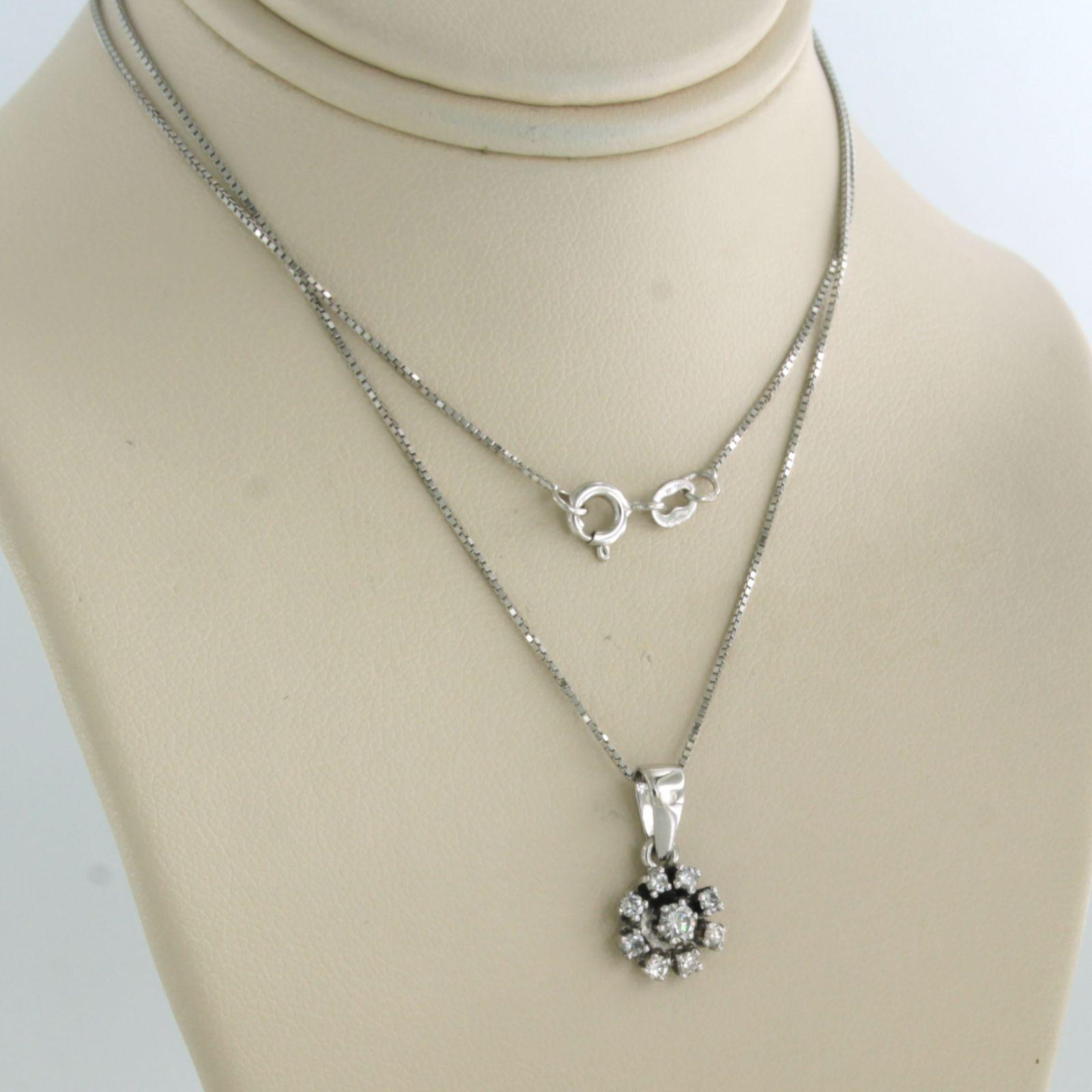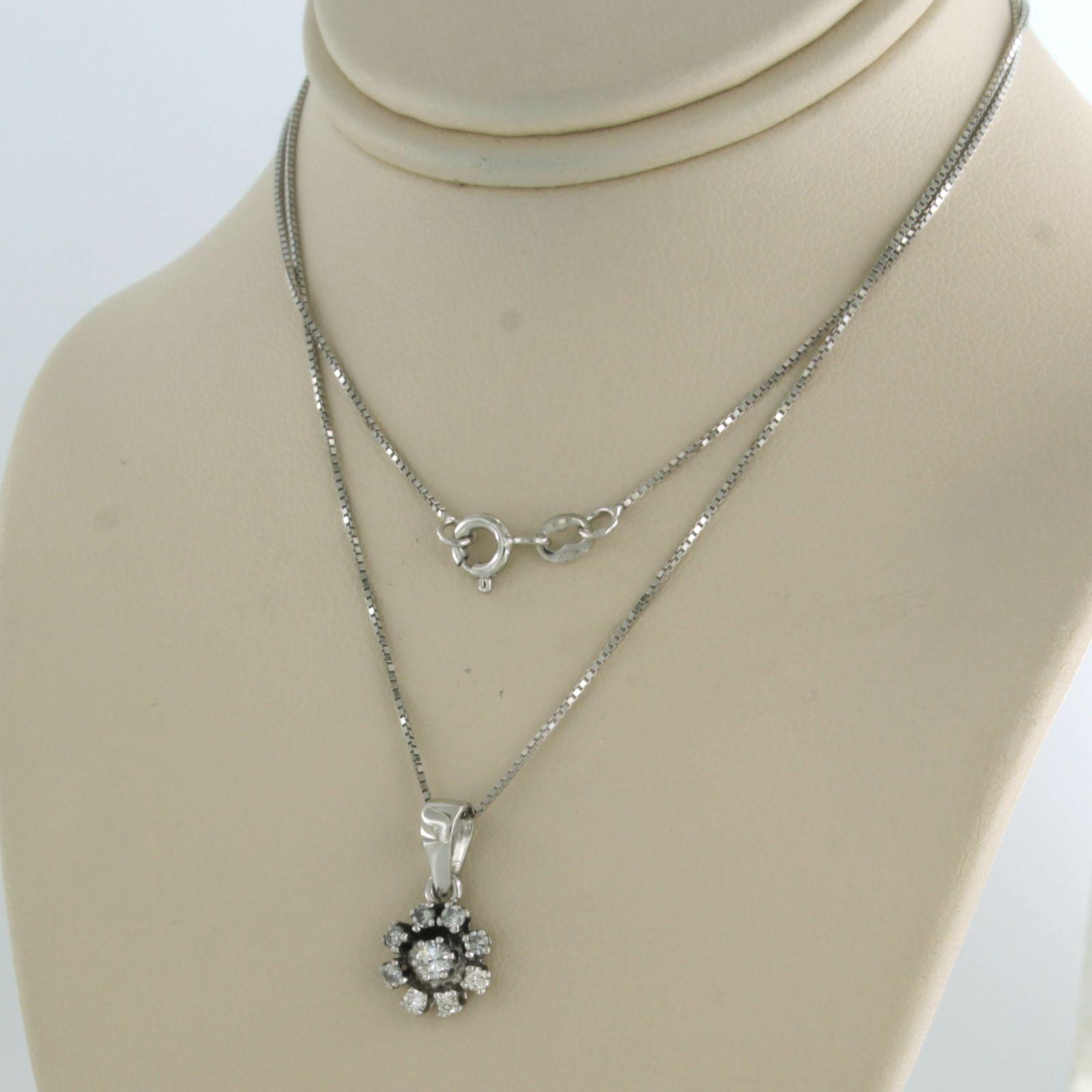 18 Kt. witgouden collier met een kruis hanger bezet met briljant geslepen diamant tot. 1,10ct - F/G - VS/SI - 45 cm lang