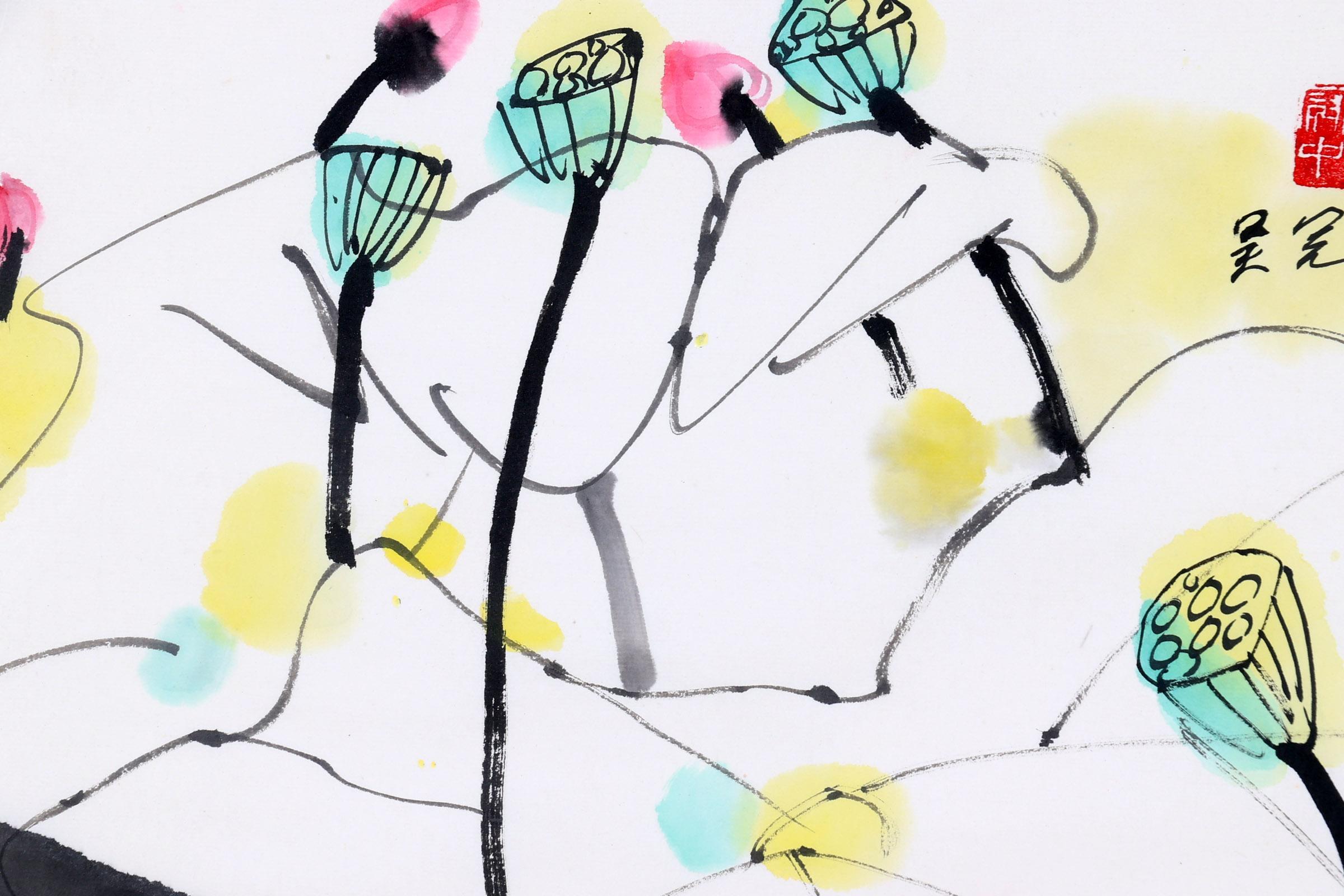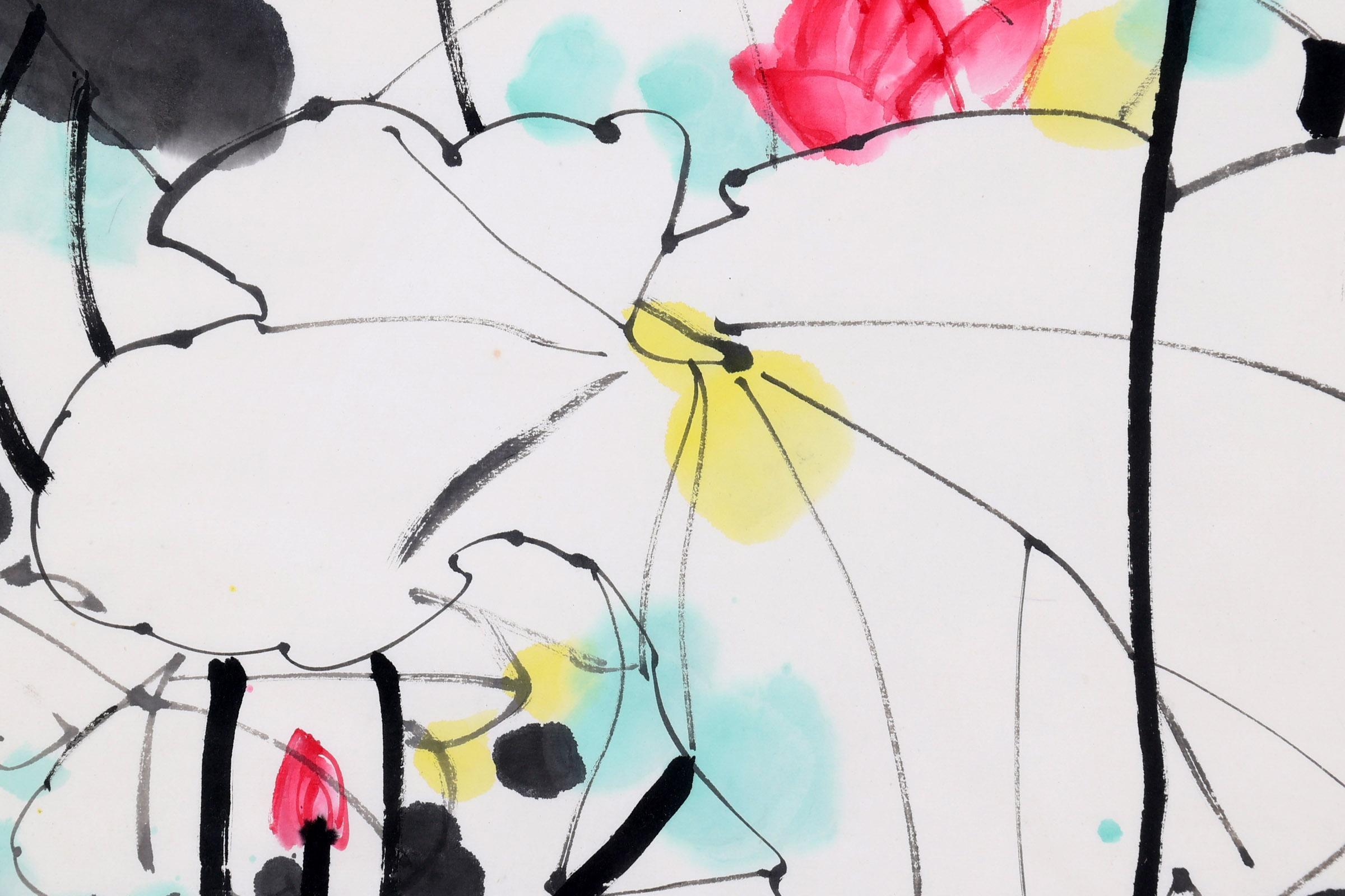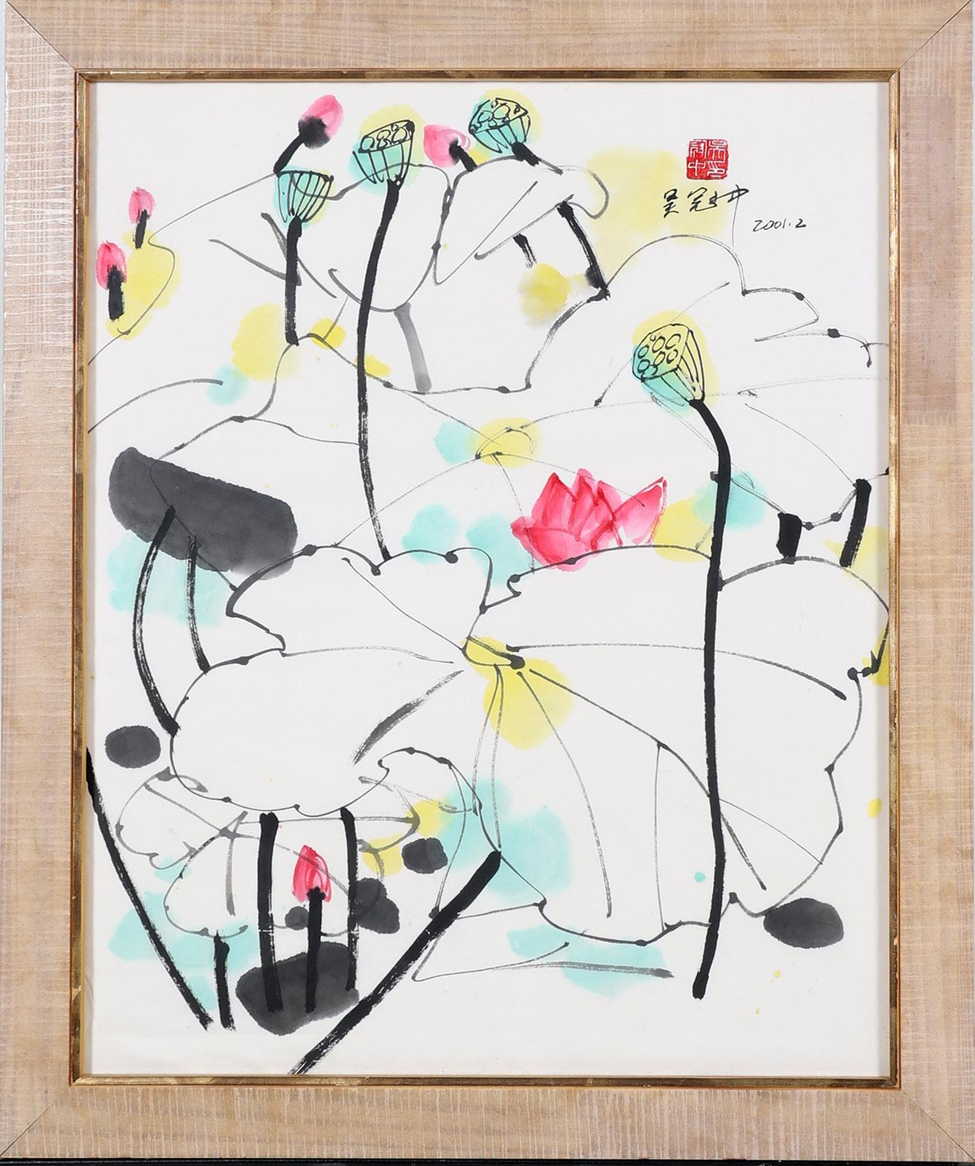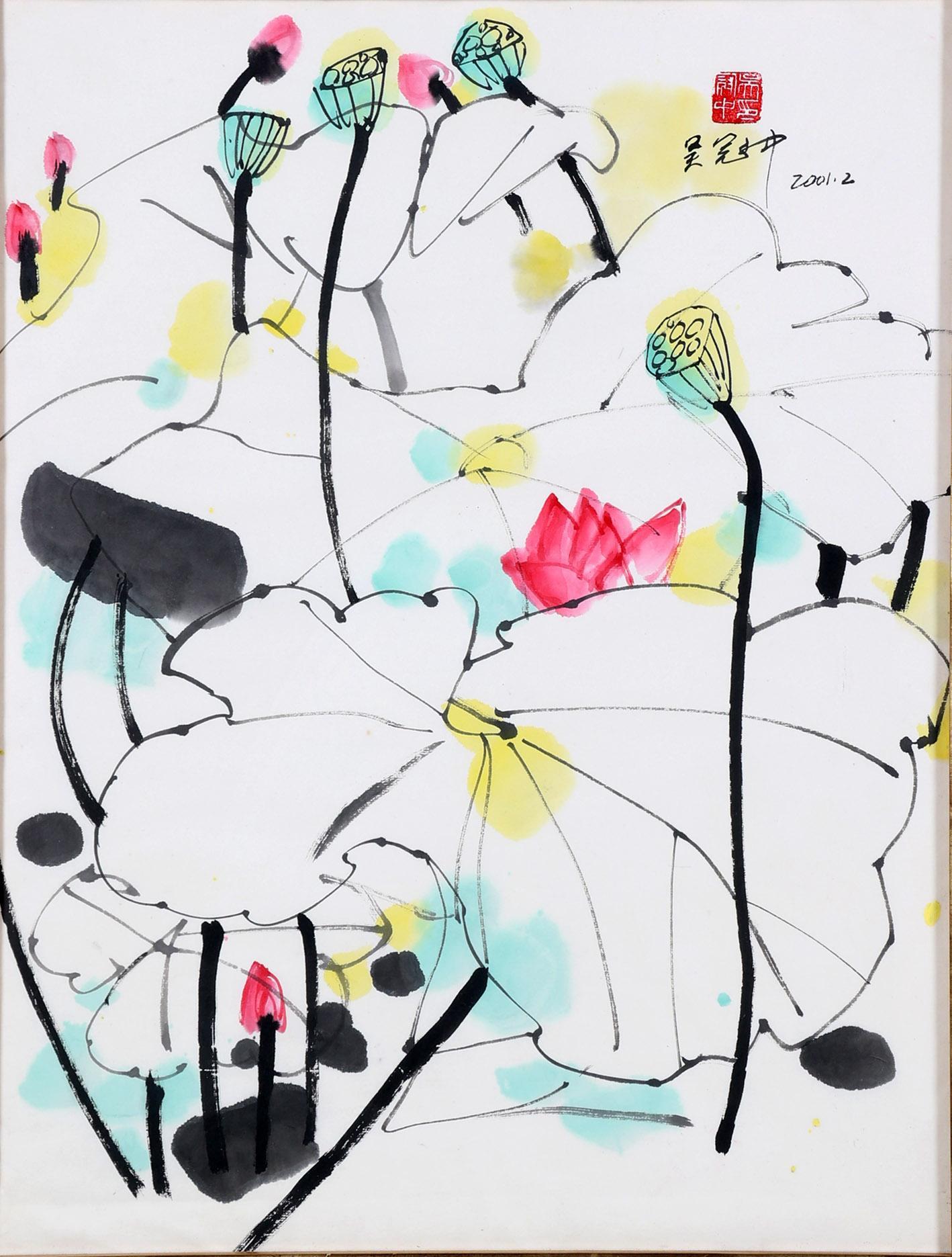 Toegeschreven aan Wu Guanzhong (1919-2010), Lotusbloemen, gemengde techniek / inkt op rijstpapier, 2001, gesigneerd met stempel, 61 x 48,5 cm. Provenance: Moon Gallery, Hangzhou