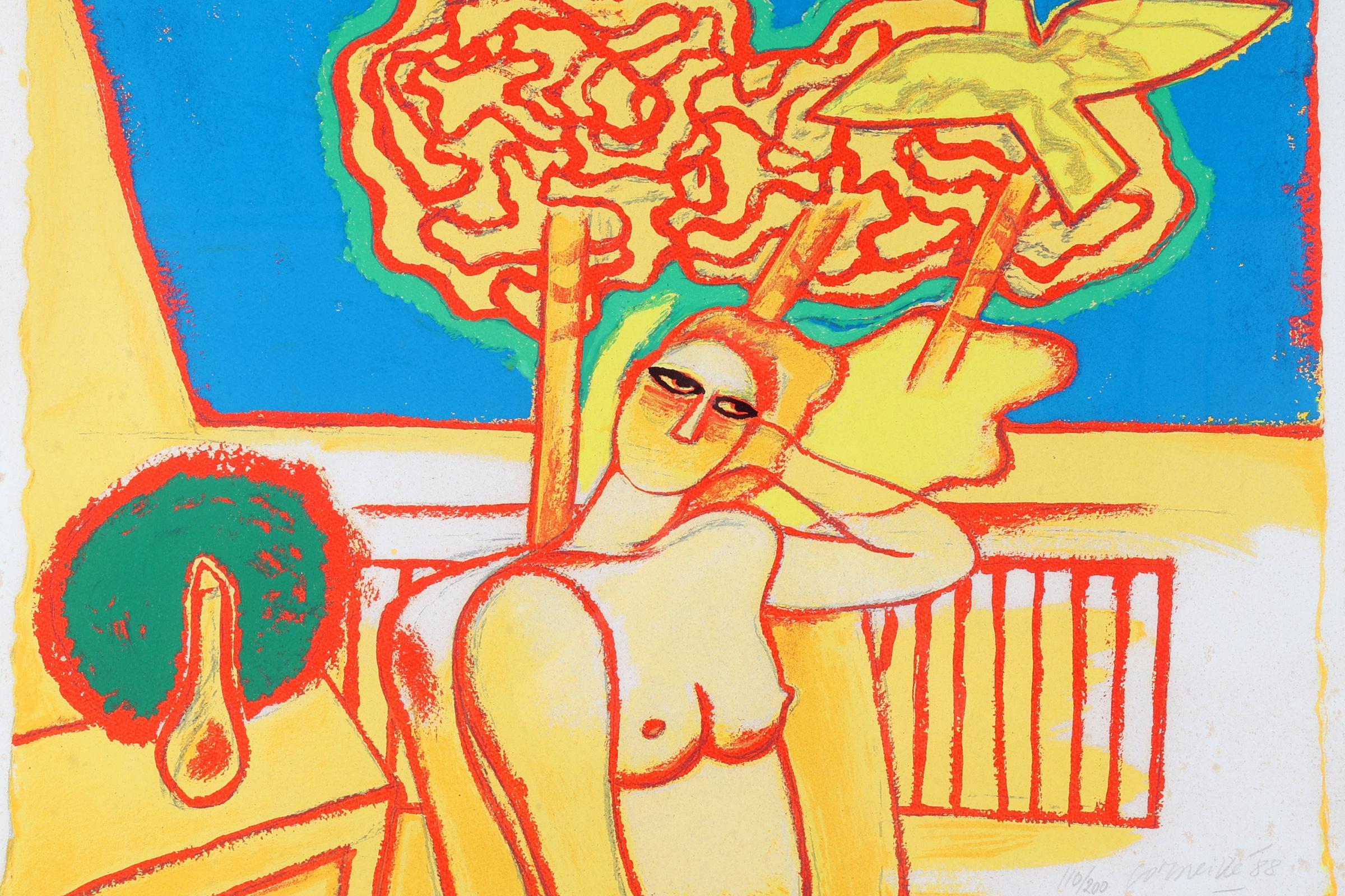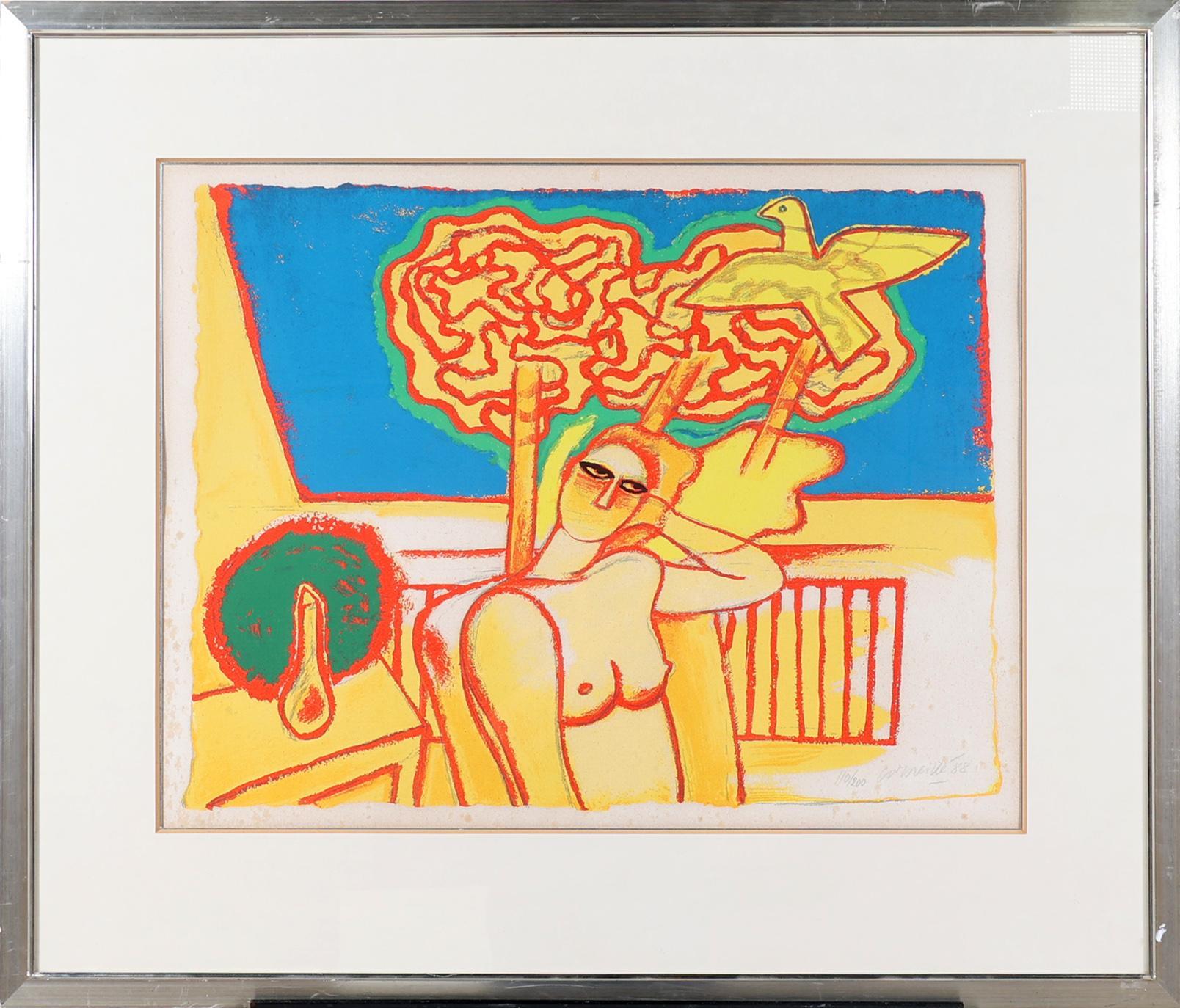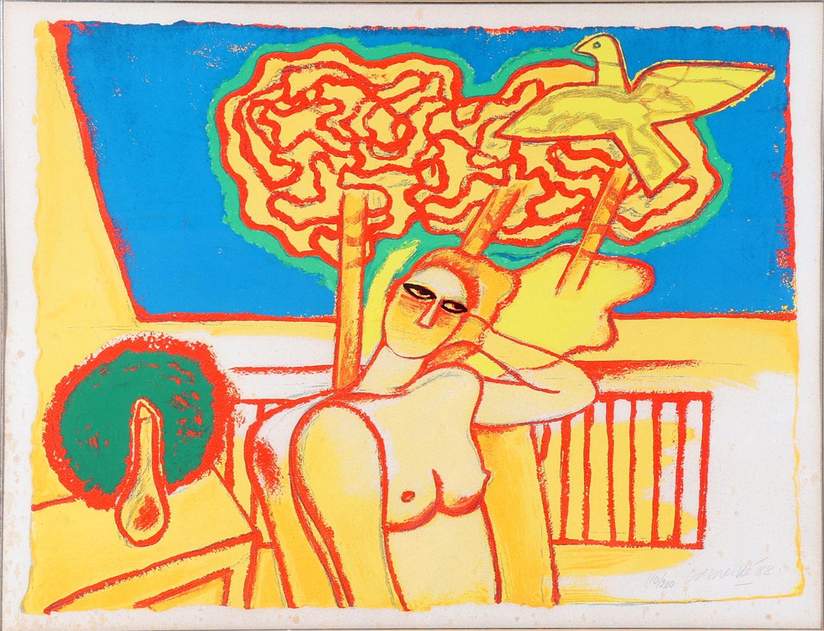 'Corneille', alias van Cornelis Guillaume van Beverloo, (1922- 2010), Femme Jaune, handgesigneerde zeefdruk, genummerd 110/200 en gedateerd '88, 55 x 70 cm.