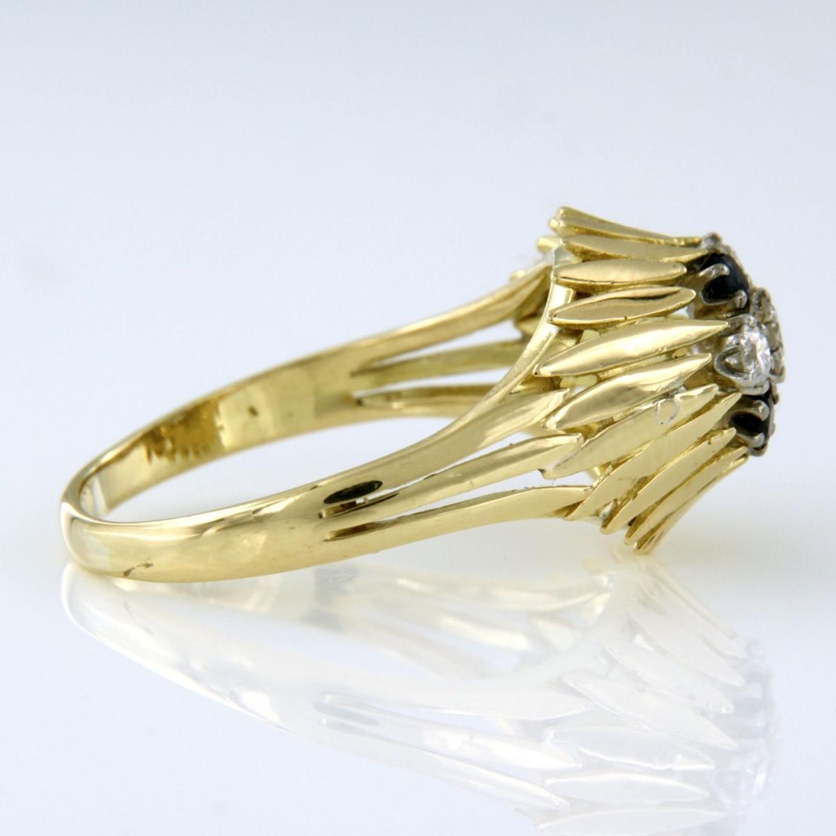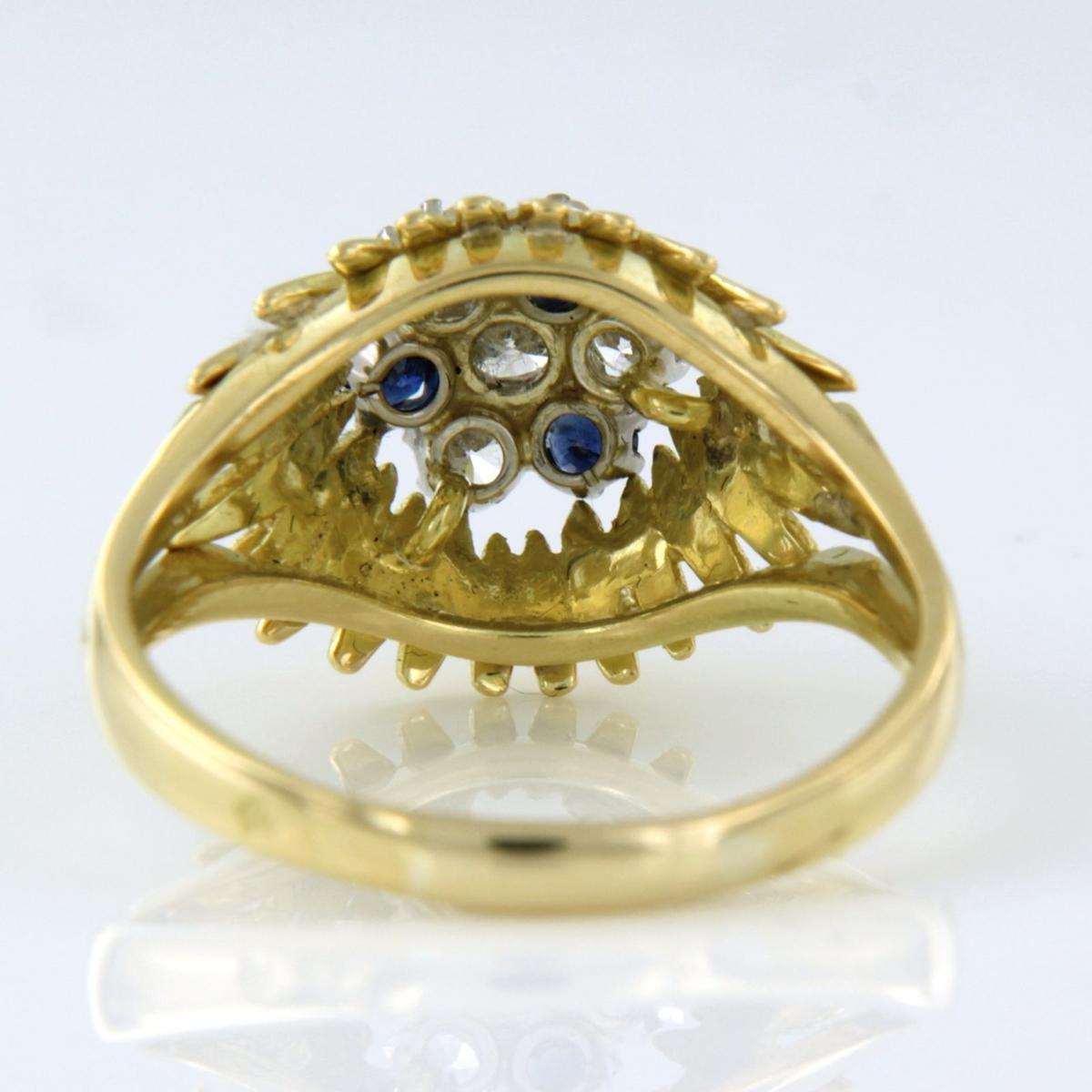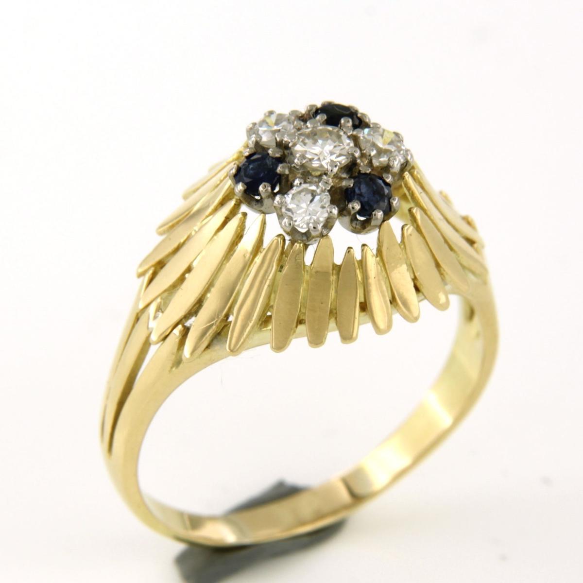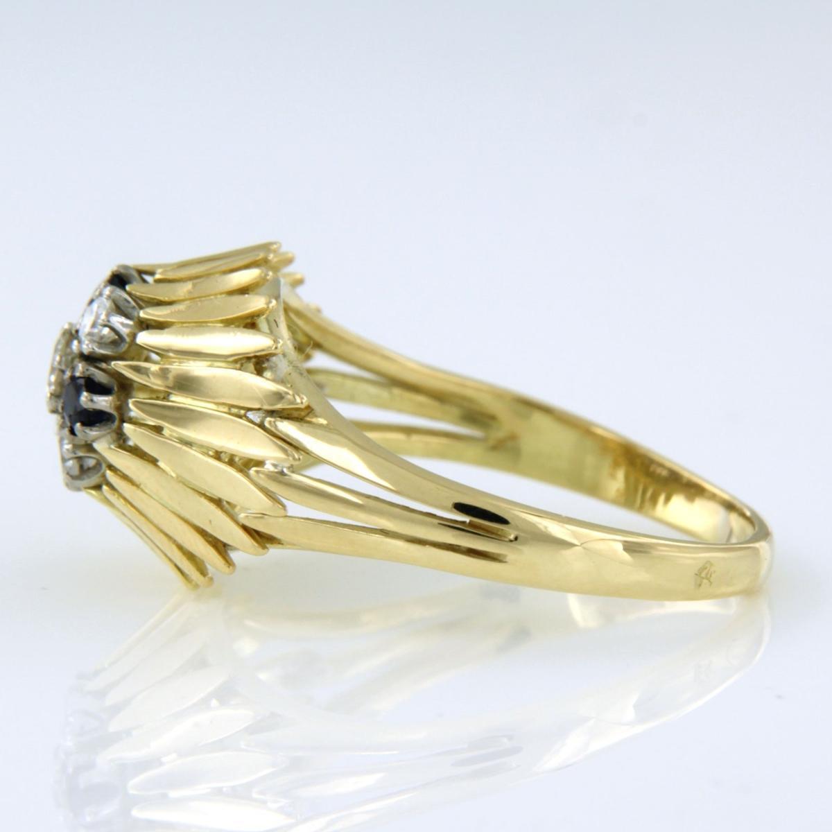 14 Kt. bicolor gouden ring bezet met saffier en oud Europees slijpvorm geslepen diamant tot. 0,26ct - F - SI - ringmaat 19.5 (61)