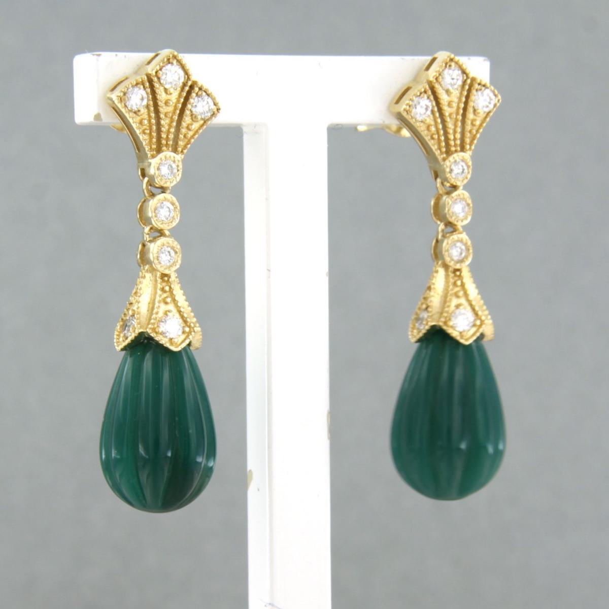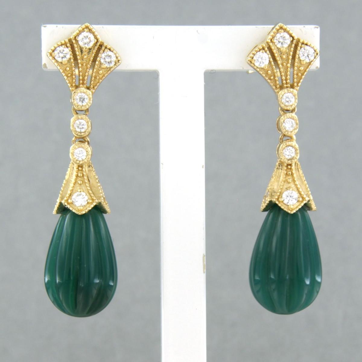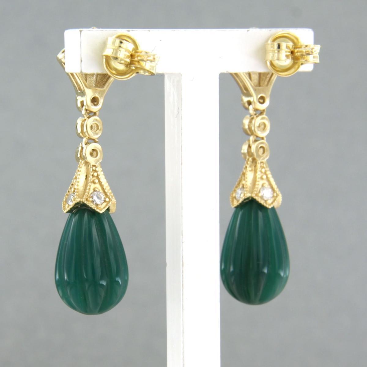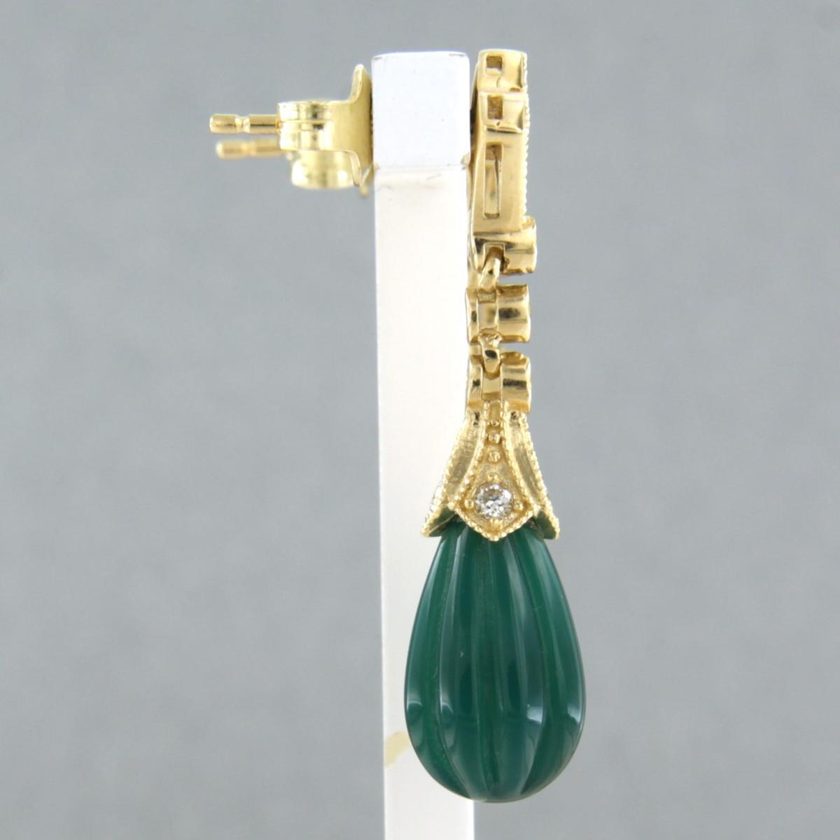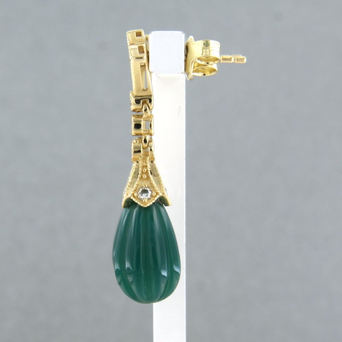 14 Kt. geelgouden oorhangers bezet met groene agaath en briljant geslepen diamant tot. 0,28ct - G/H - VS/SI