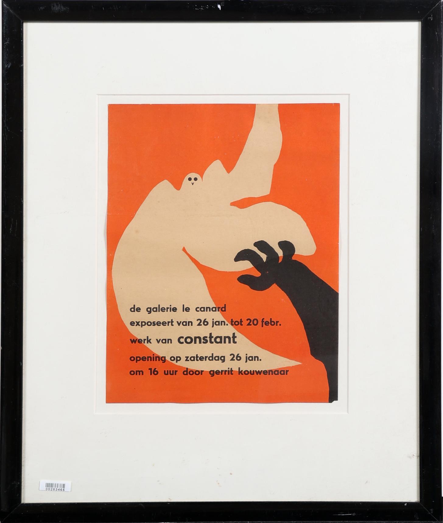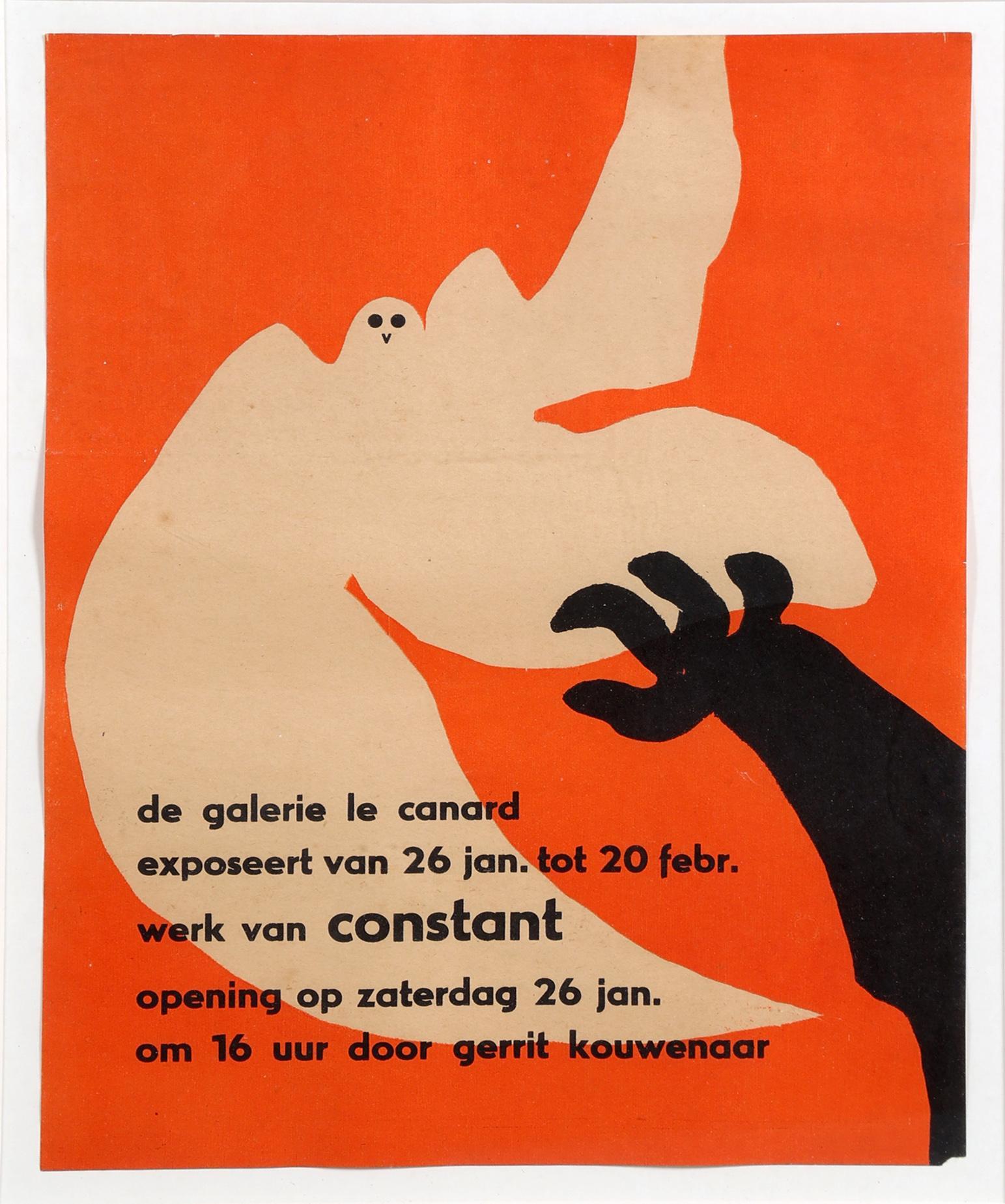Constant Anton Nieuwenhuys, Amsterdam 1920-2005 Utrecht, poster van de Gewonde Duif in Galerie le Canard van 26 januari tot 20 februari, 34,5 x 26,5 cm.