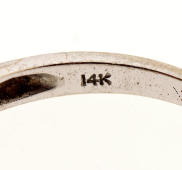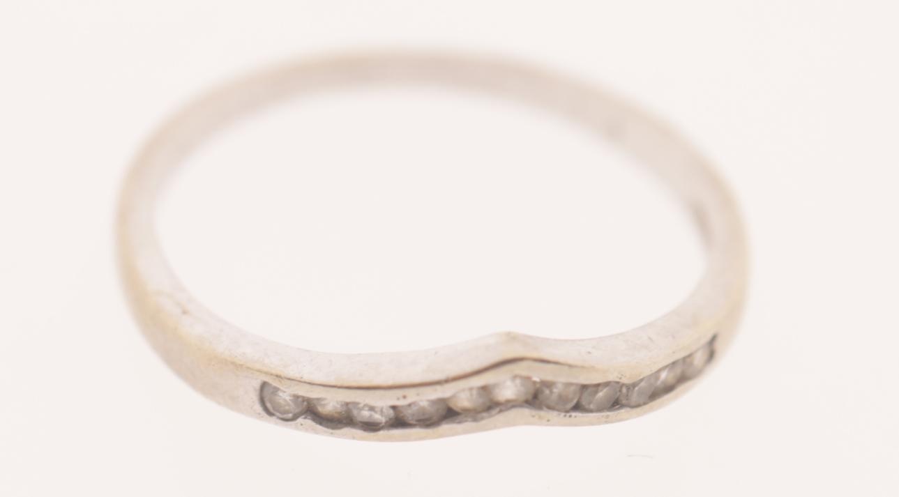 14 Kt. witgouden damesring bezet met briljant geslepen diamant, diam.18 mm.