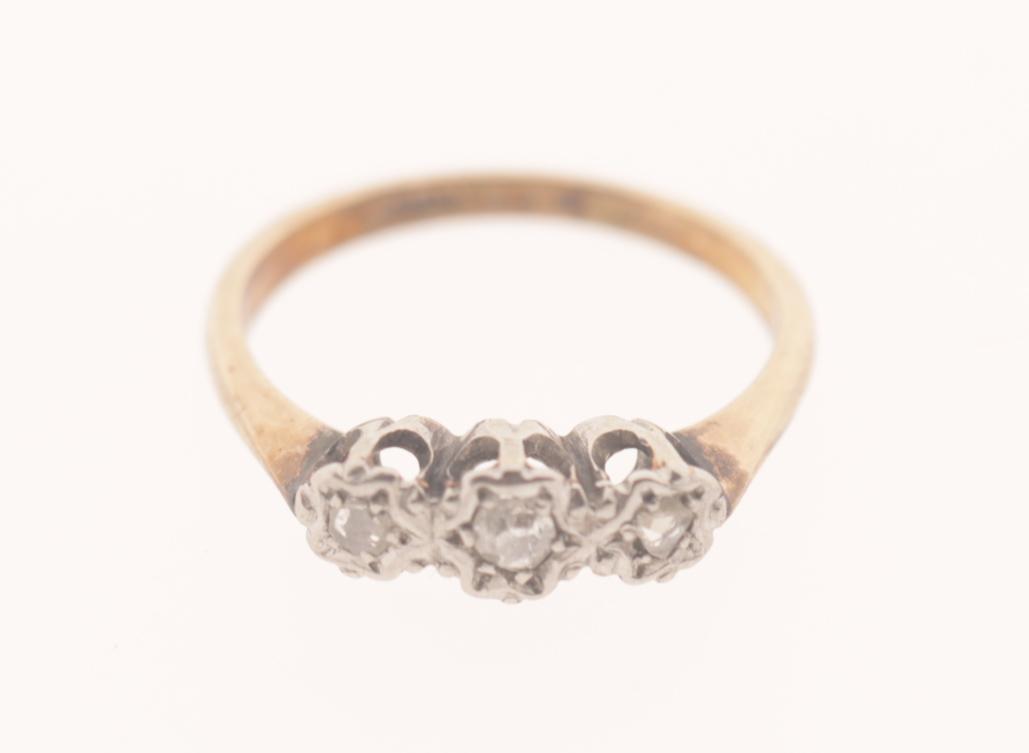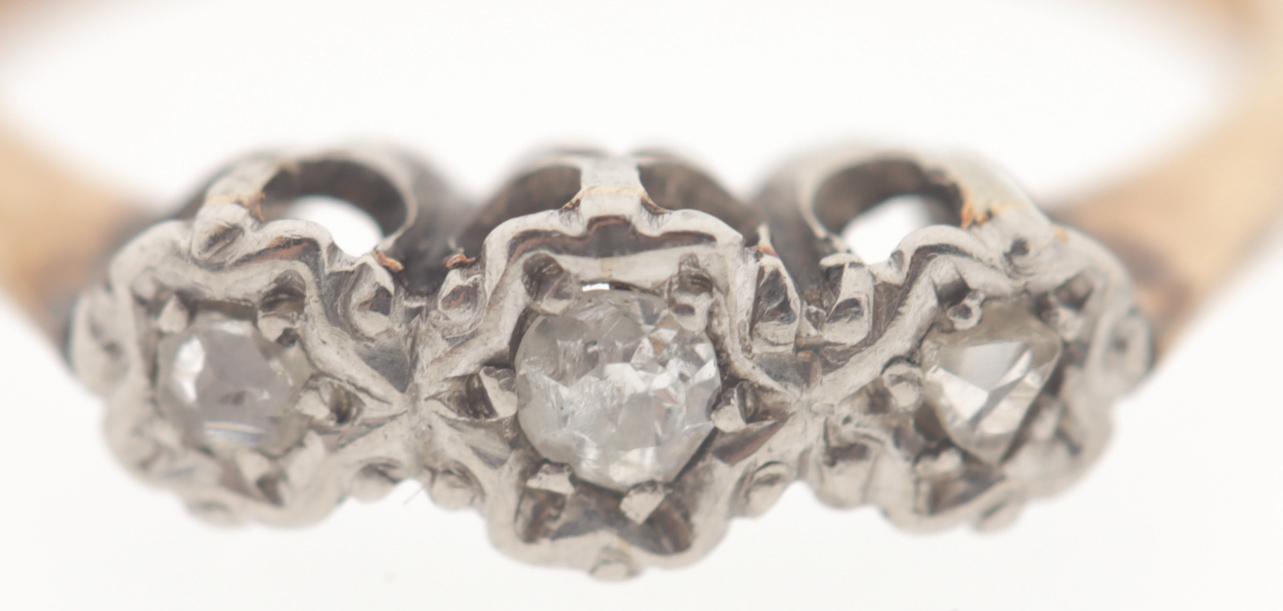 14 Kt. gouden damesring bezet met diamant, diam.16 mm.