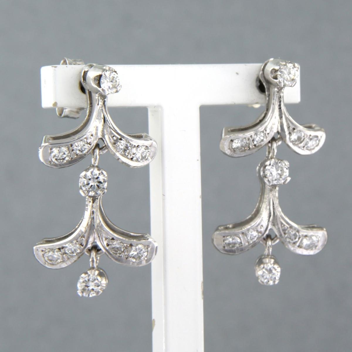 18 Kt. witgouden oorhangers bezet met briljant geslepen diamant tot. 1,00ct - F/G - VS/SI