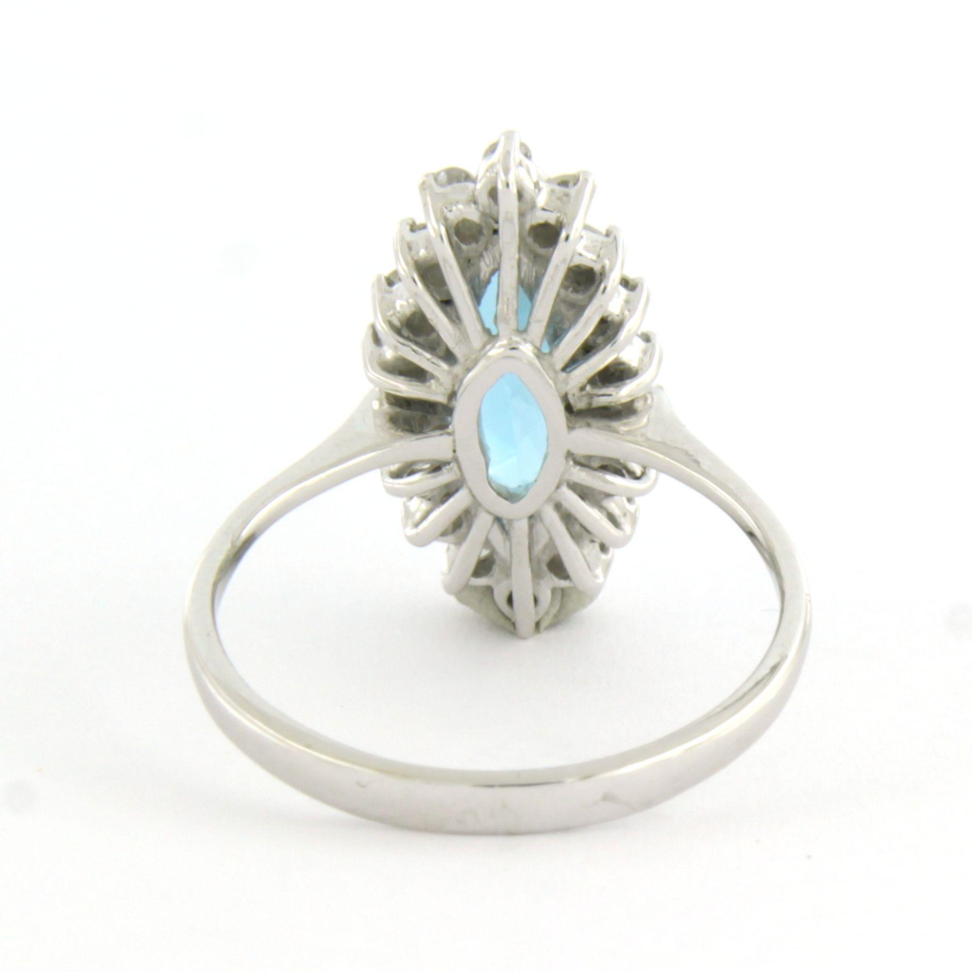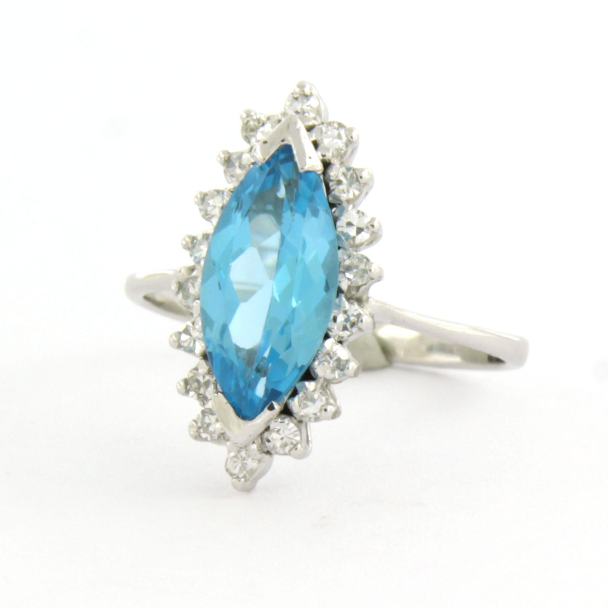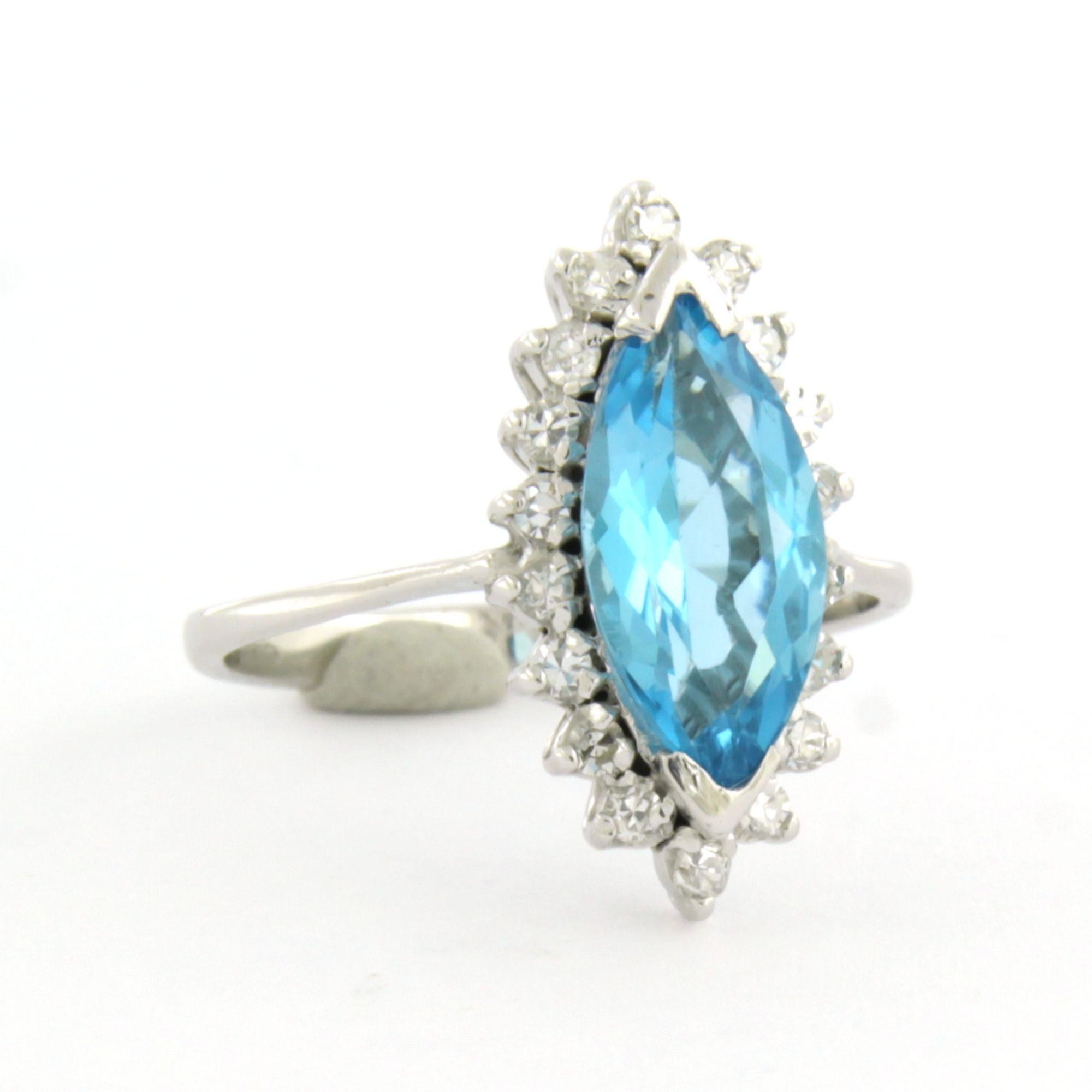 Witte (BWG) ring bezet met markies geslepen topaz 1.80 ct en single cut geslepen diamanten tot. 0.18 ct F/G VS/SI - ringmaat 15.5 (49)