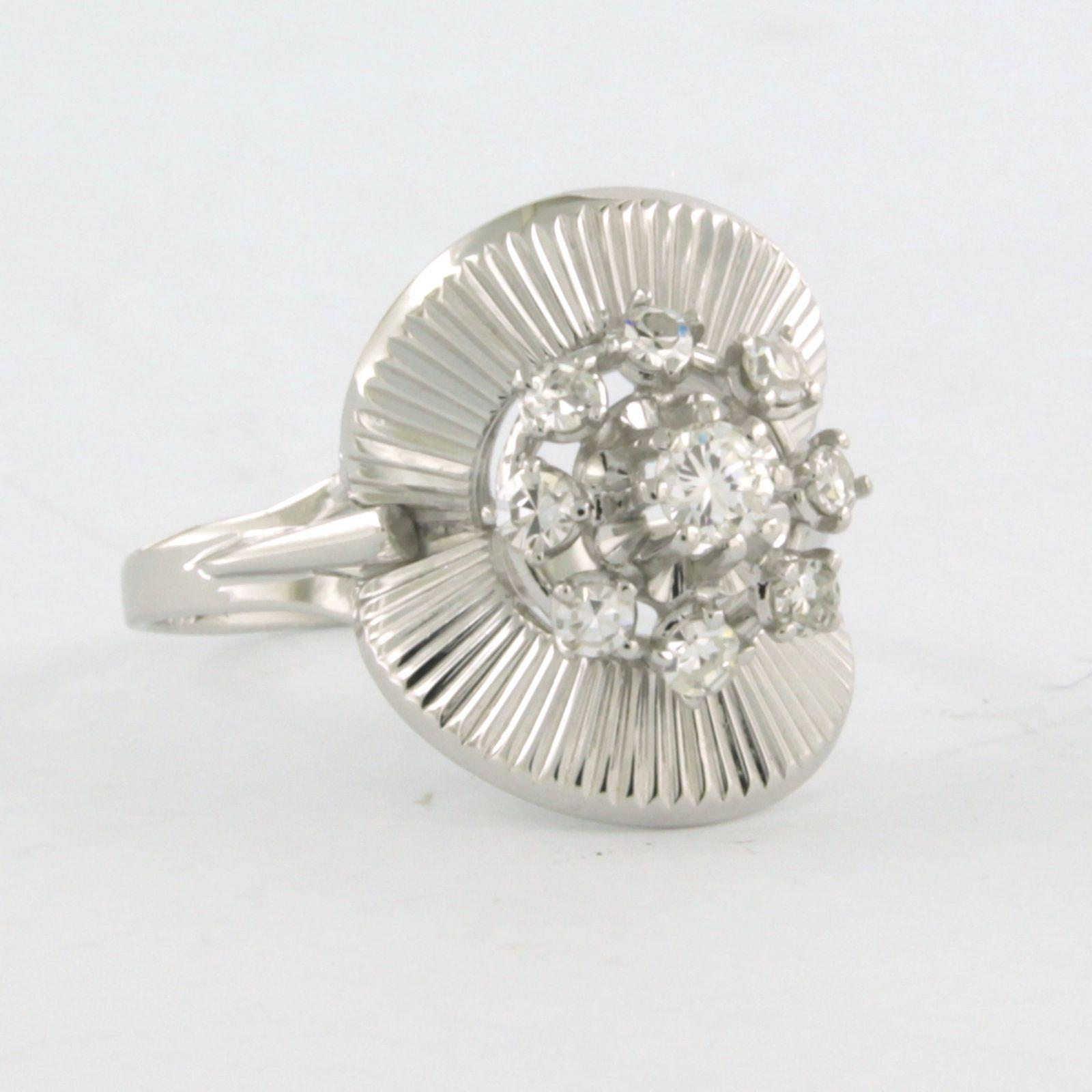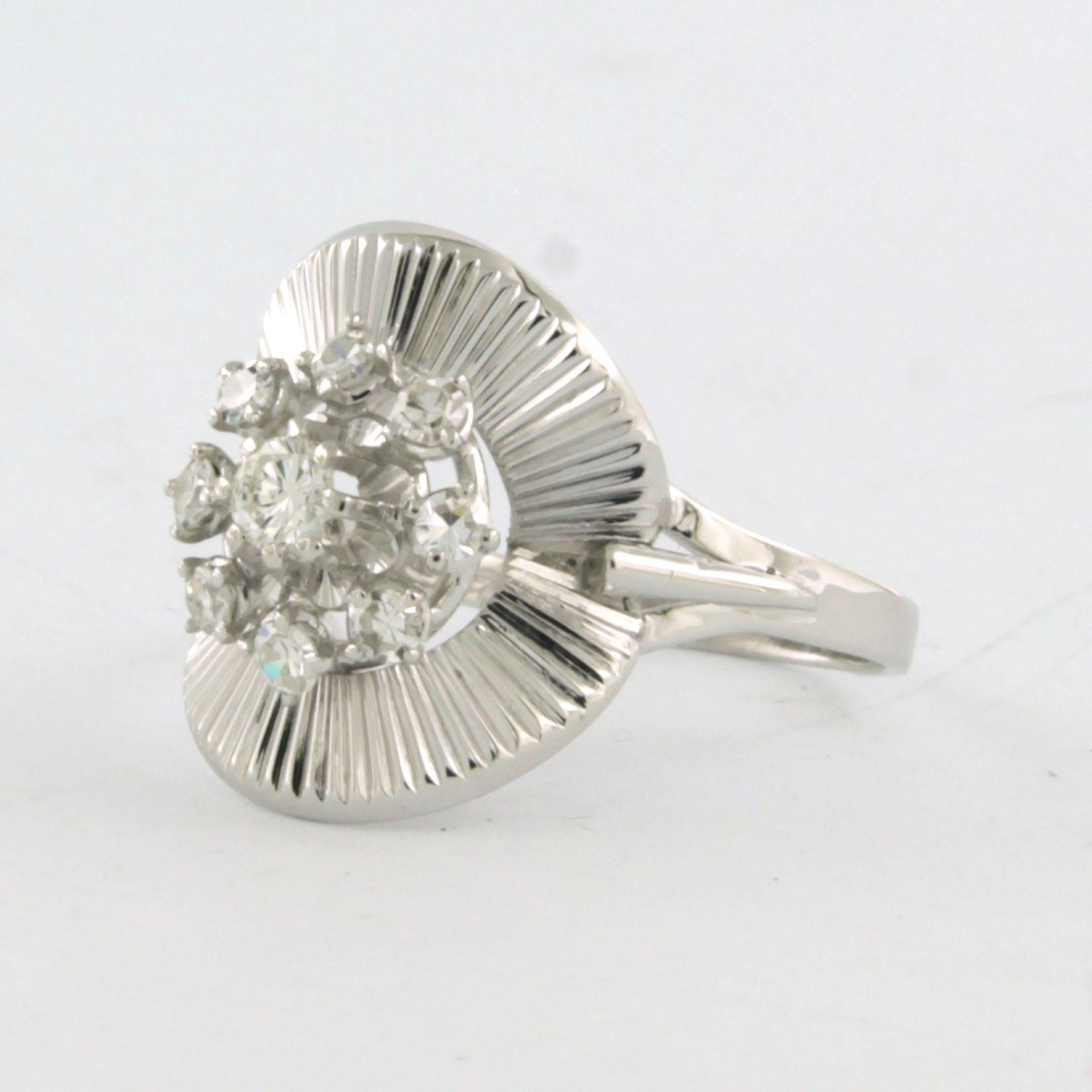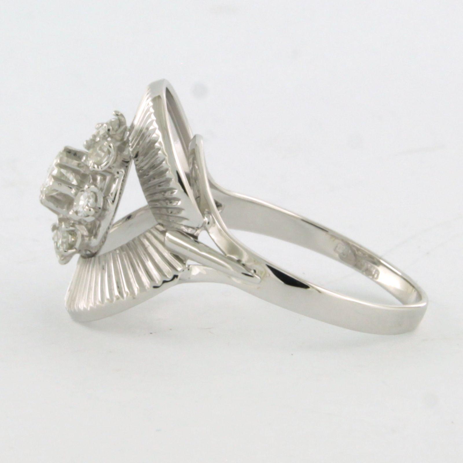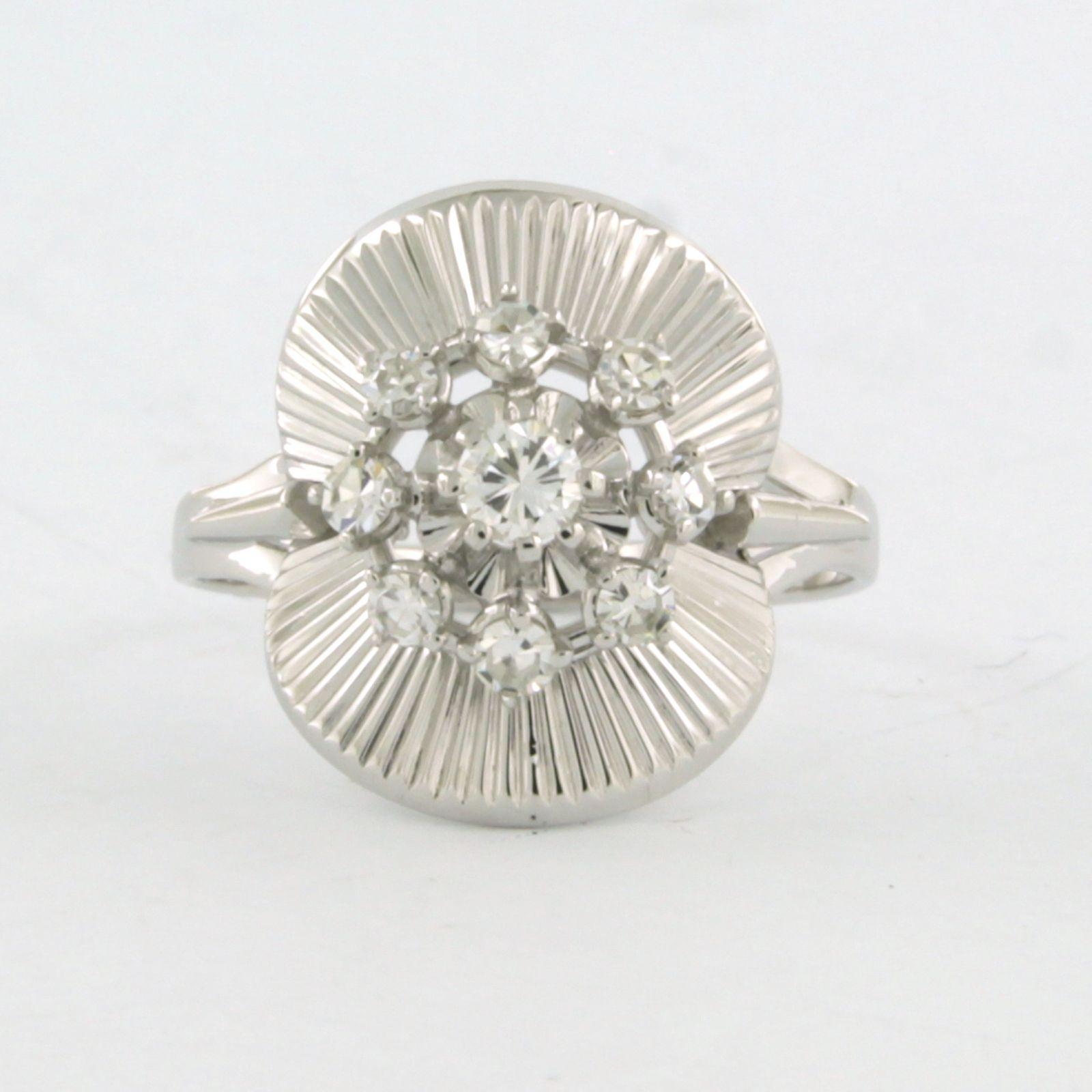 18 Kt. witgouden ring bezet met briljant en single cut geslepen diamanten tot. 0.35ct - VS/SI - ringmaat 16.5(52)