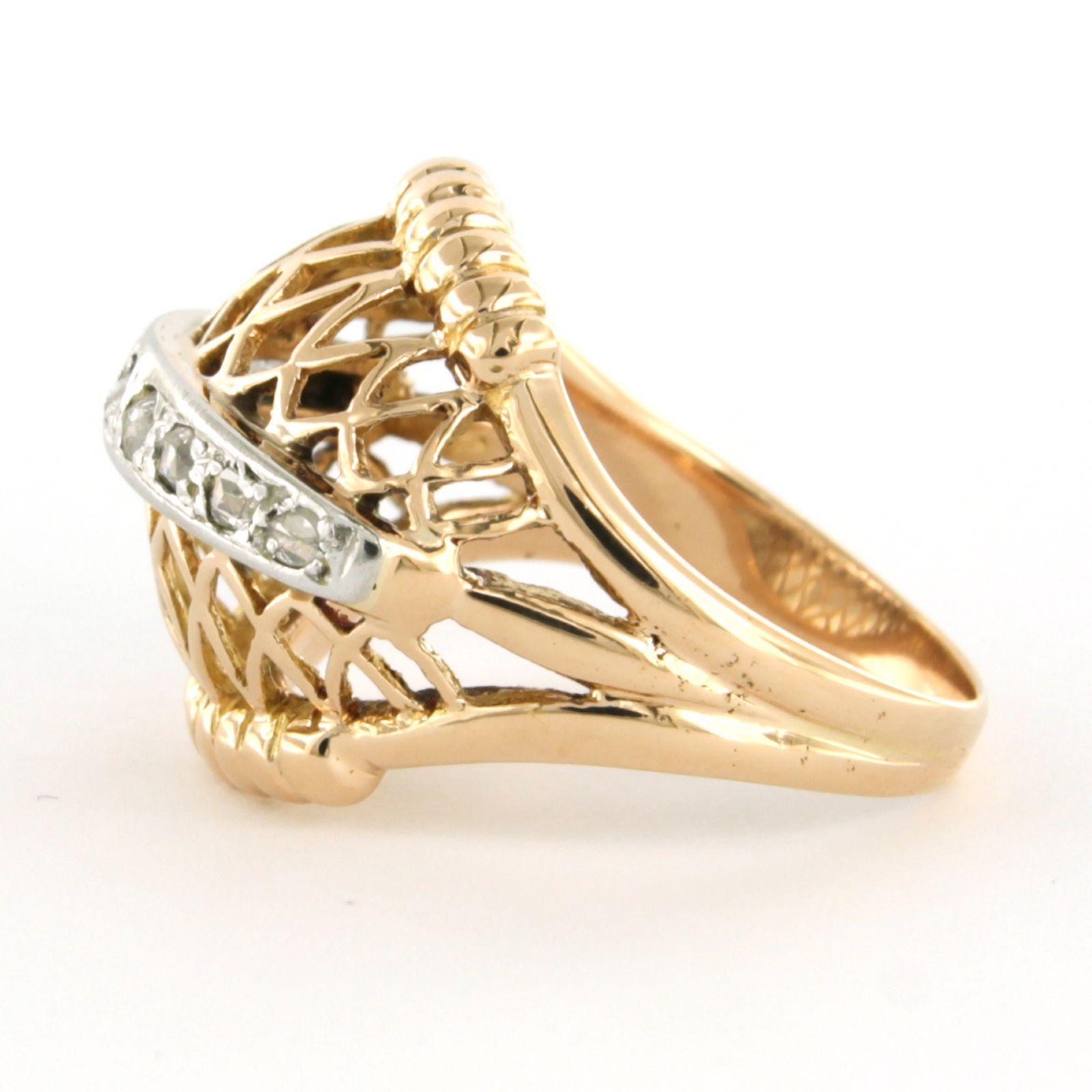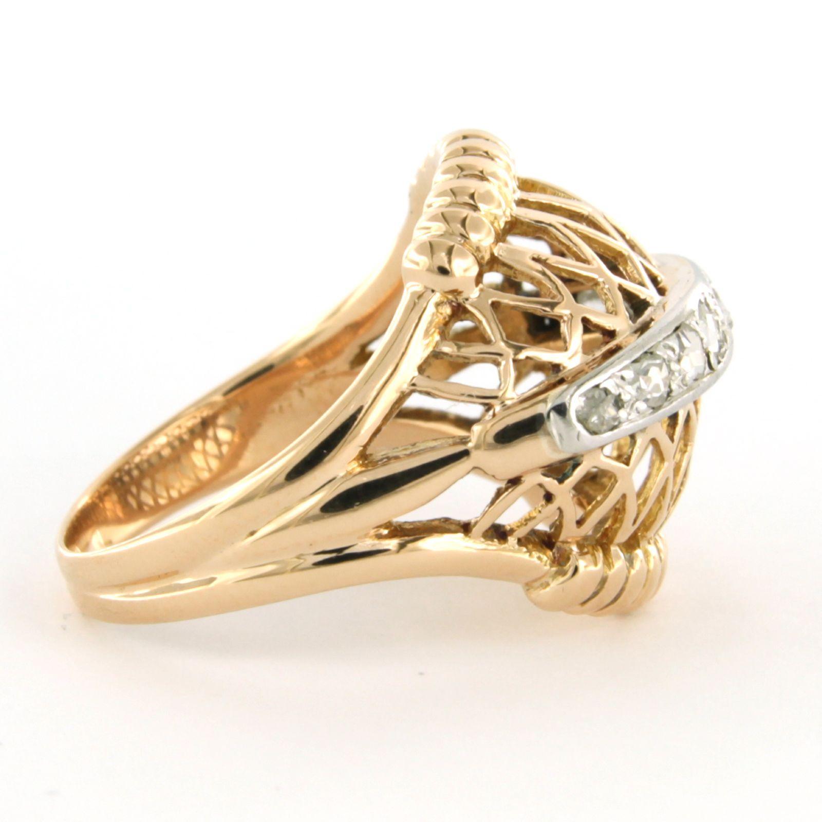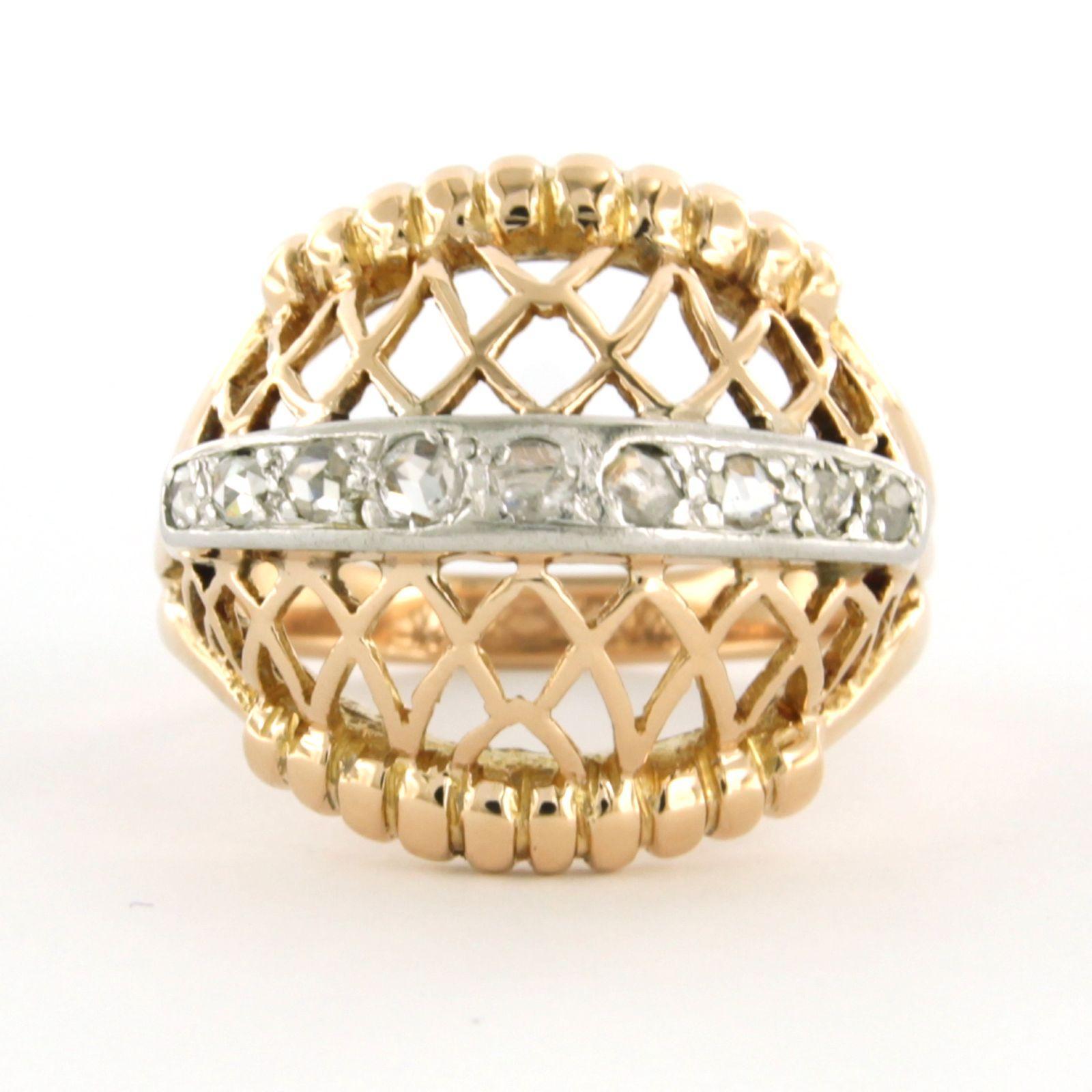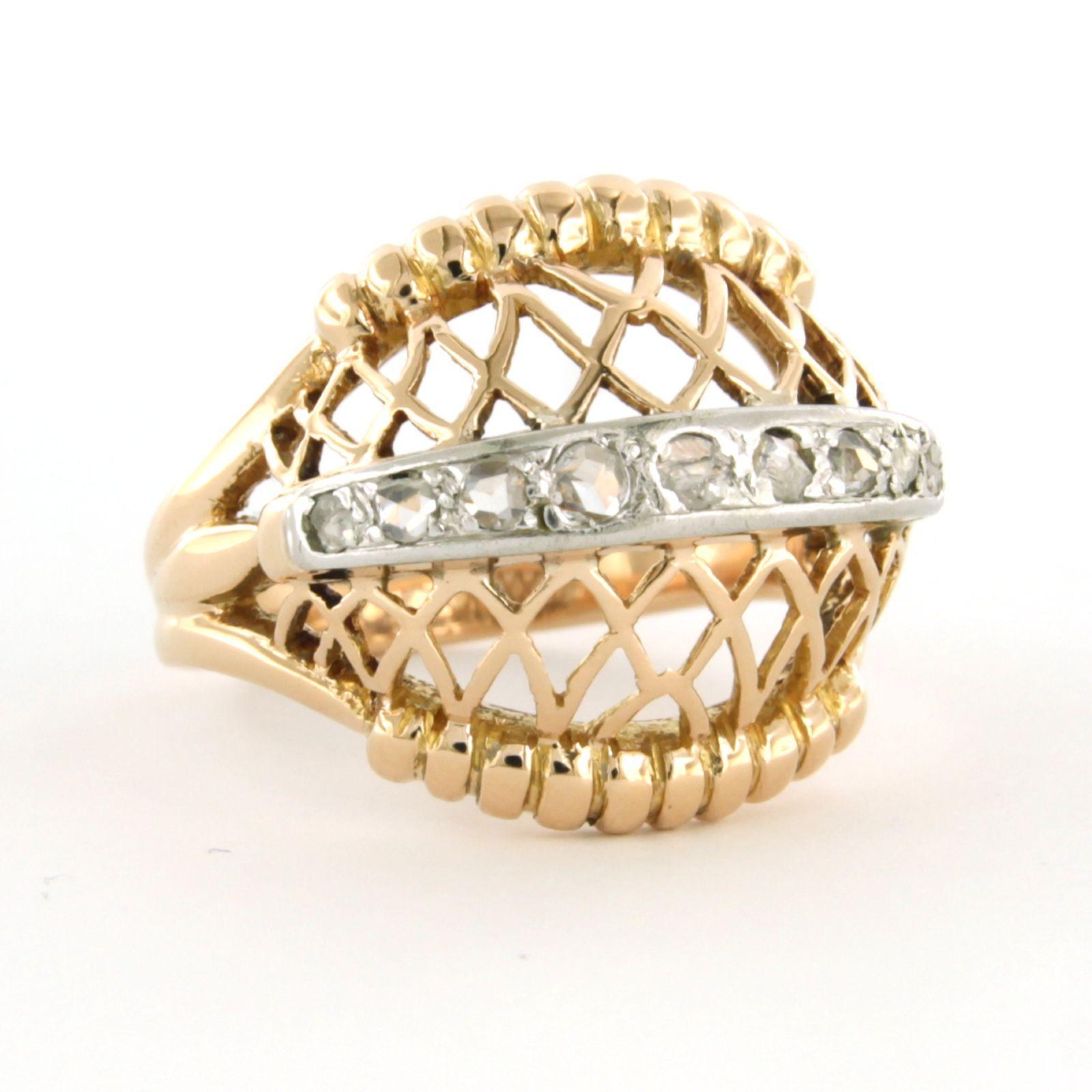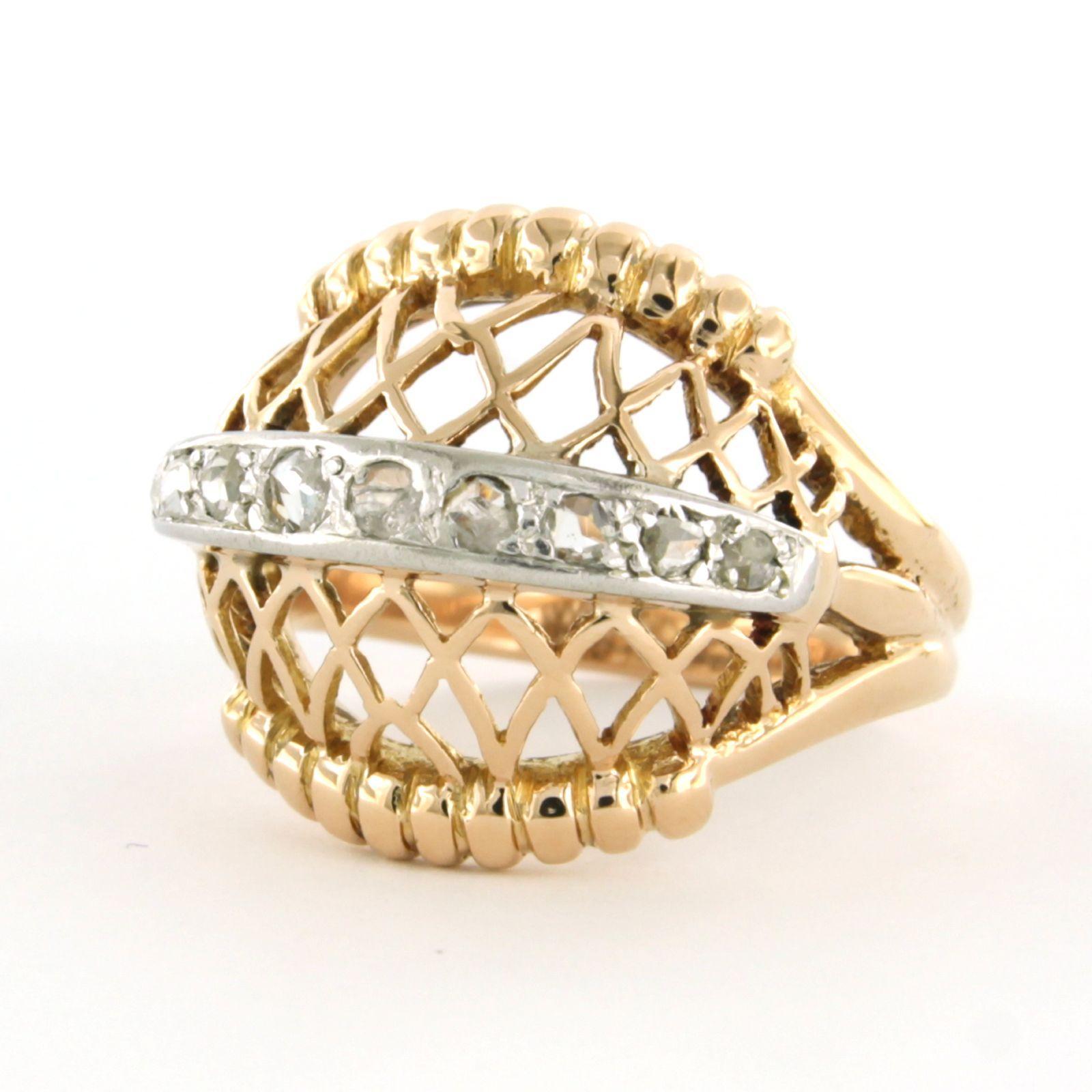 18 Kt. bicolour gouden ring bezet met roos geslepen diamant tot. 0.20ct – G/H - SI - ringmaat 17.75(56)
