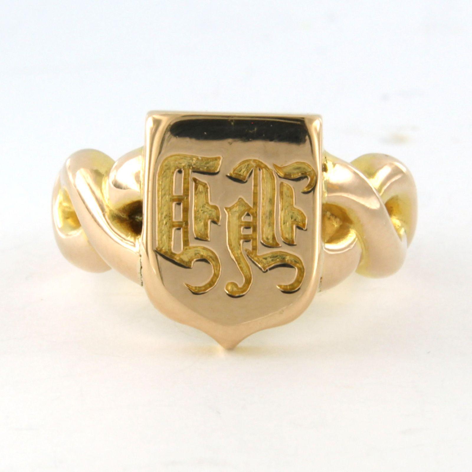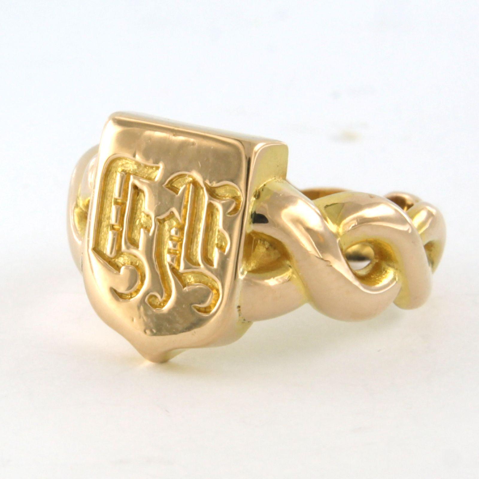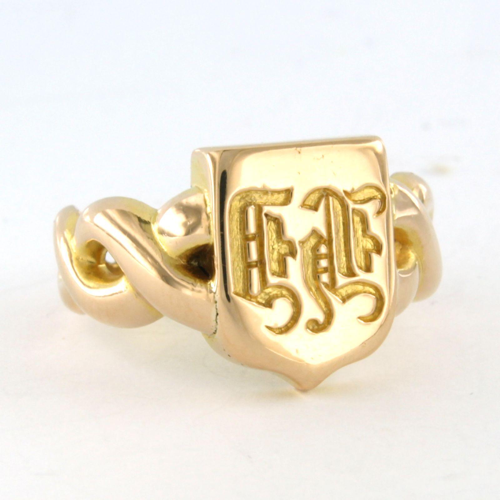 18 Kt. geelgouden ring met een familiewapen - 9.8 gram - ringmaat 17.5(55)