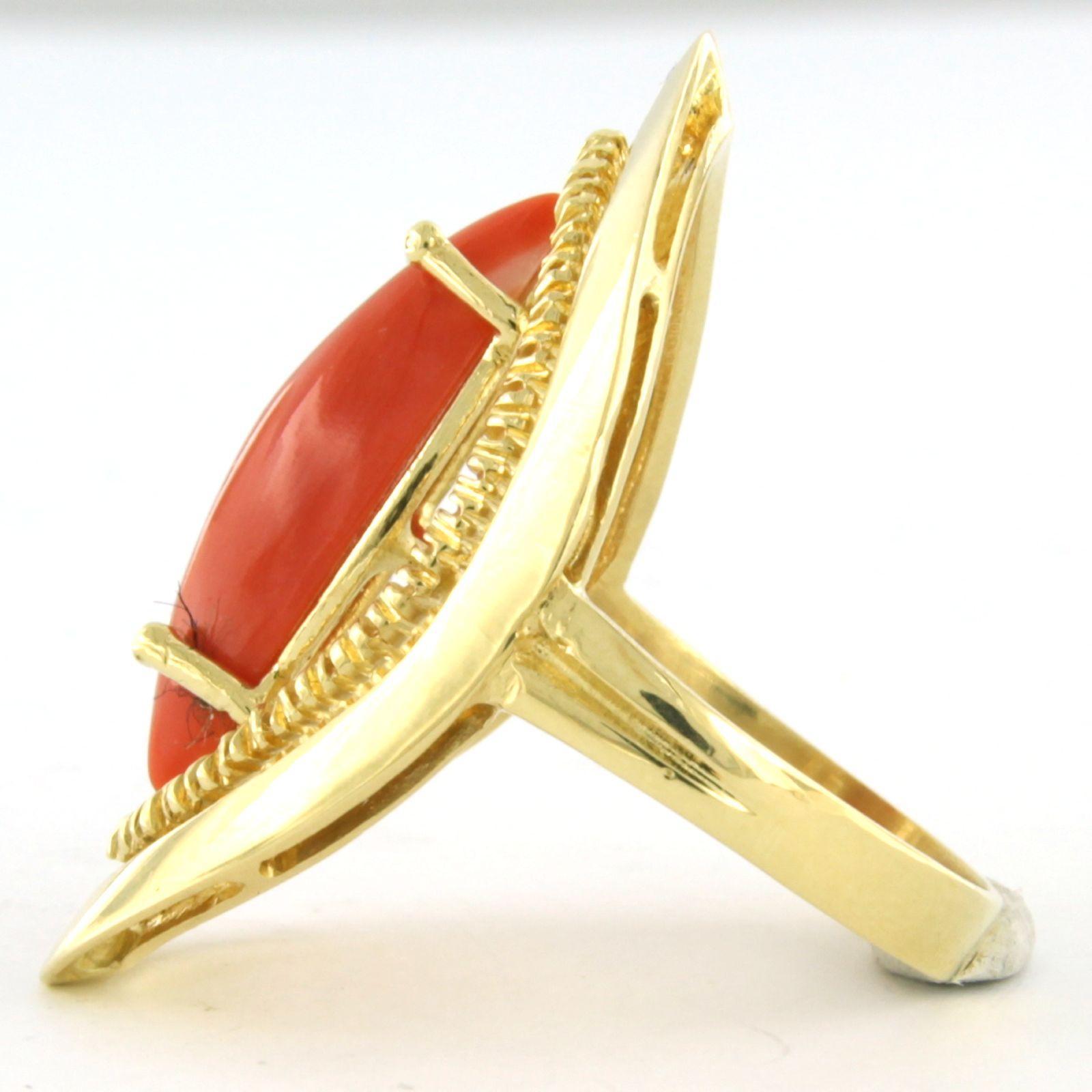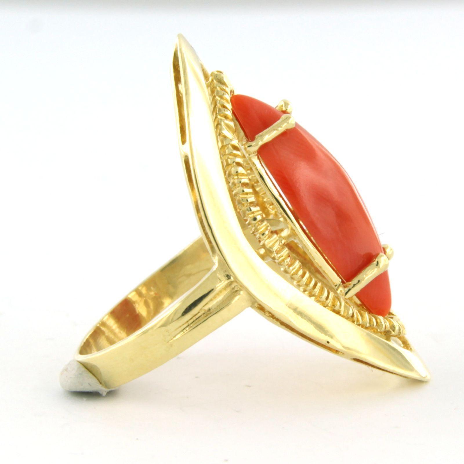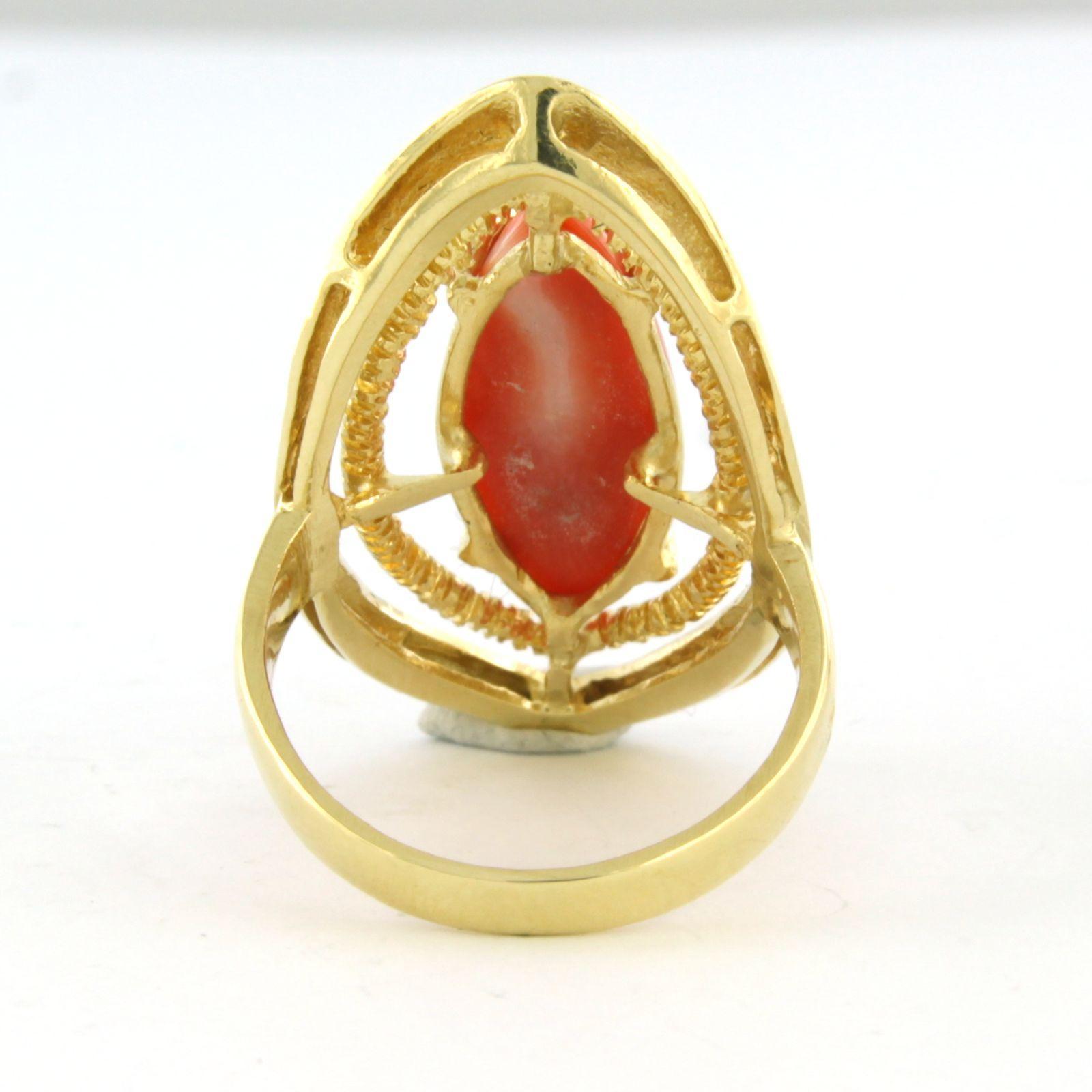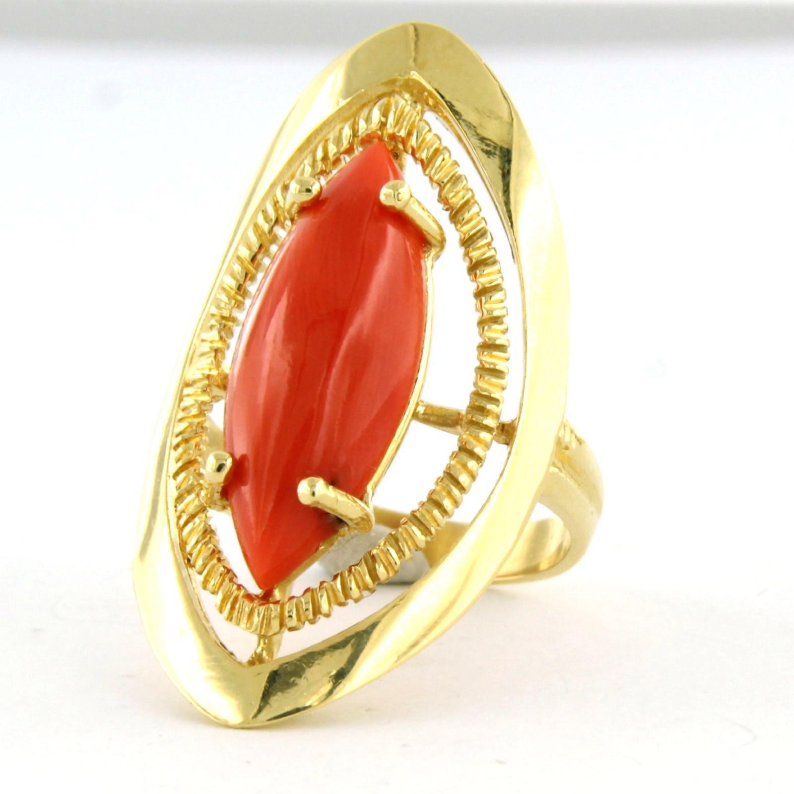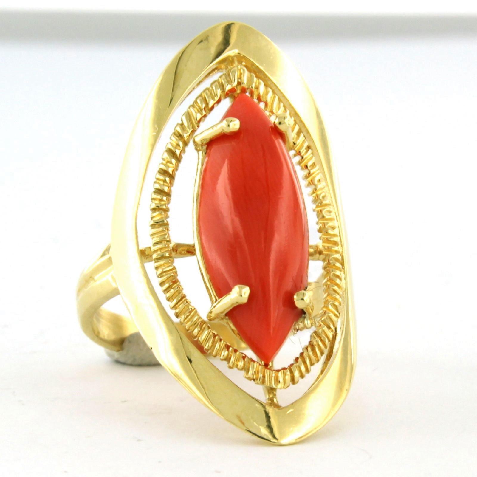 18 Kt. geelgouden ring bezet met koraal - 7.3 gram - ringmaat 17 (53)