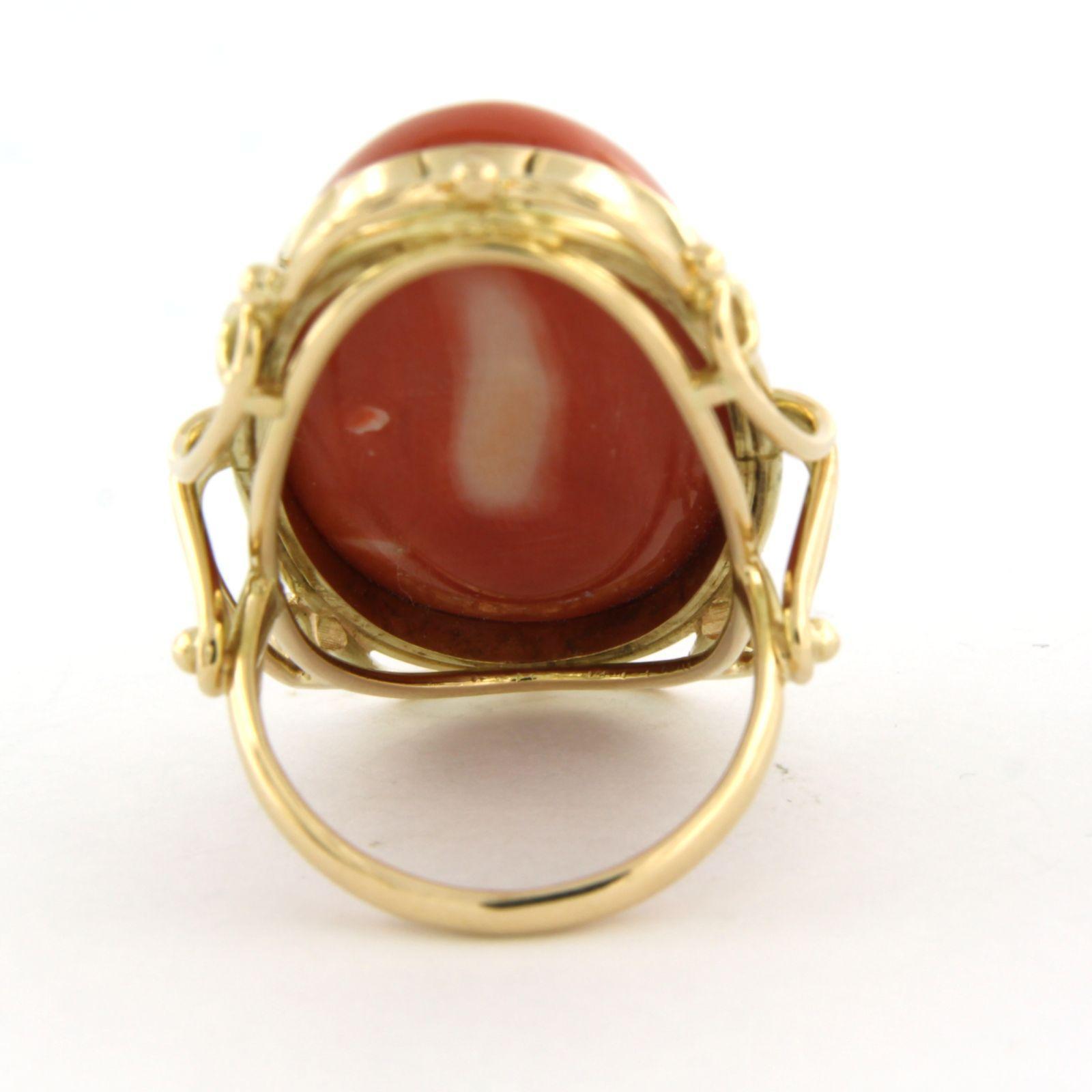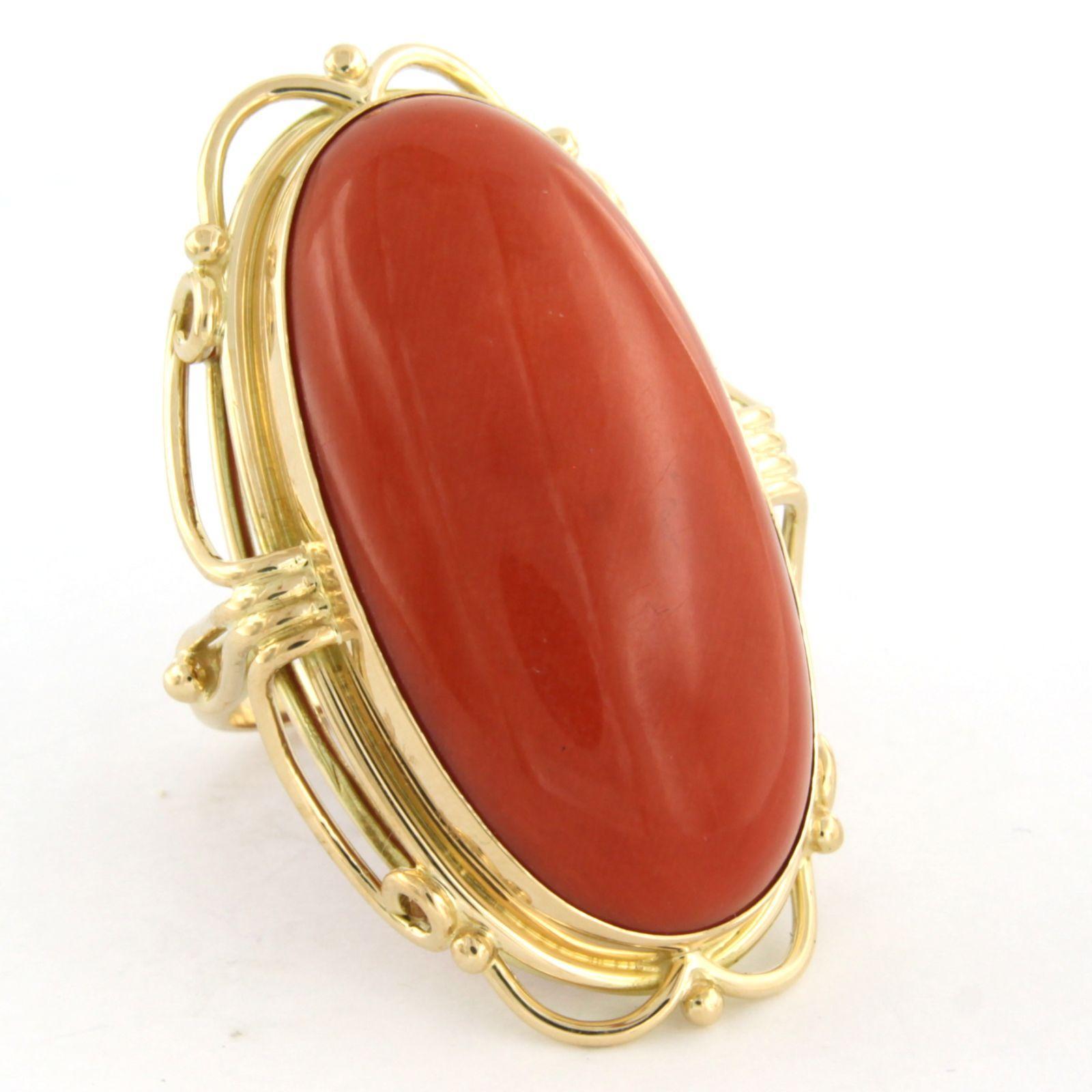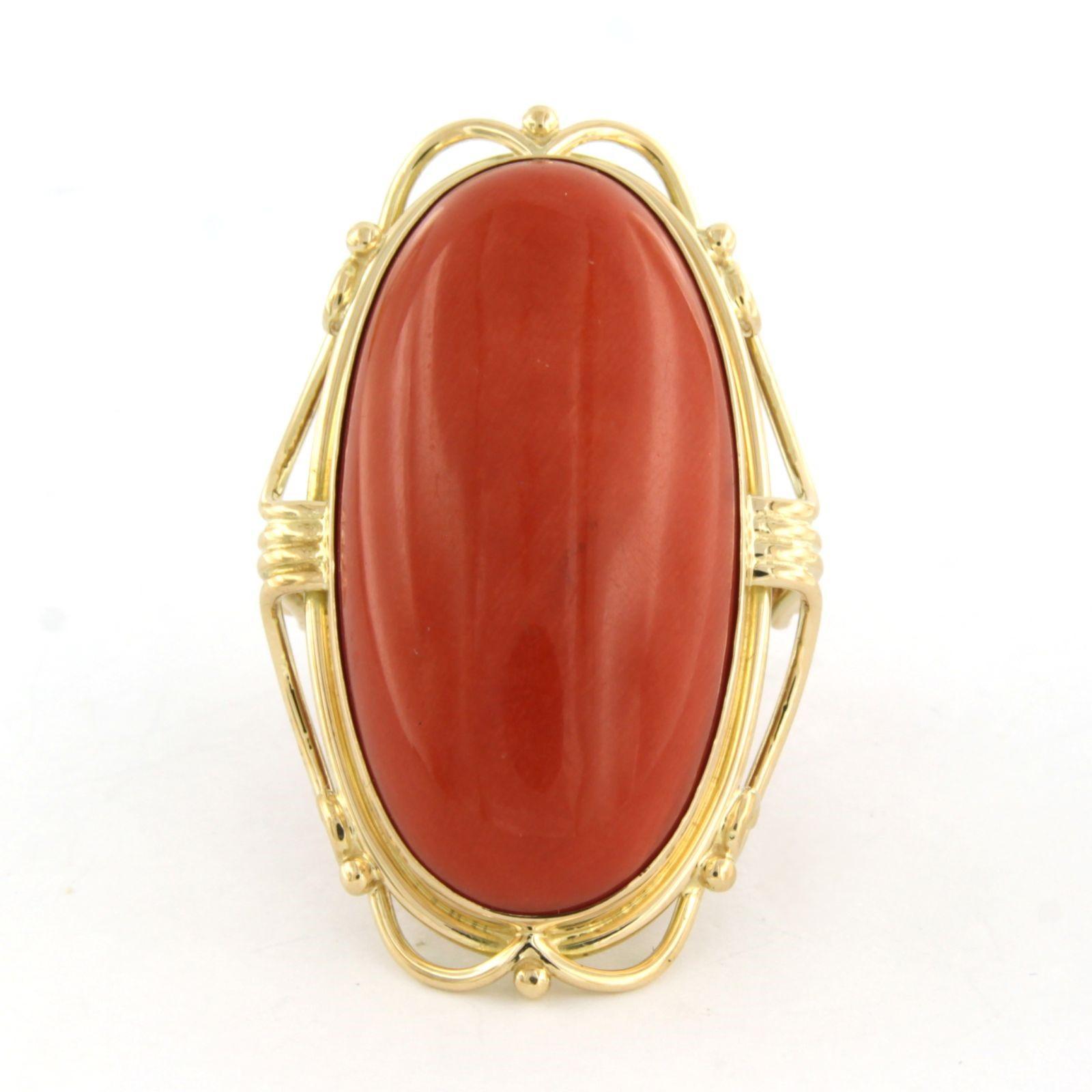 14 Kt. geelgouden ring met een koraal - 17.5 gram - ringmaat 17.25(54)