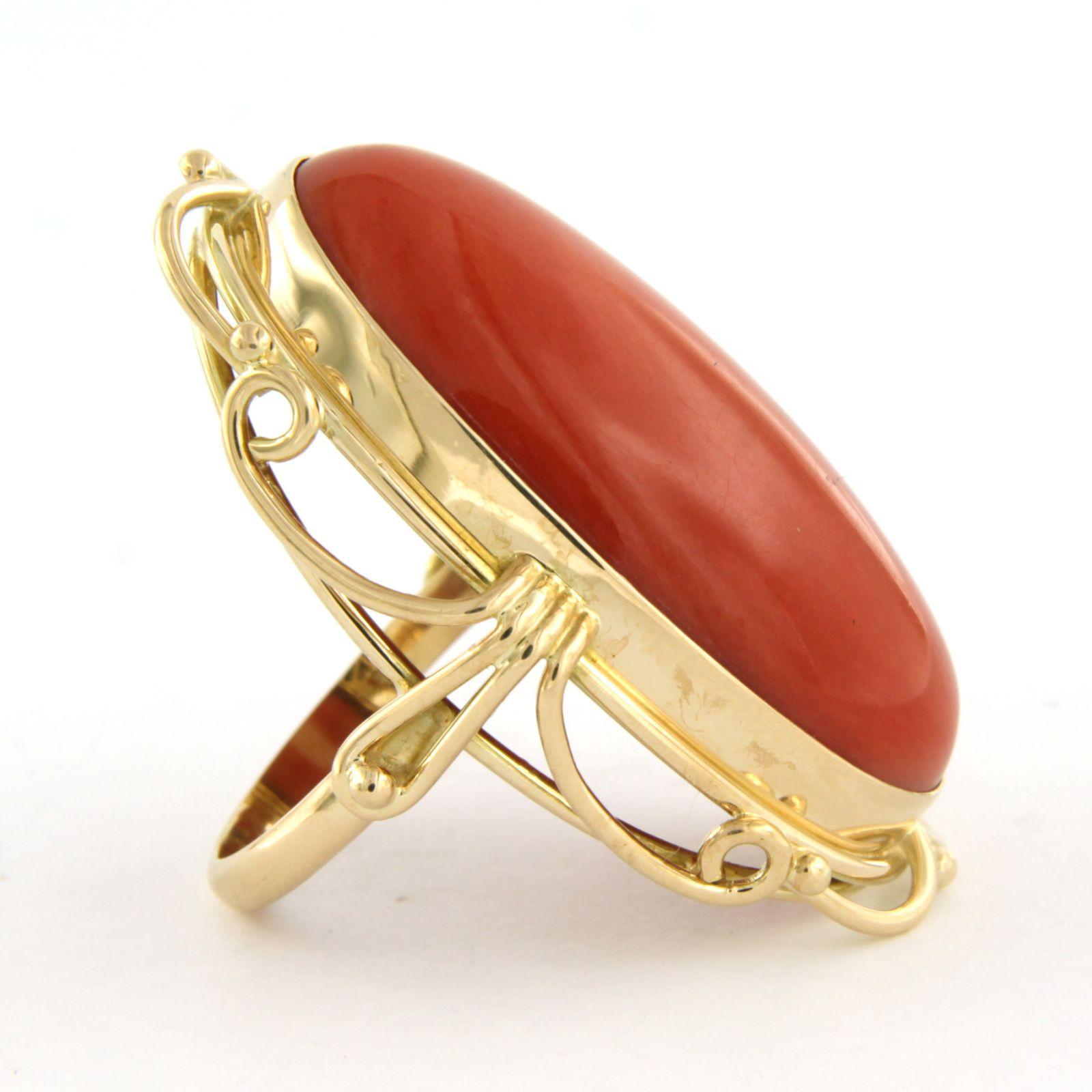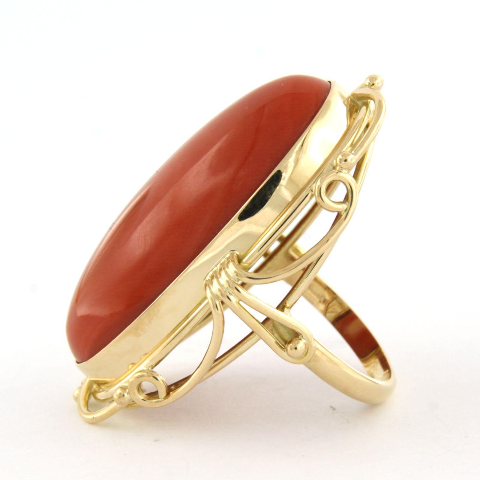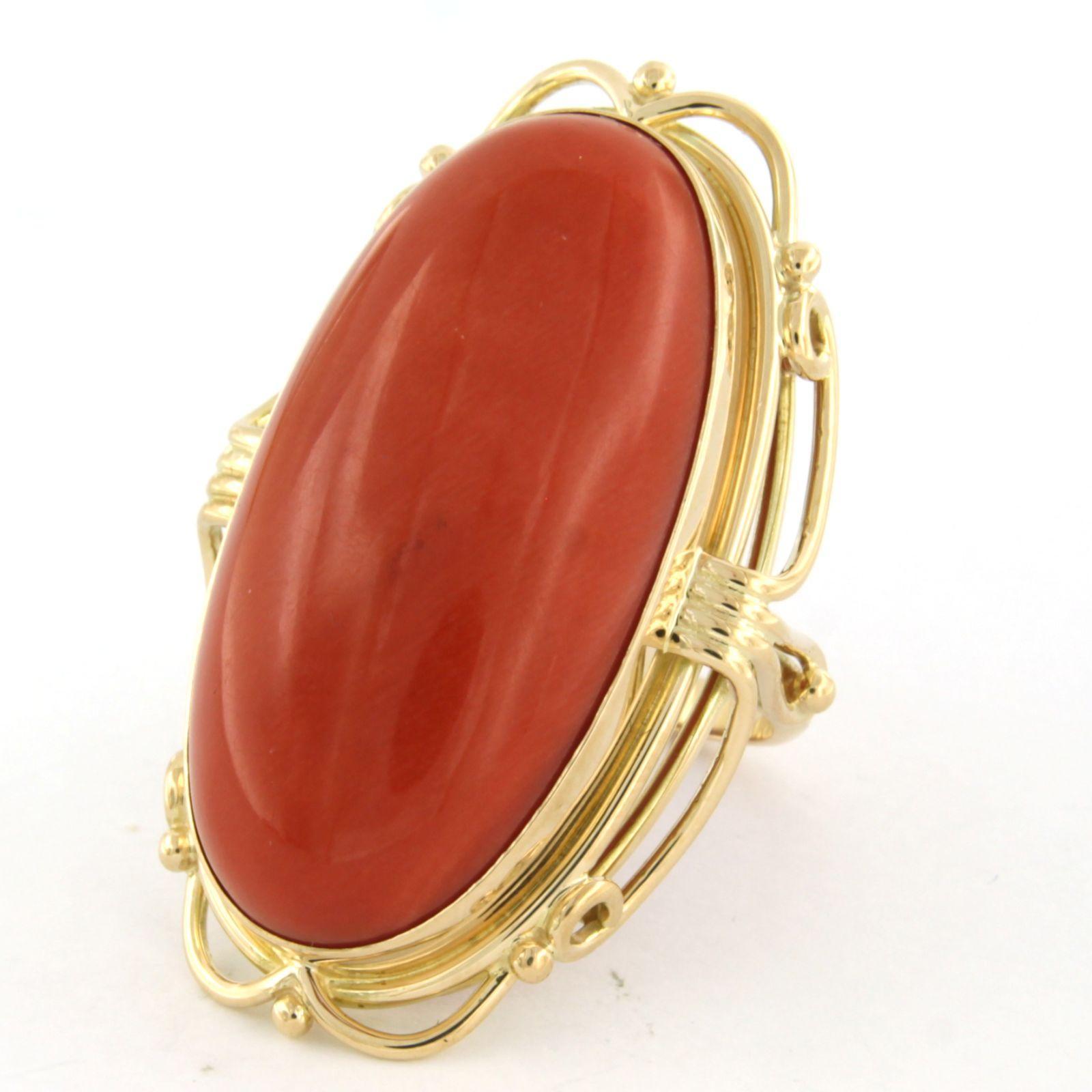 14 Kt. geelgouden ring met een koraal - 17.5 gram - ringmaat 17.25(54)