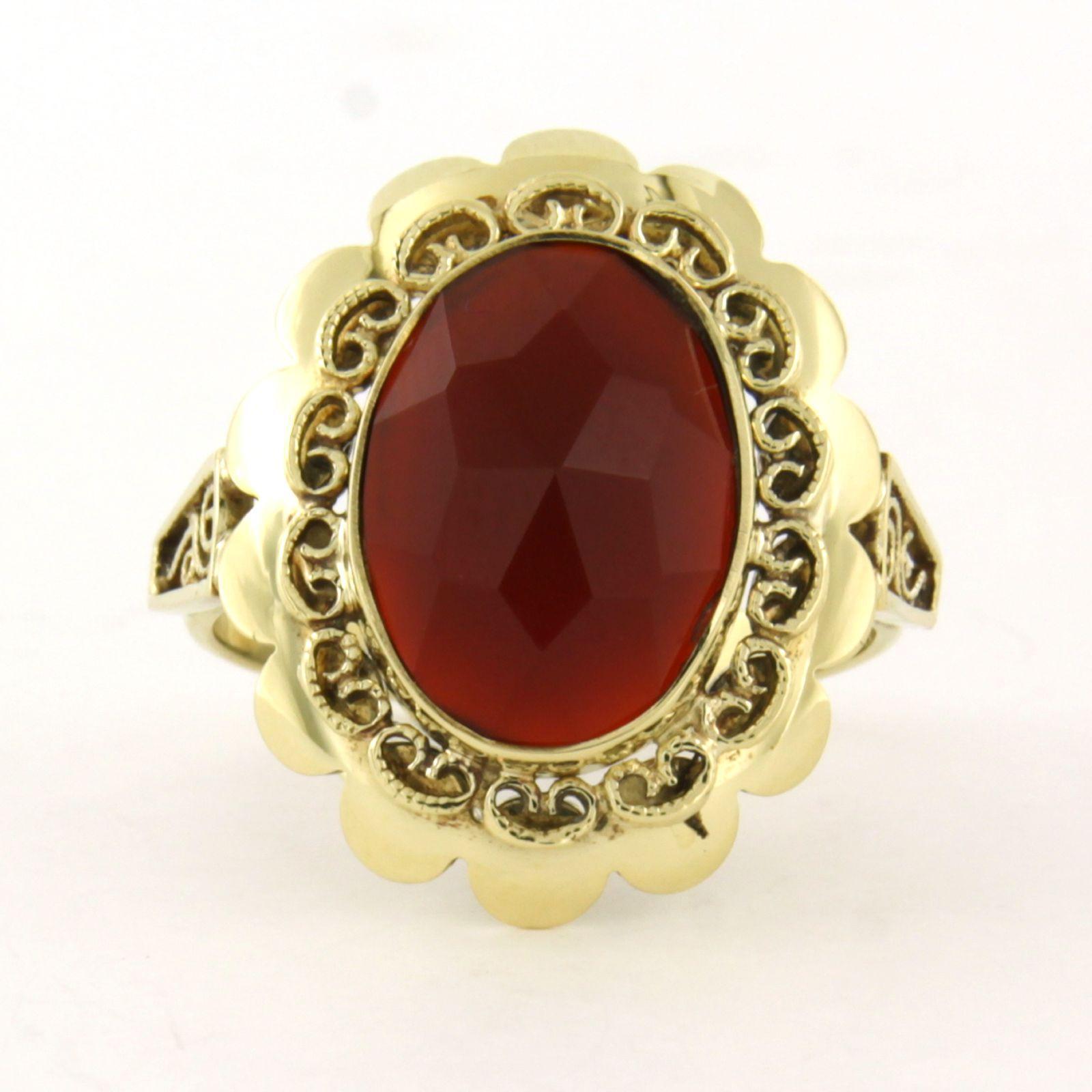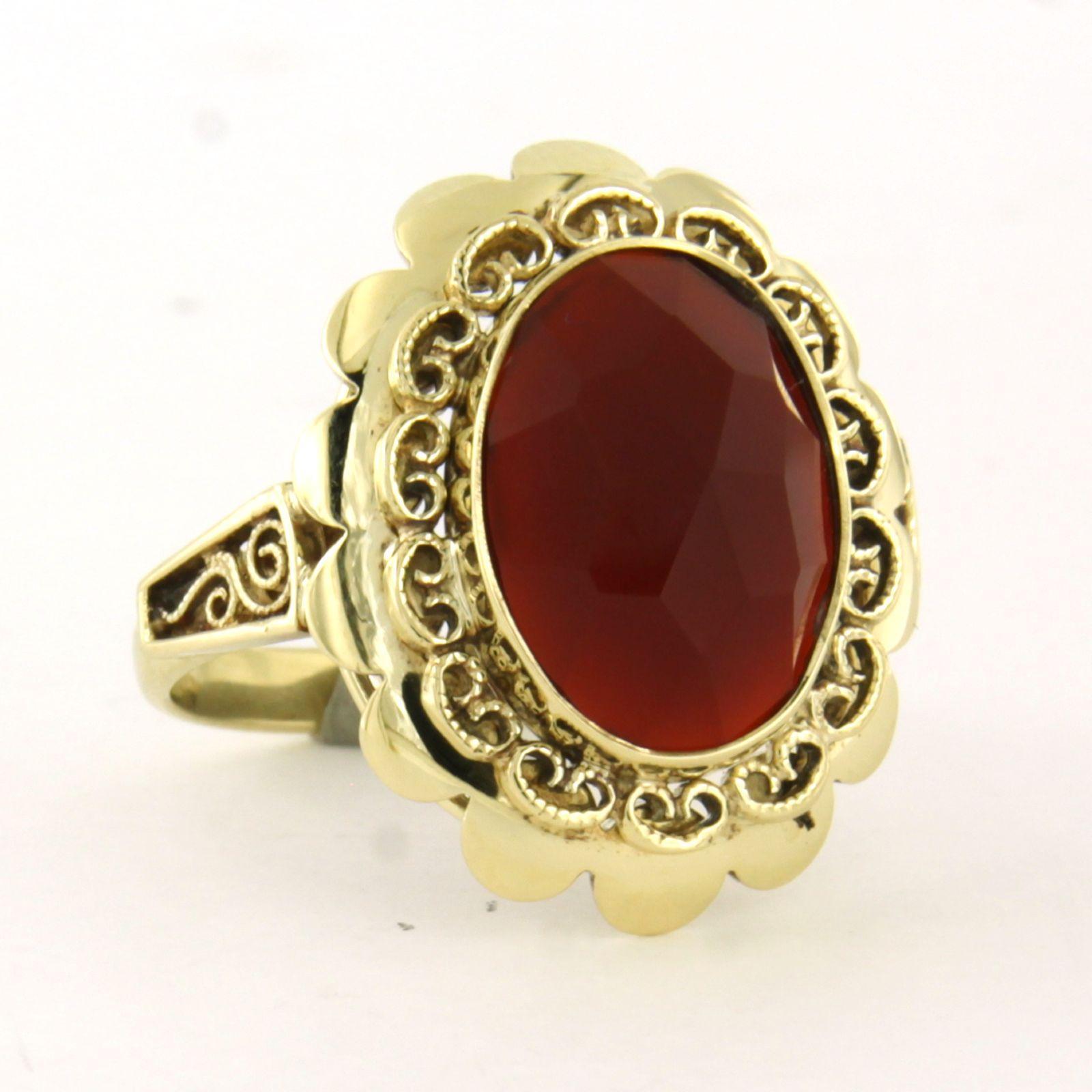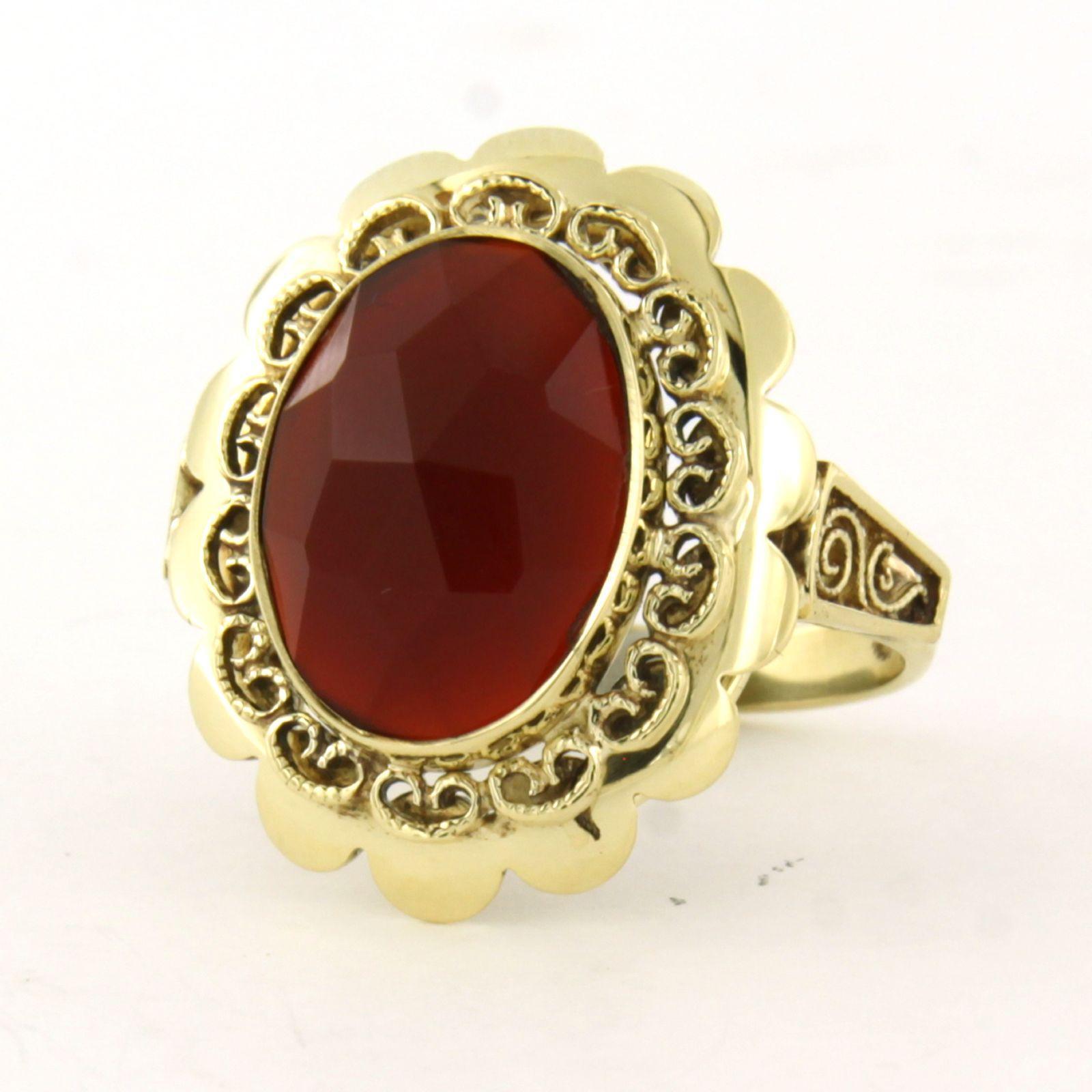 14 Kt. geelgouden ring bezet met een carneool - 5.6 gram -ringmaat 17.5(55)