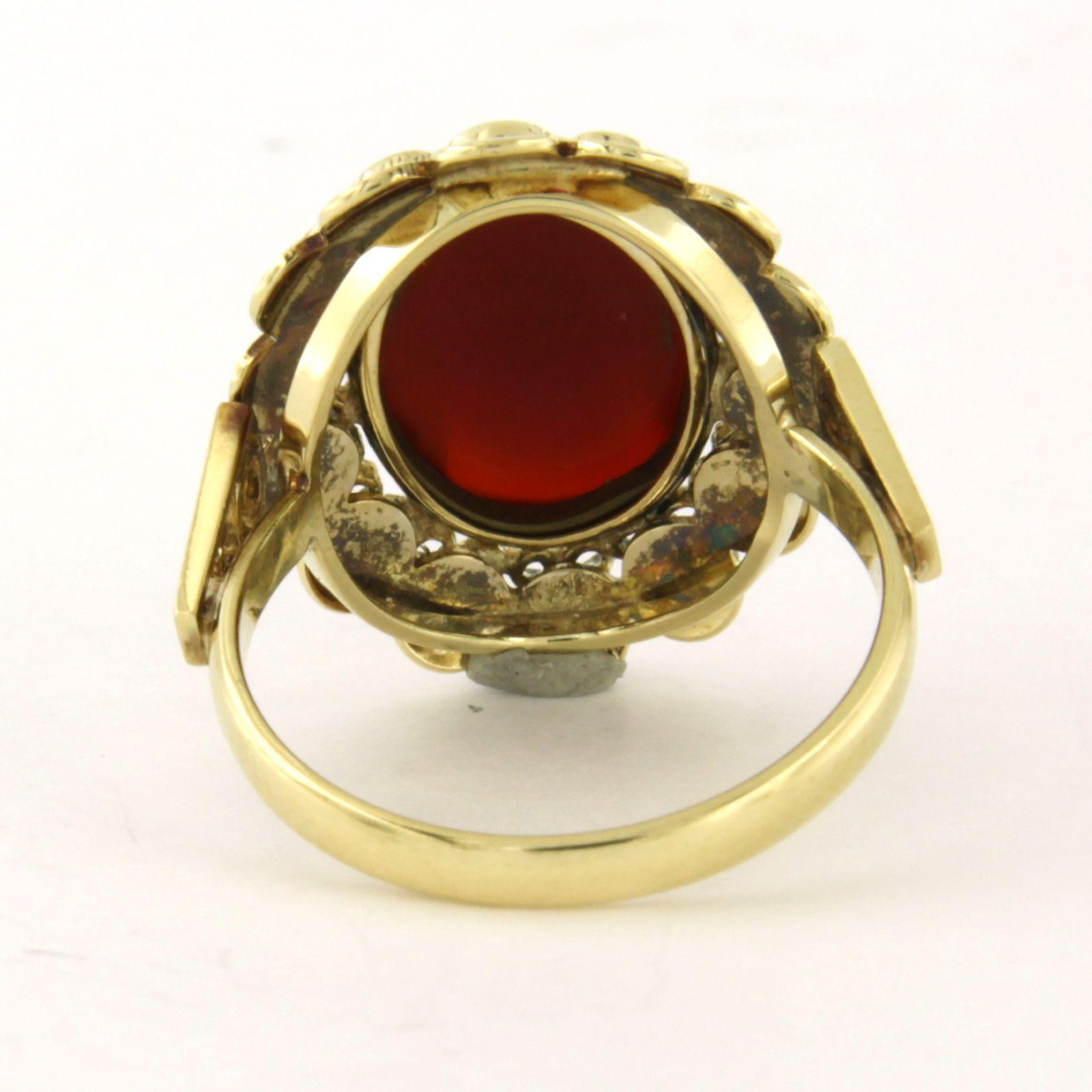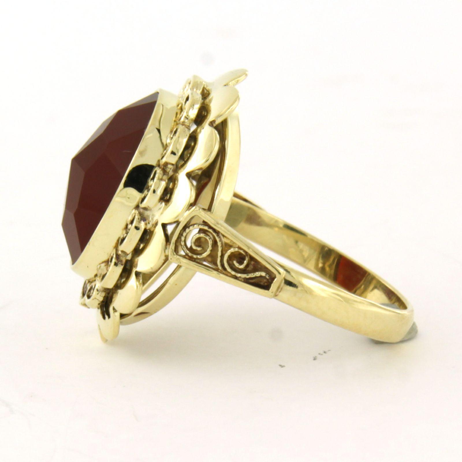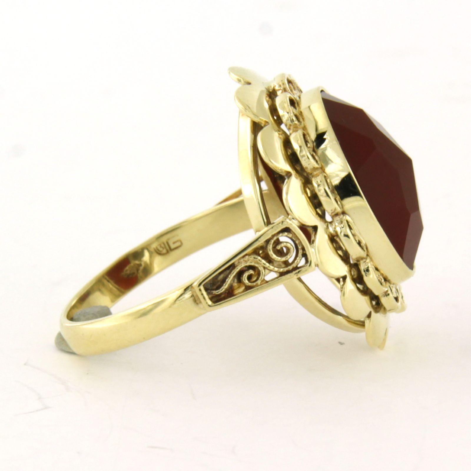 14 Kt. geelgouden ring bezet met een carneool - 5.6 gram -ringmaat 17.5(55)