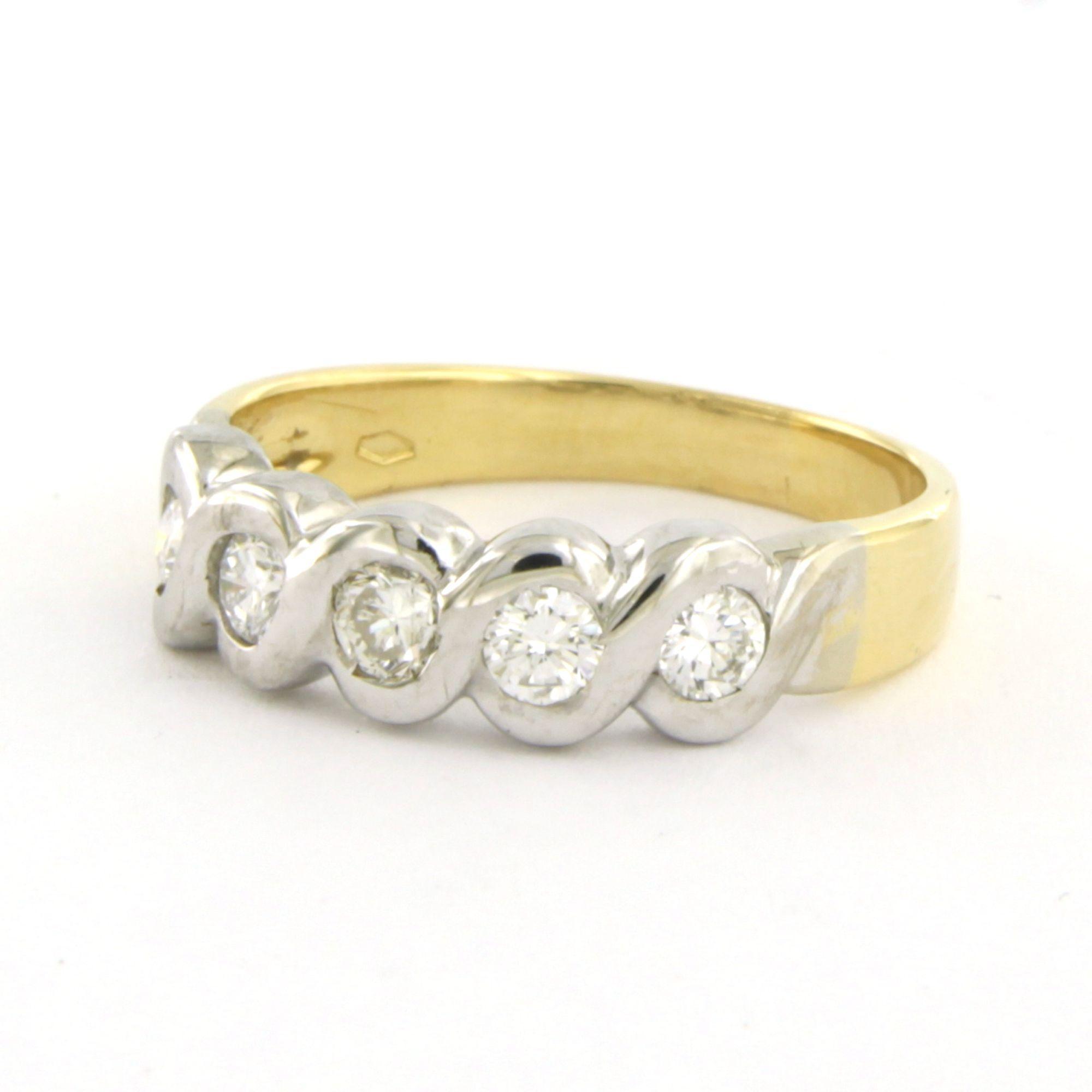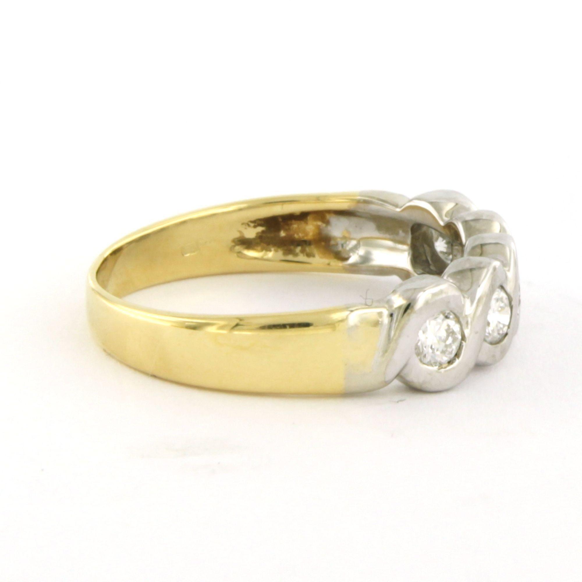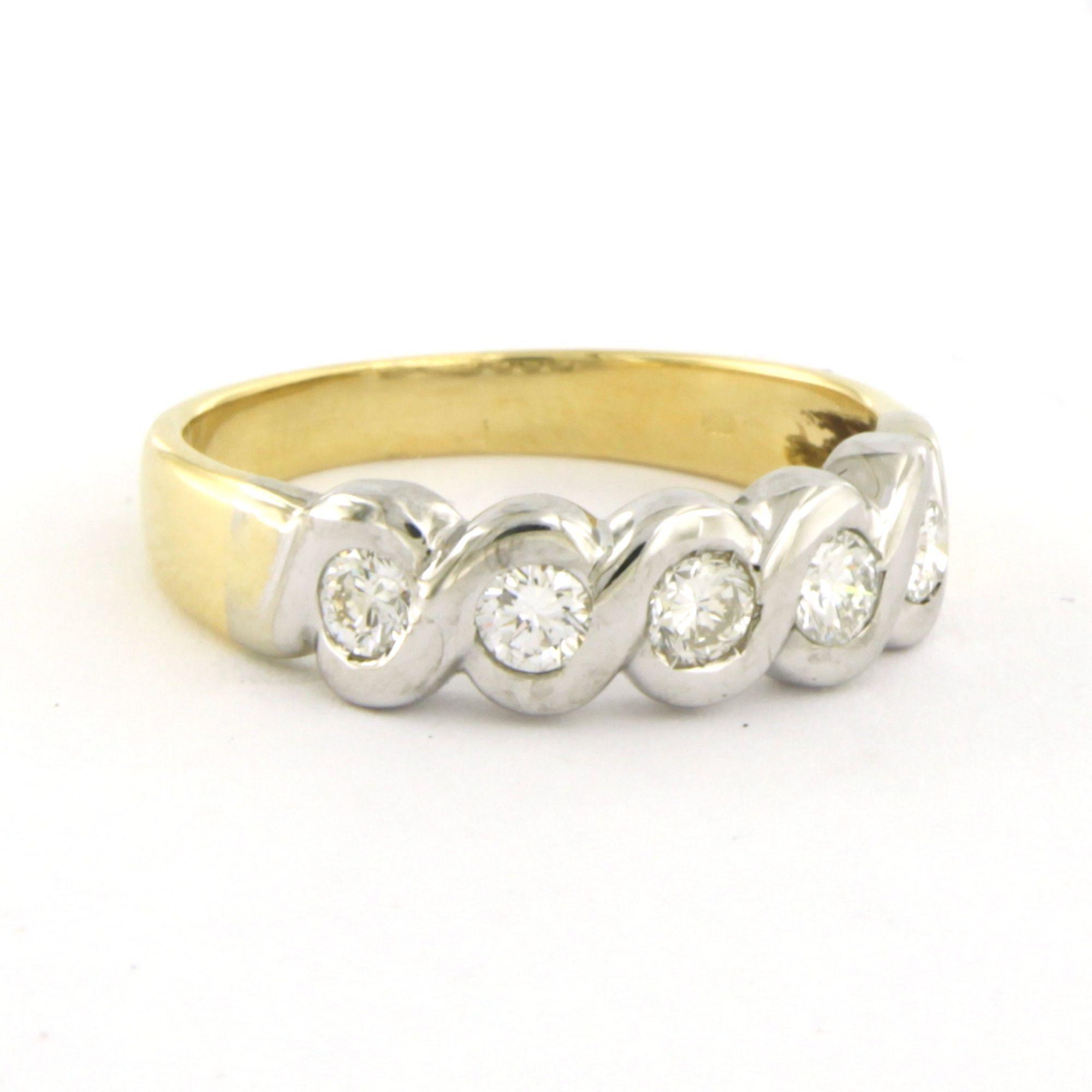 18 Kt. bicolour gouden ring bezet met briljant geslepen diamant tot. 0.45ct - ringmaat 17.5(55)