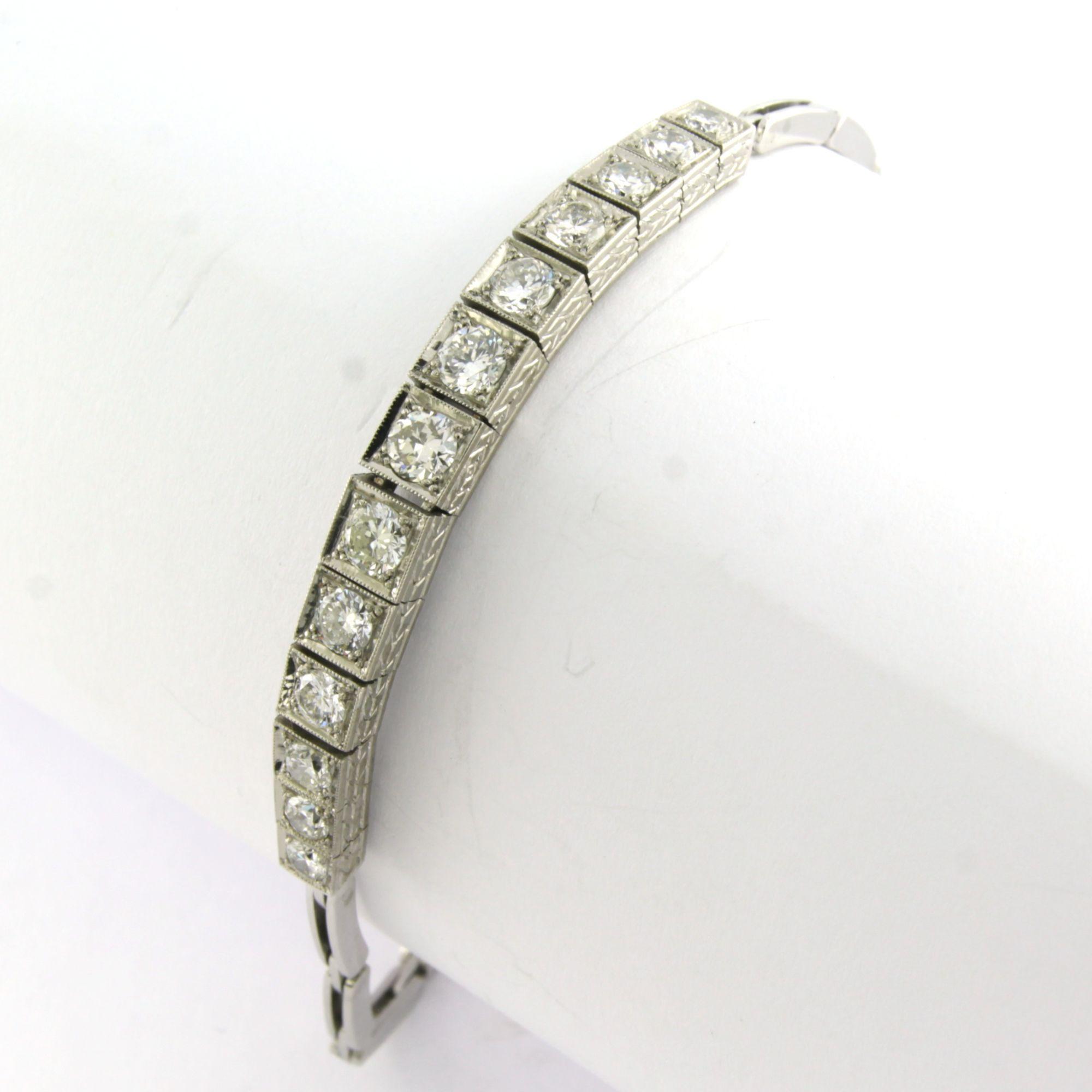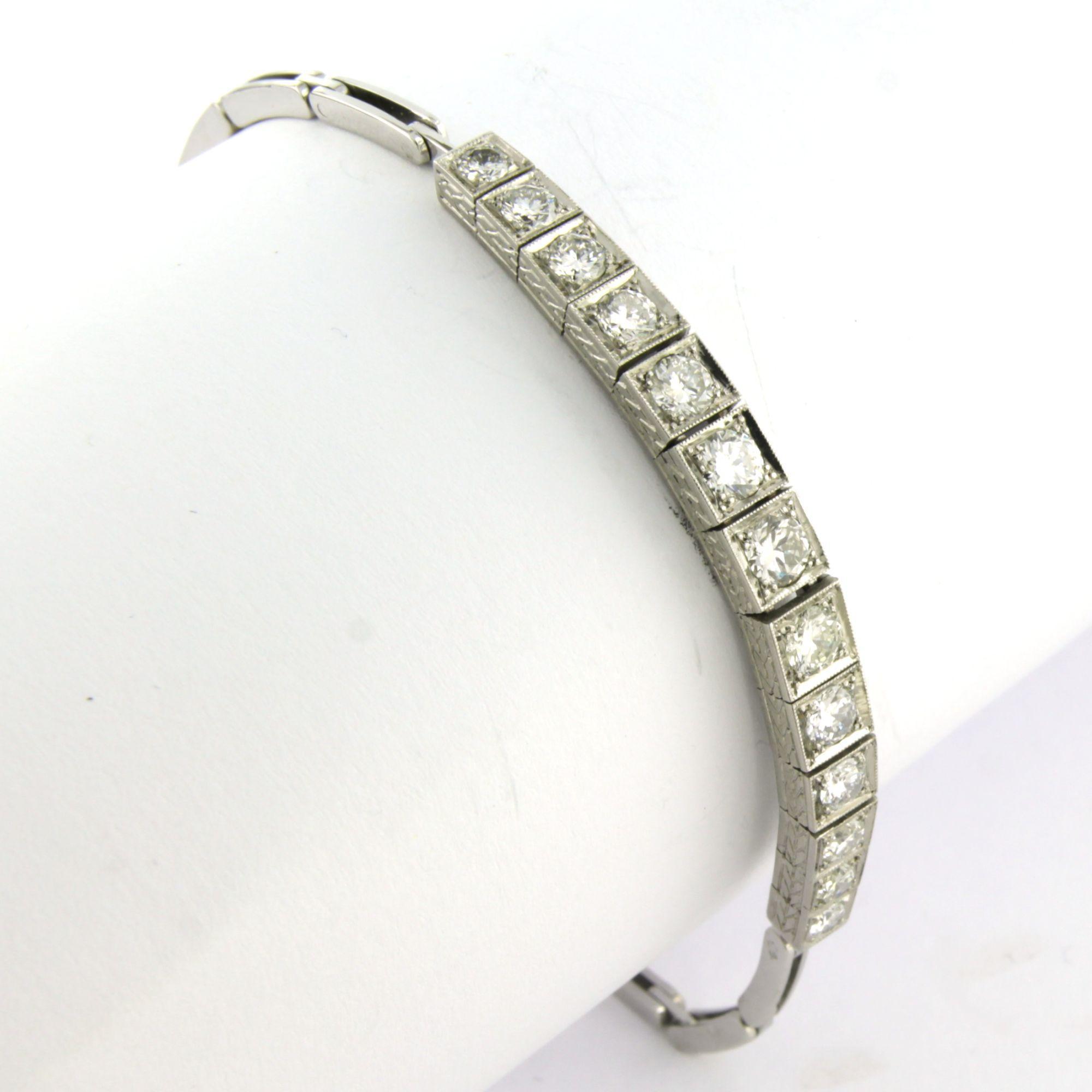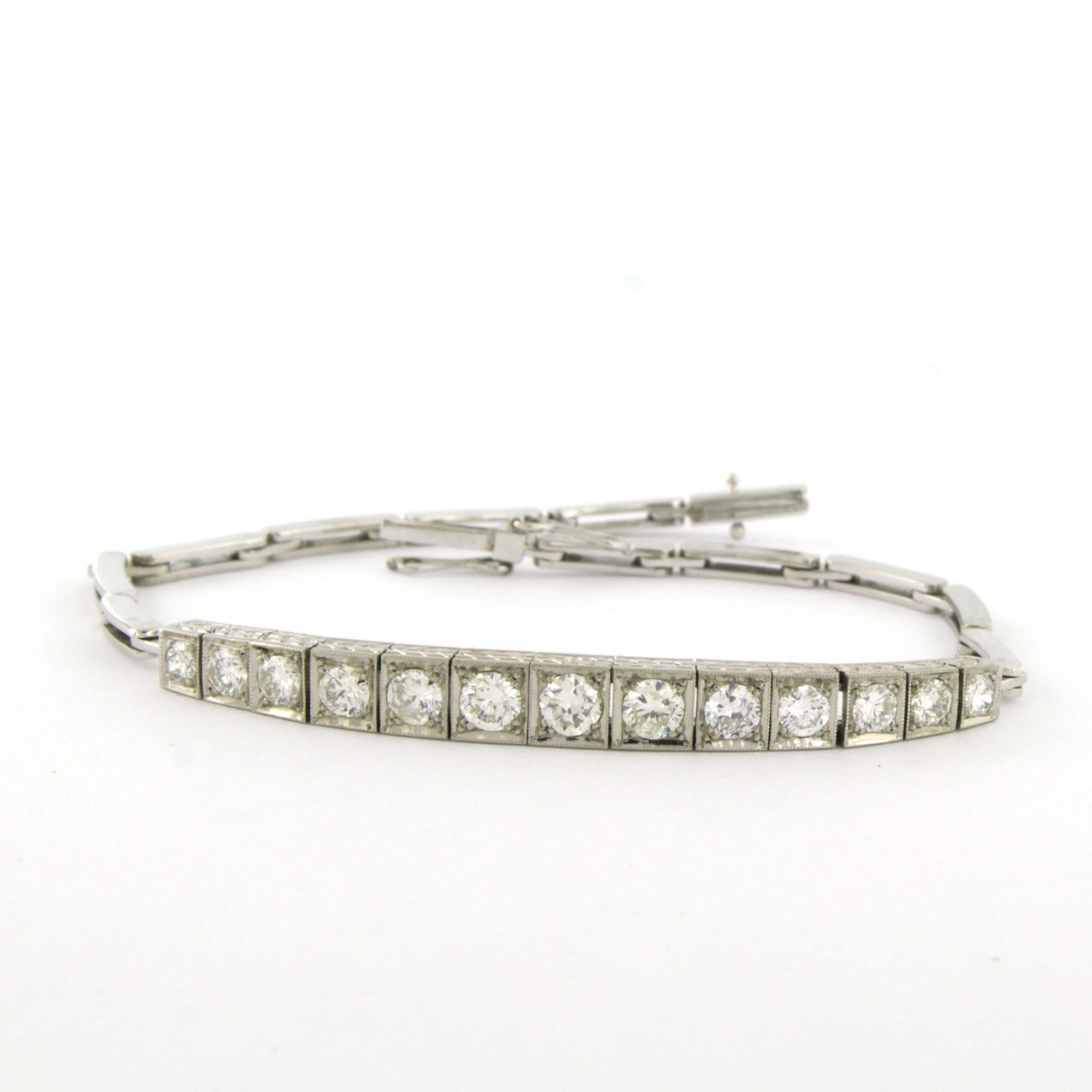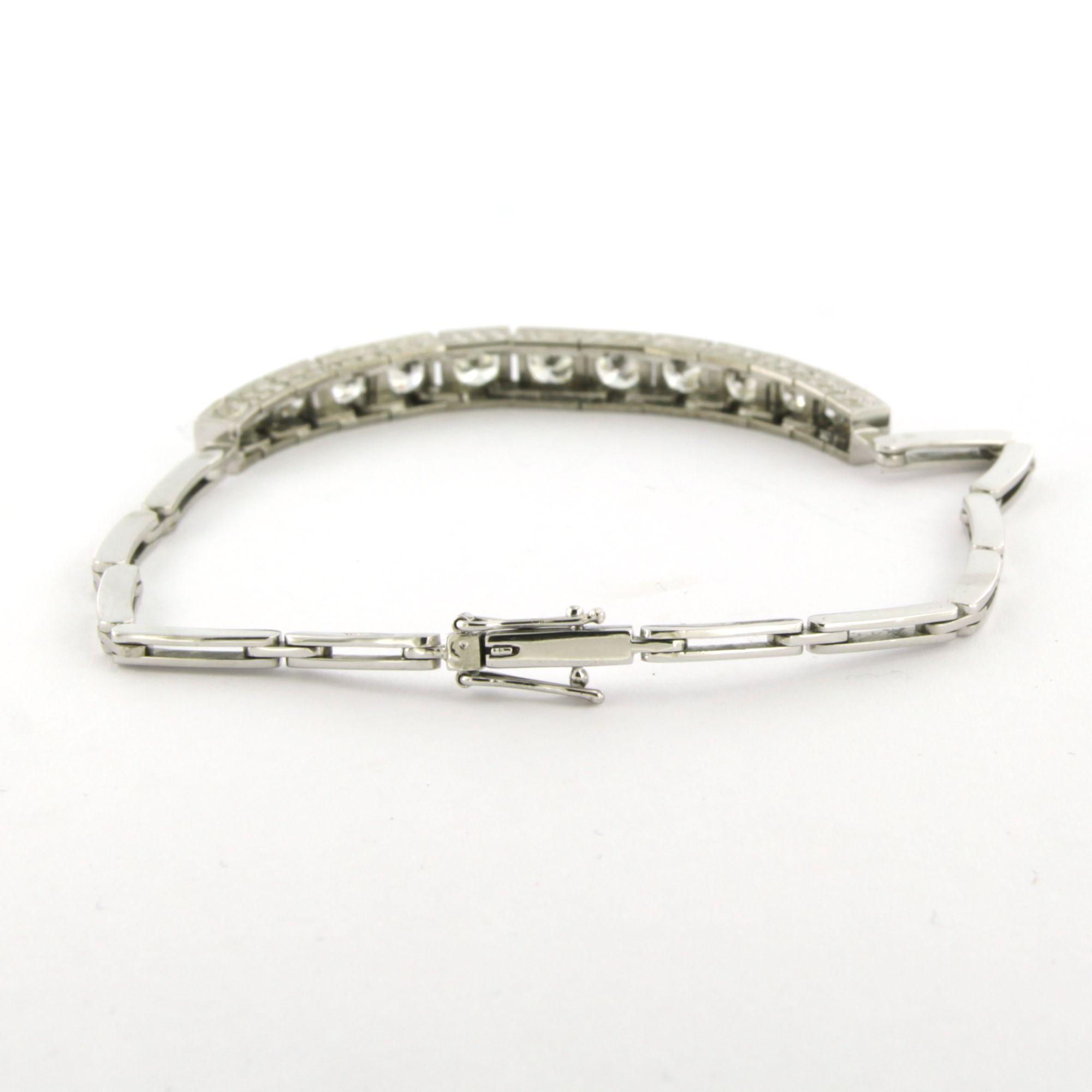 14 Kt. witgouden schakelarmband bezet met briljant geslepen diamanten tot. 1.75ct- 9.8 gram
