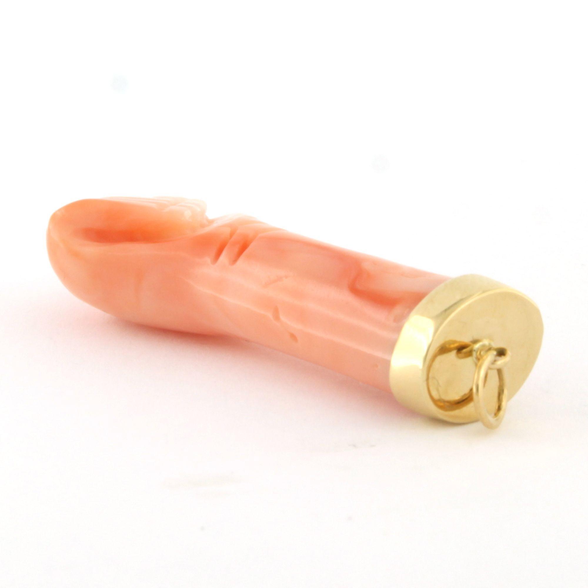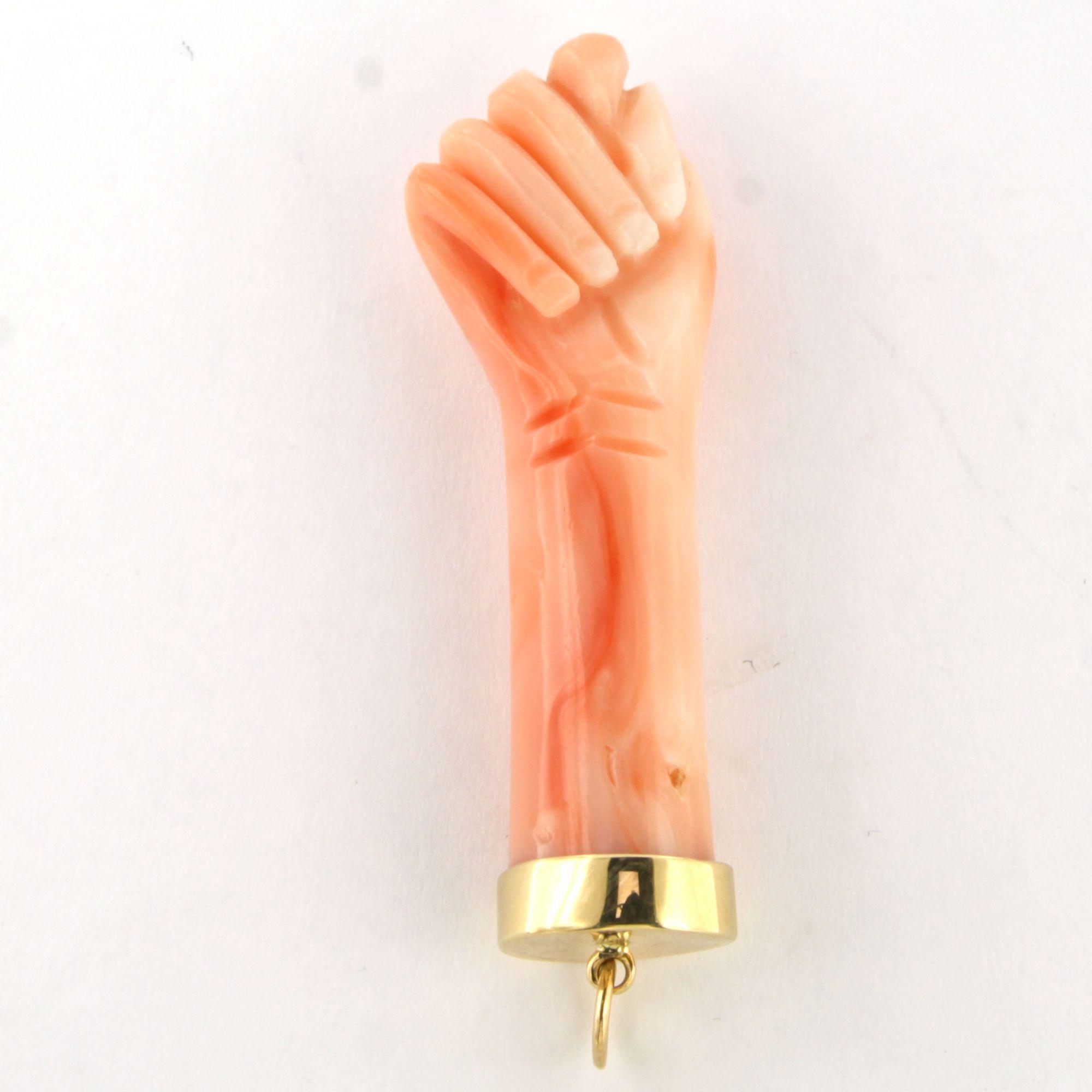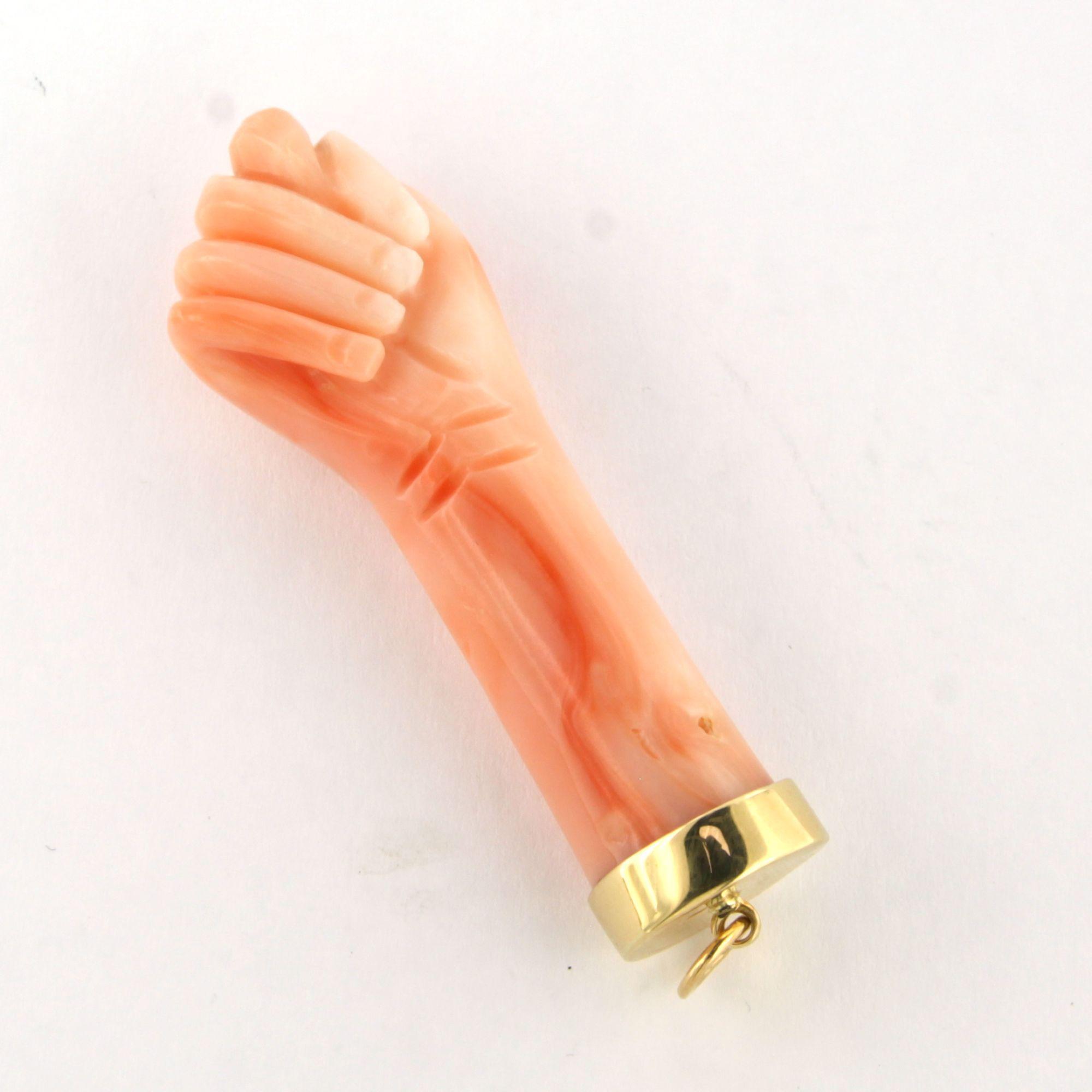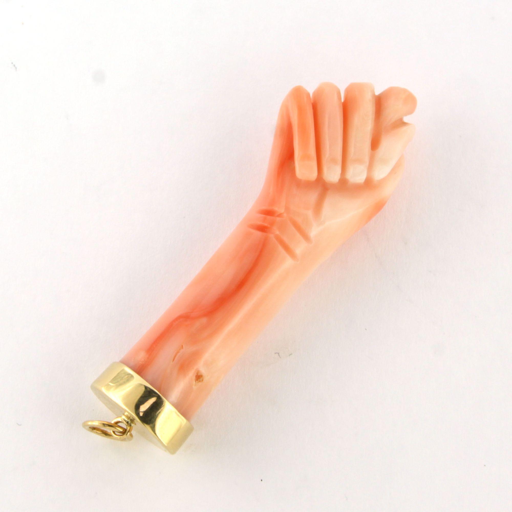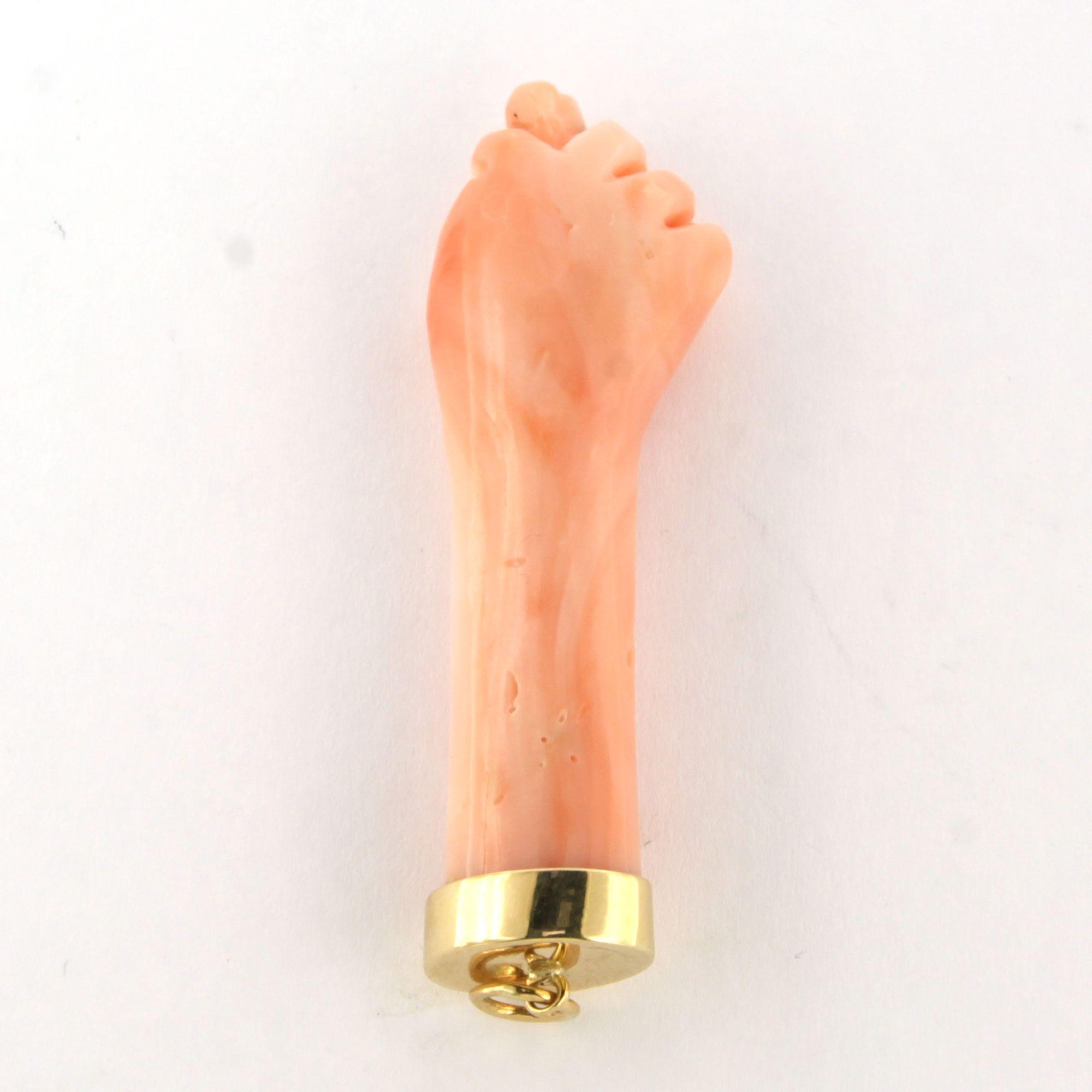 18 Kt. geelgouden hanger met een koraal in een vorm van een hand - 10.4 gram