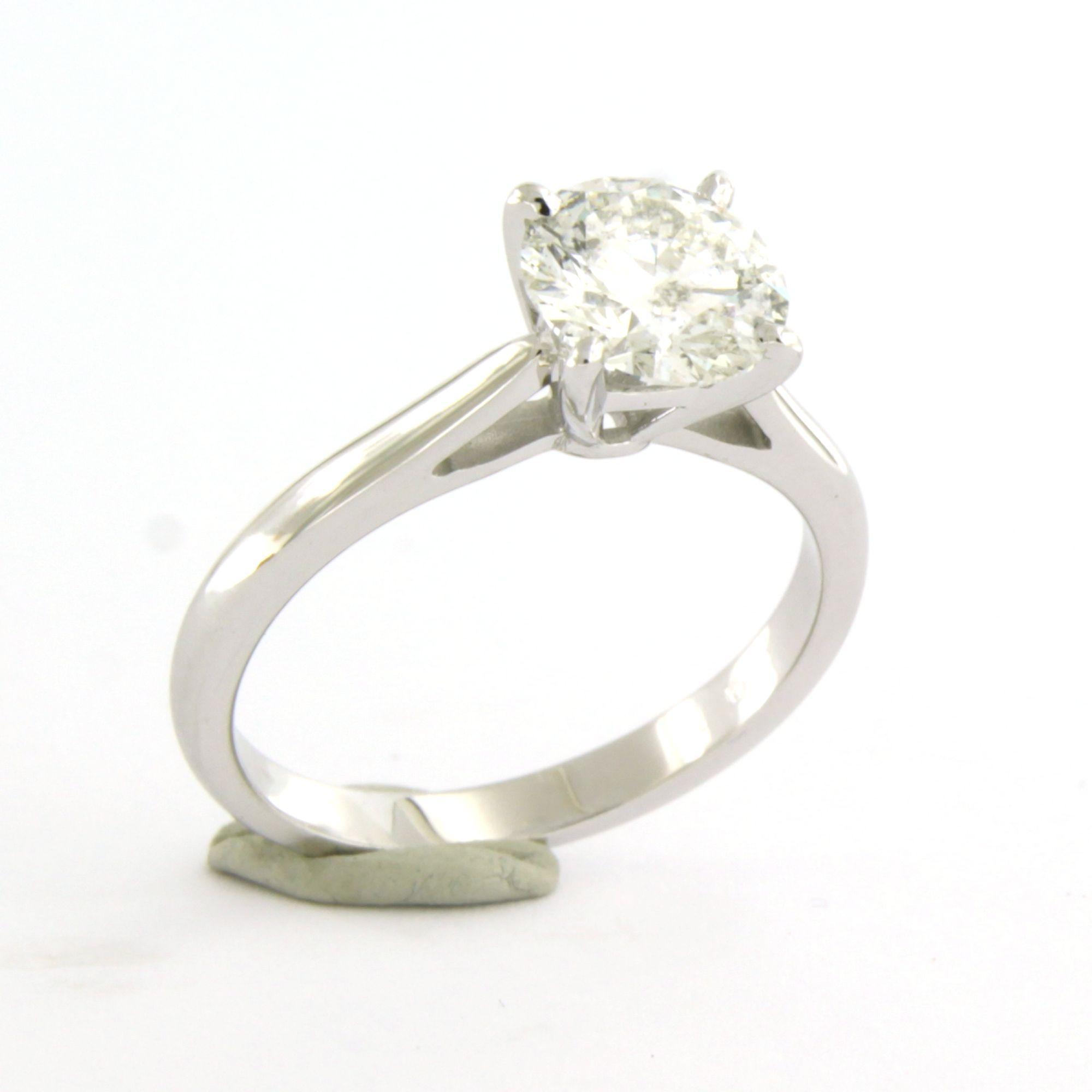 18 Kt. witgouden solitair ring bezet met een briljant geslepen diamant tot. 1.62ct - G - I1 - volgens IGI diamant rapport - ringmaat 17.5(55)