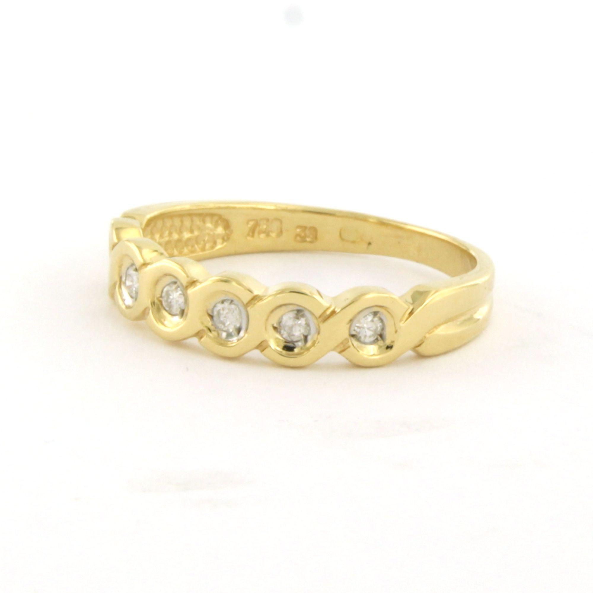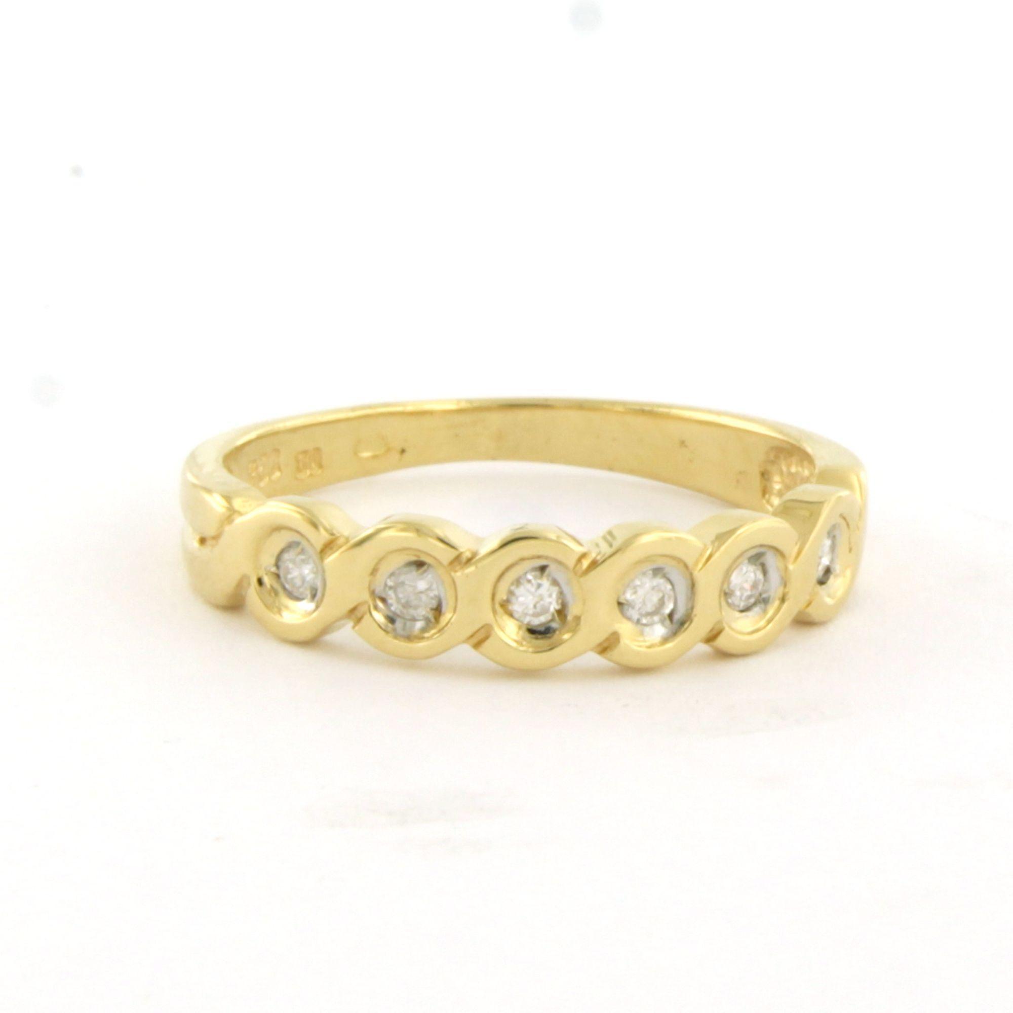 18 Kt. geelgouden ring bezet met briljant geslepen diamant tot. 0.10ct - ringmaat 16.25(51)