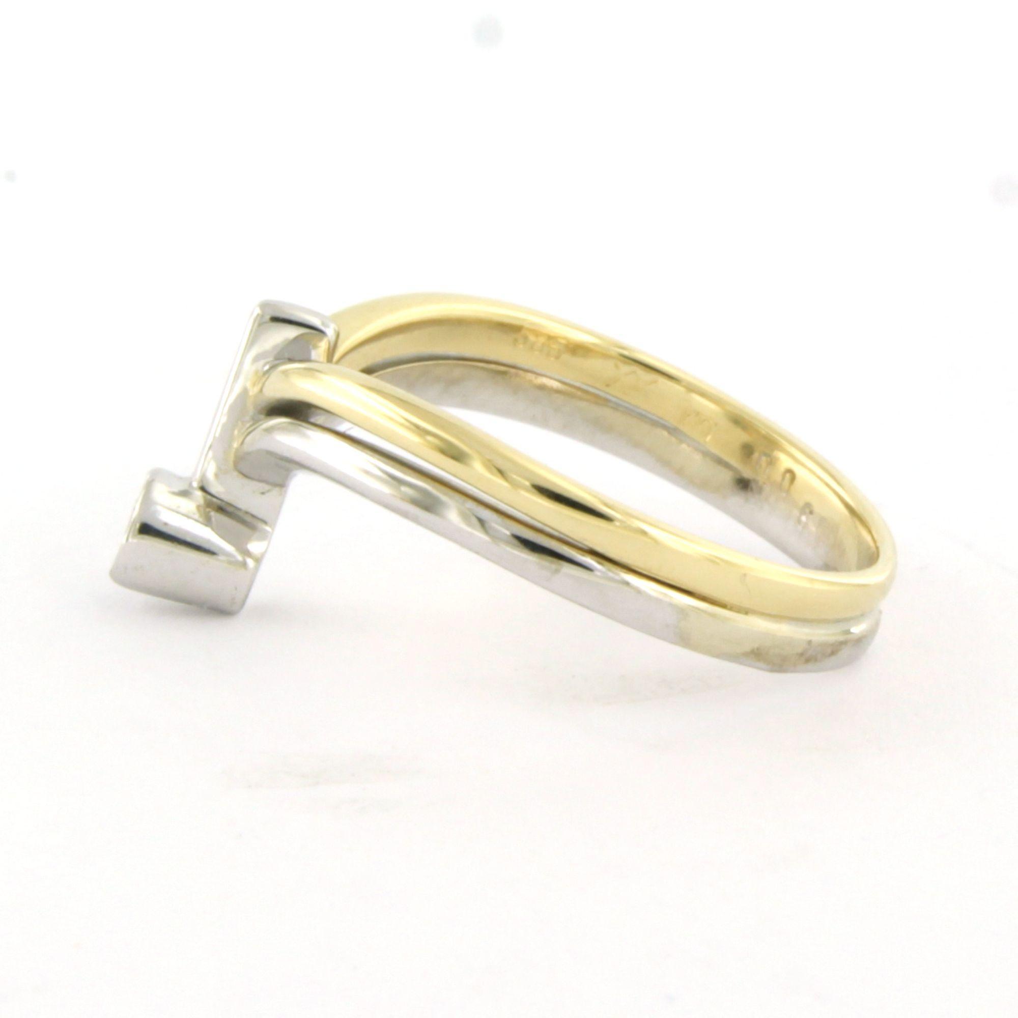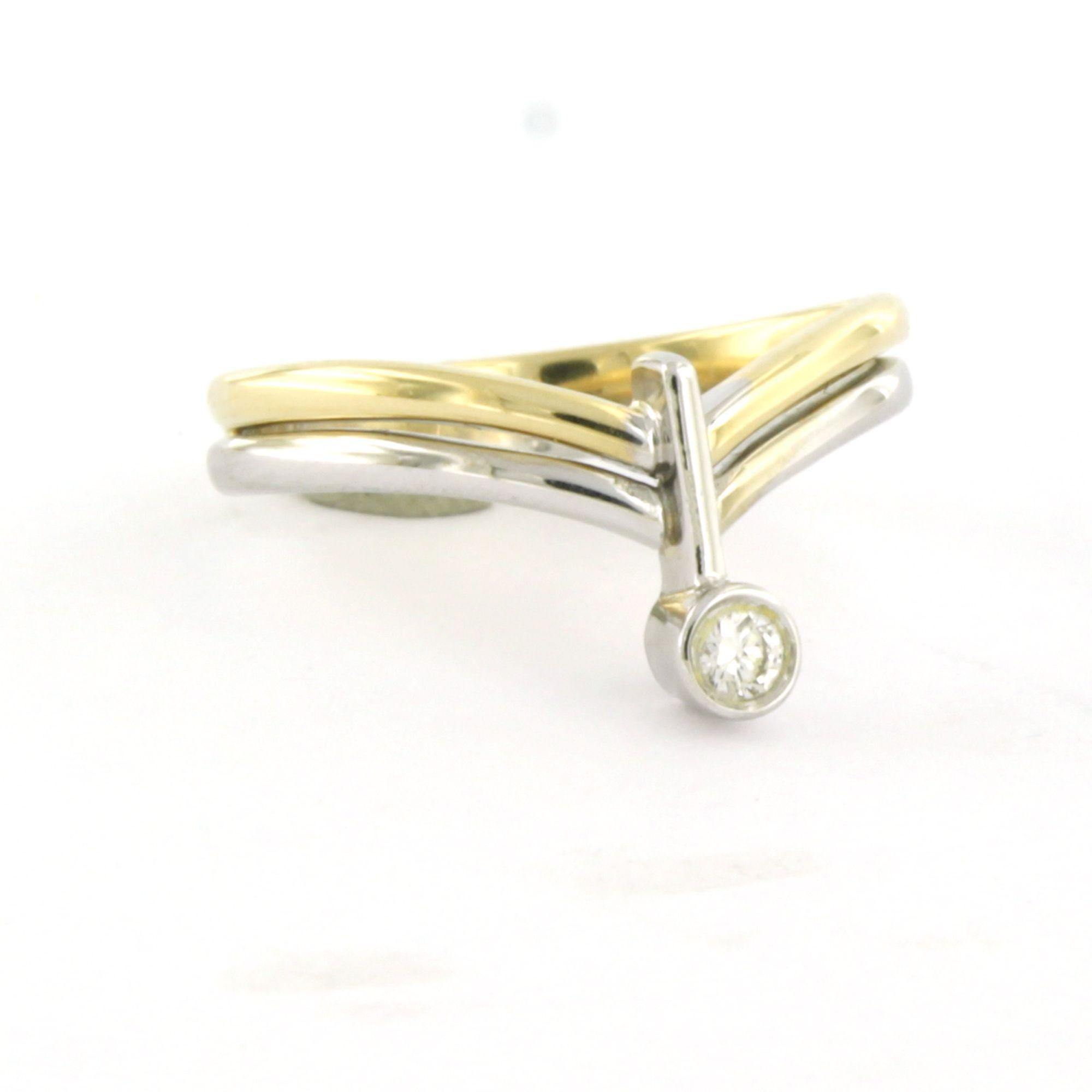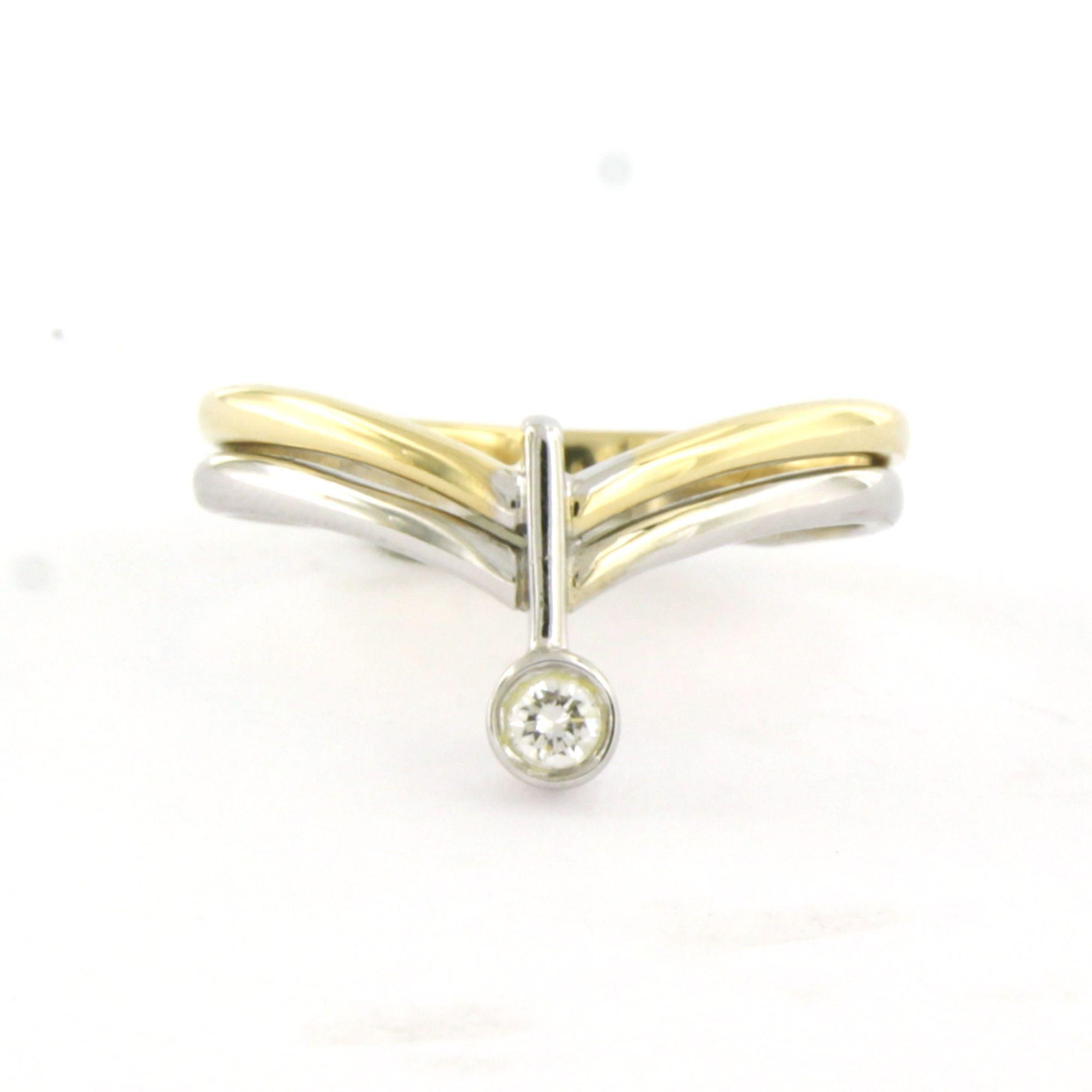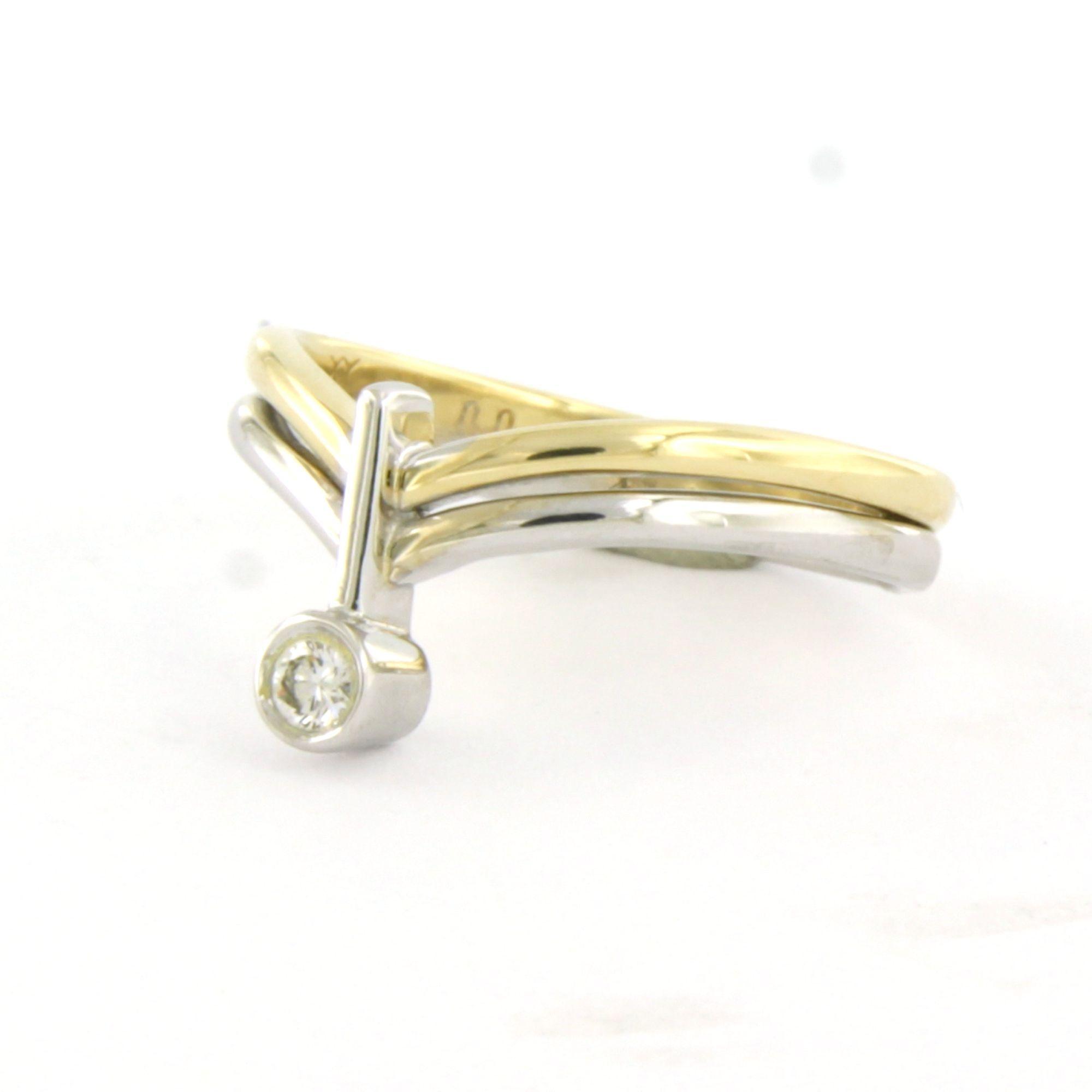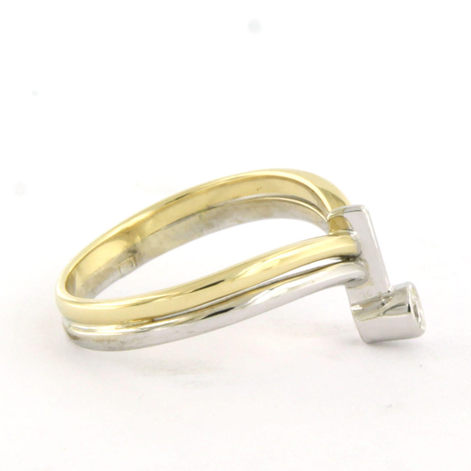 14 Kt. bicolour gouden ring bezet met briljant geslepen diamant tot. 0.05ct - F/G - VS/SI - ringmaat 17(53)