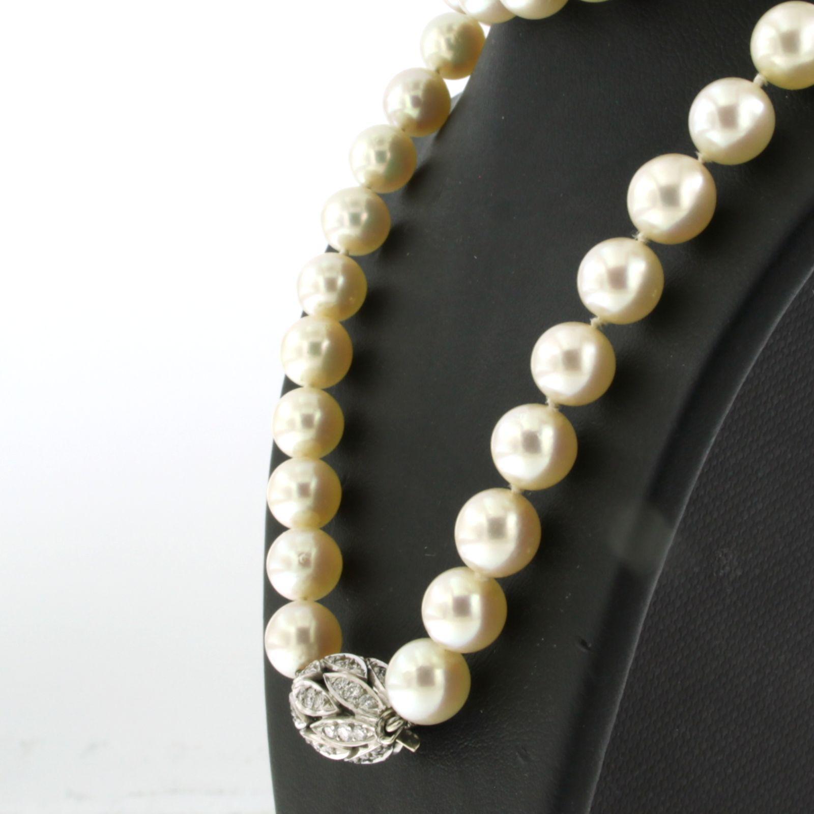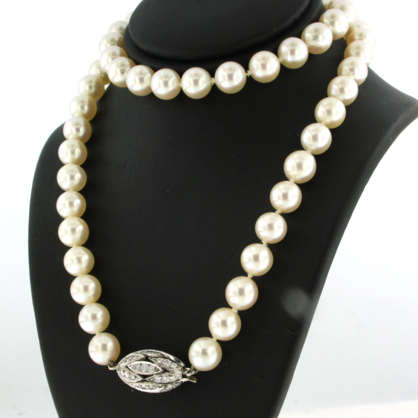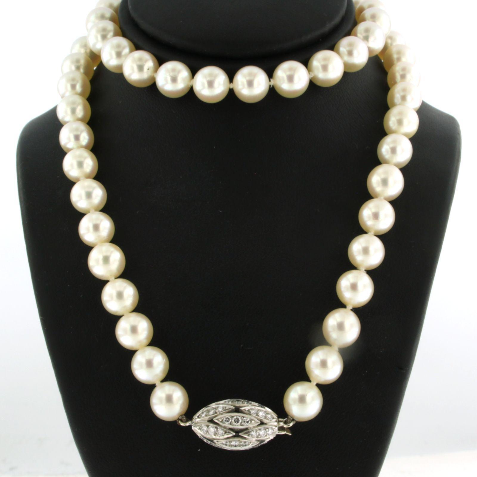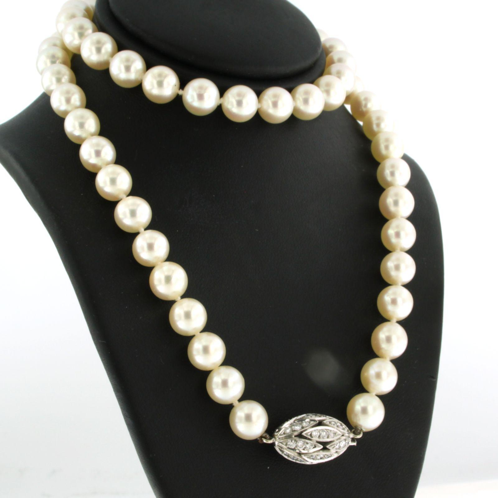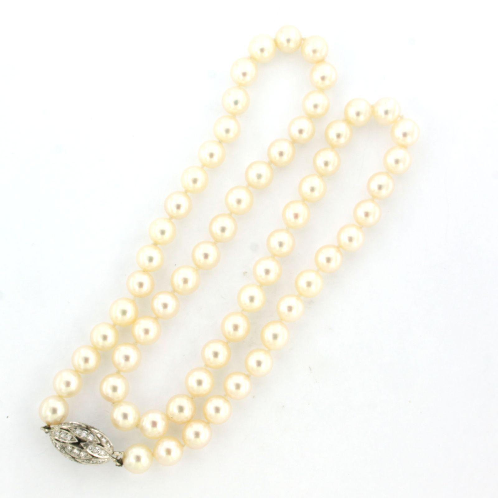 E. HABAN 18 Kt. witgouden solt bezet met briljant geslepen diamanten tot. 1.00ct - F/G - VS/SI - aan een parel collier, 50 cm lang.