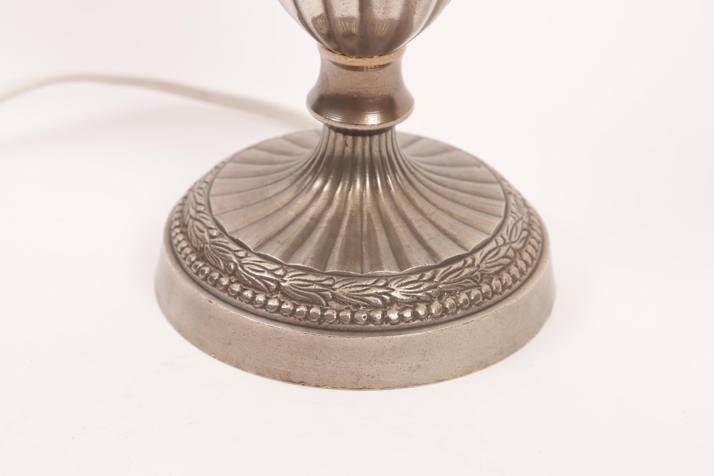 Tafellamp met gesatineerd glazen kap, h.42 cm.