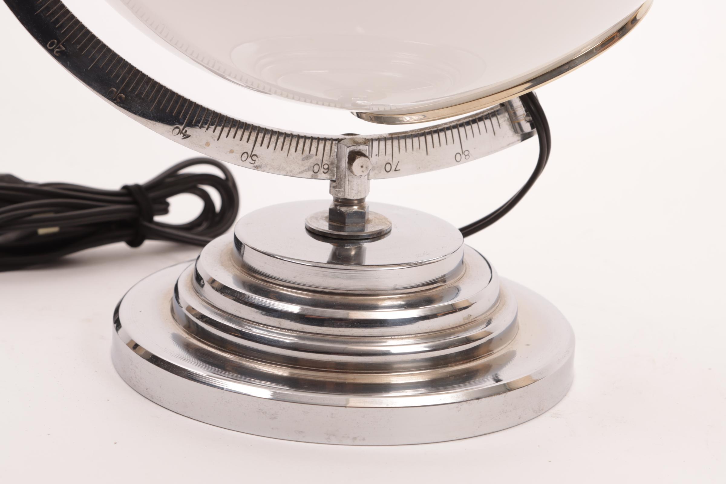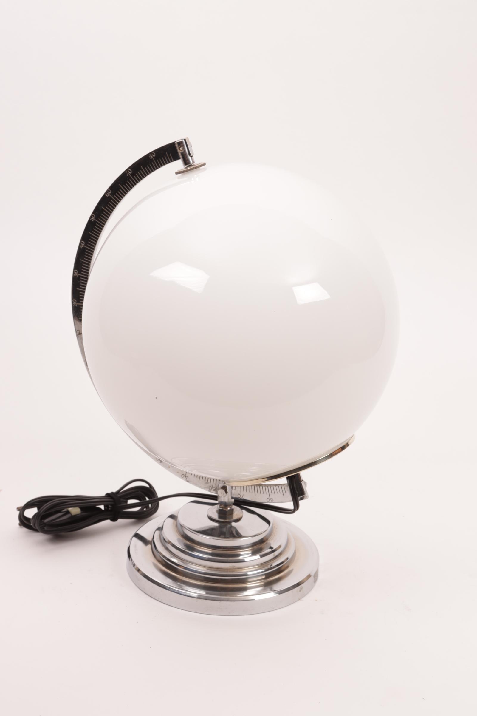 Verchroomde tafellamp met witte glazen bol, h.35 cm.