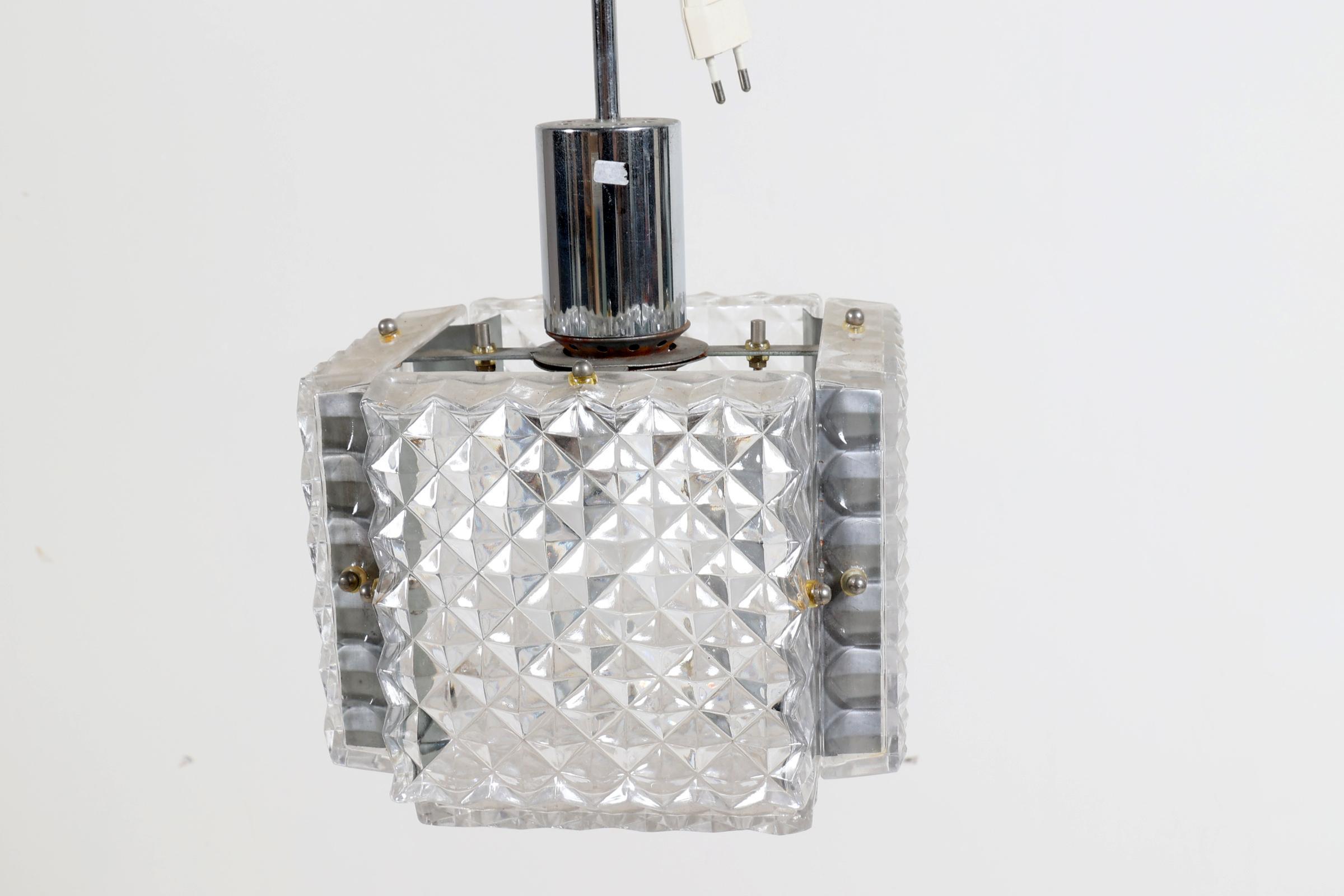 Verchroomde vintage hallamp met glasplaten in hoogreliëf