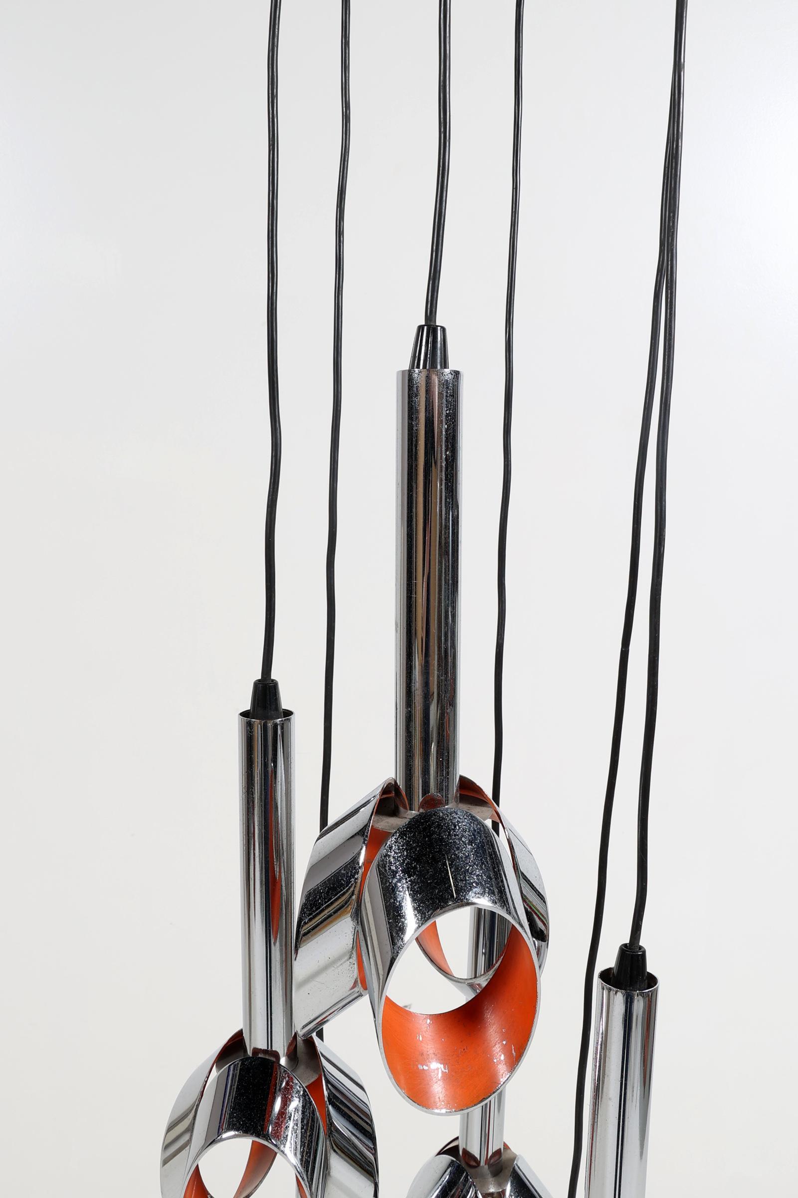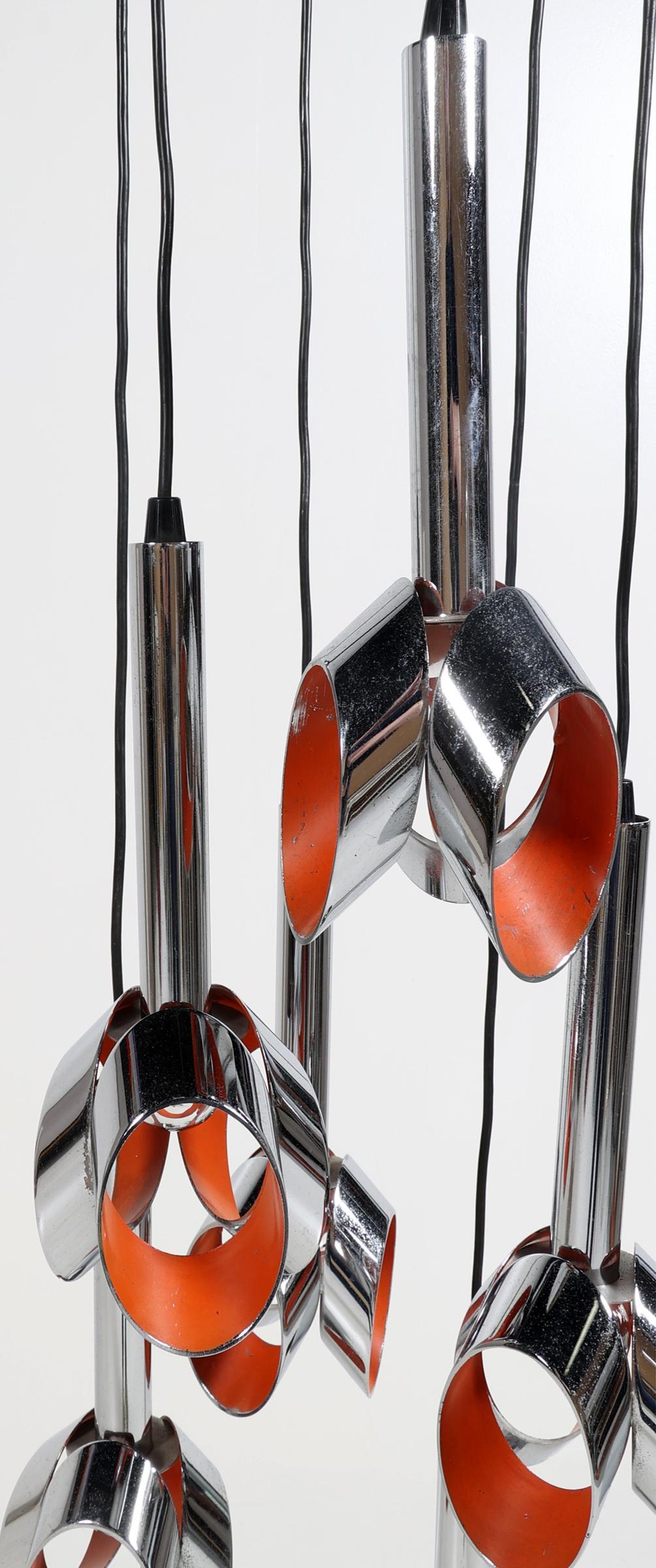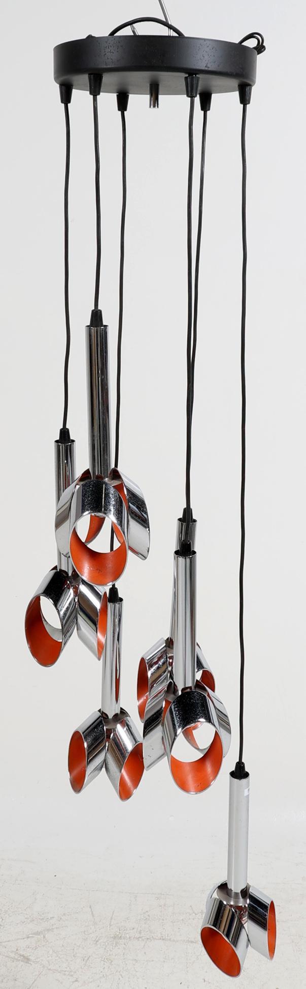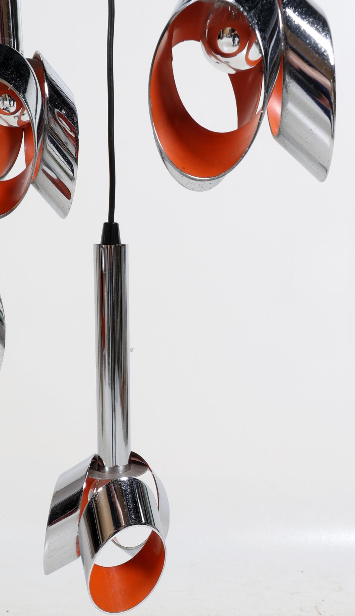 Verchroomde design hanglamp met oranje accenten