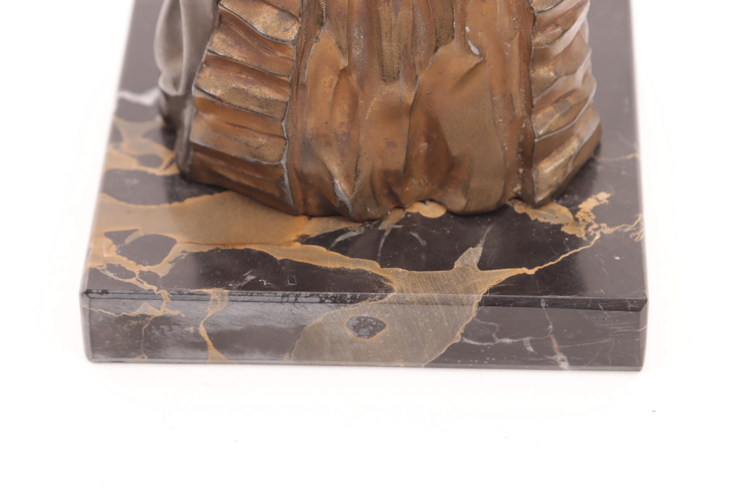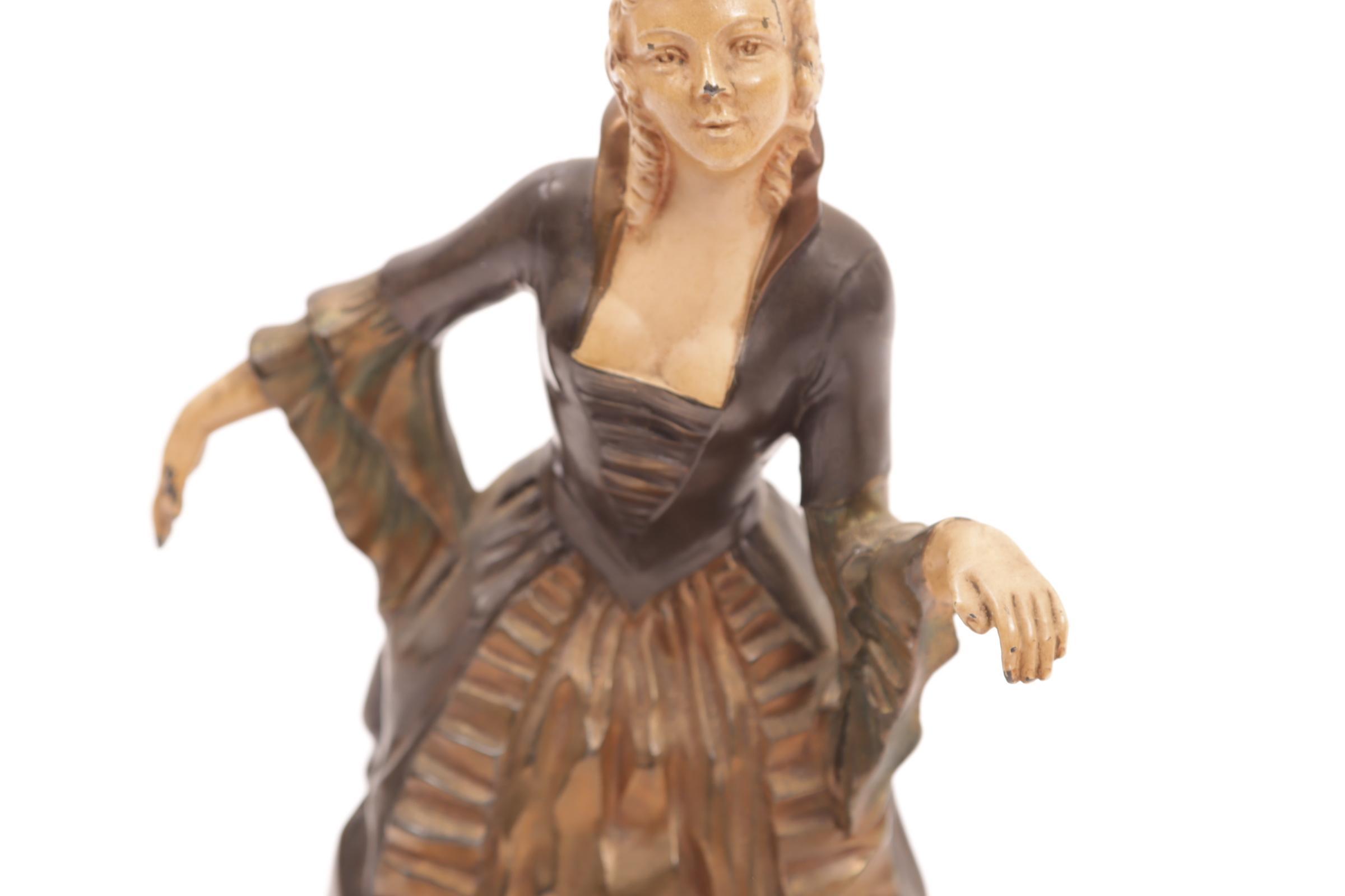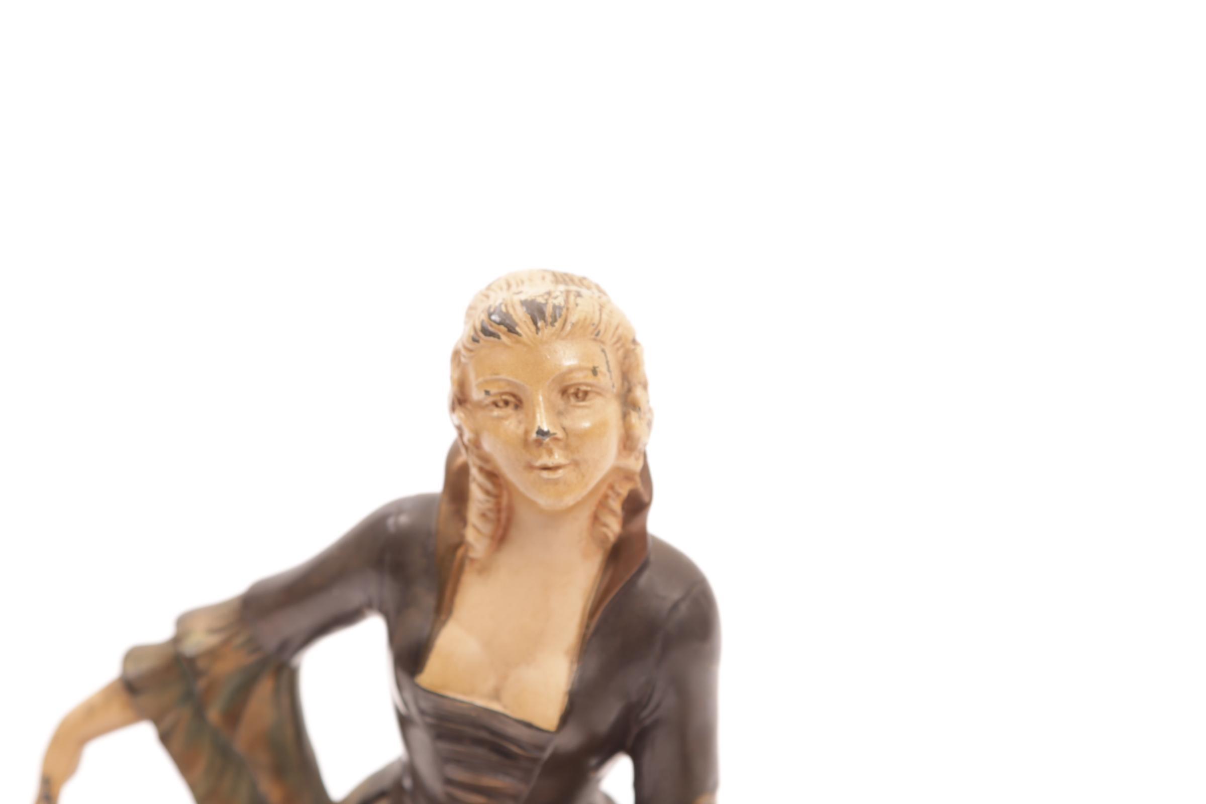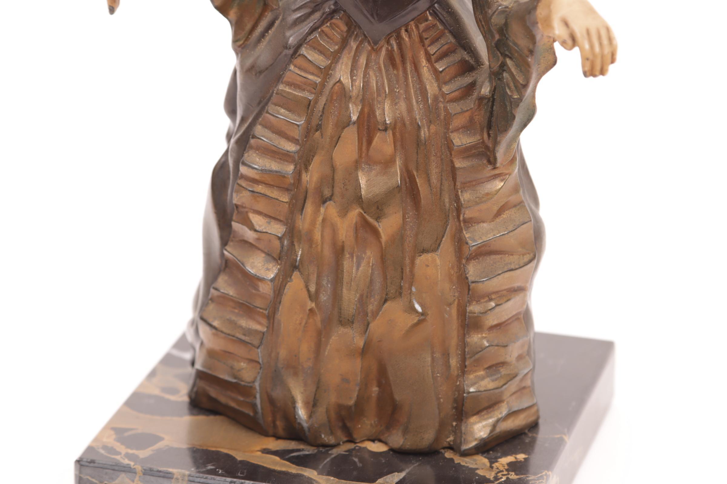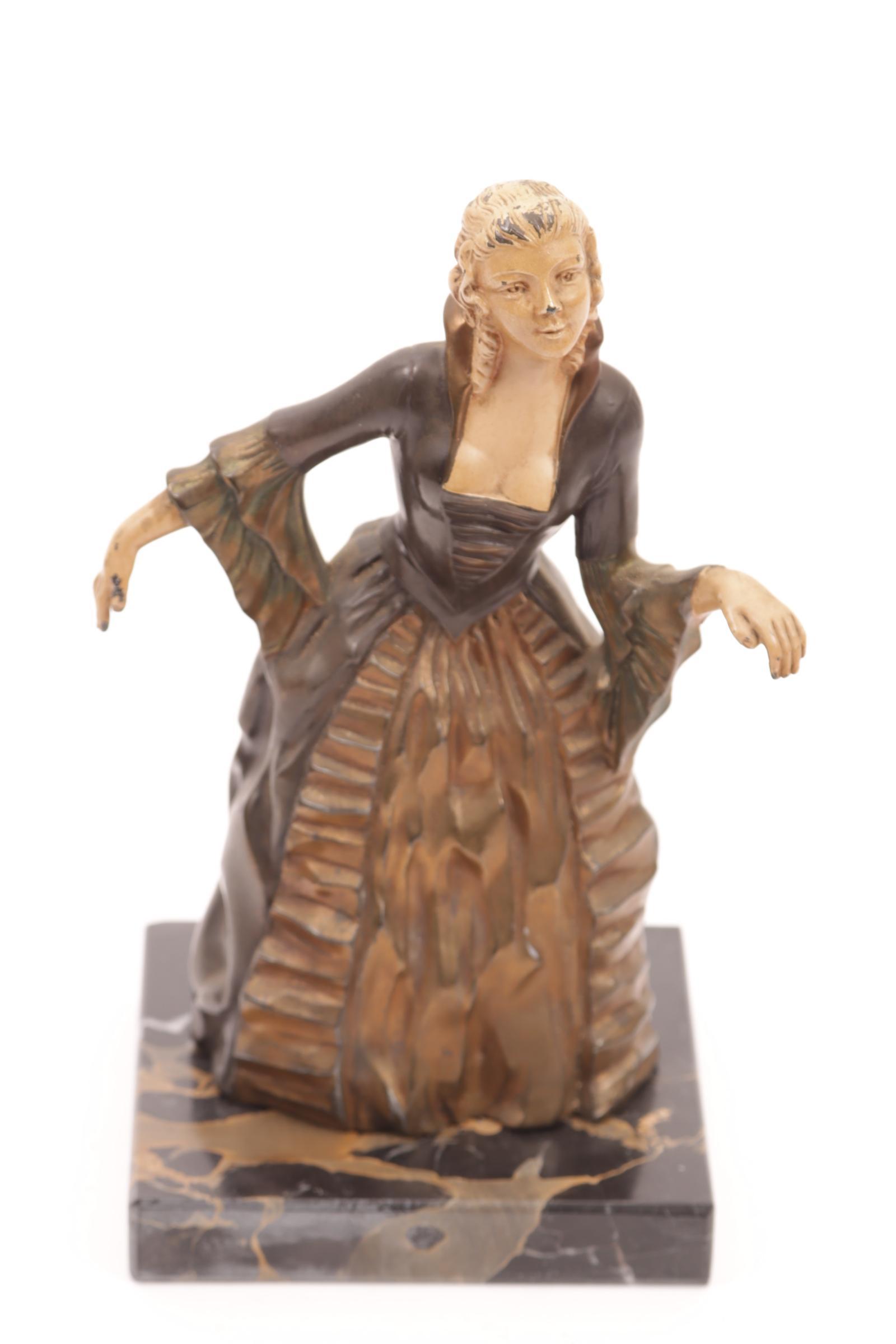 Beeld van dame op marmeren voetstuk, h.23 cm.