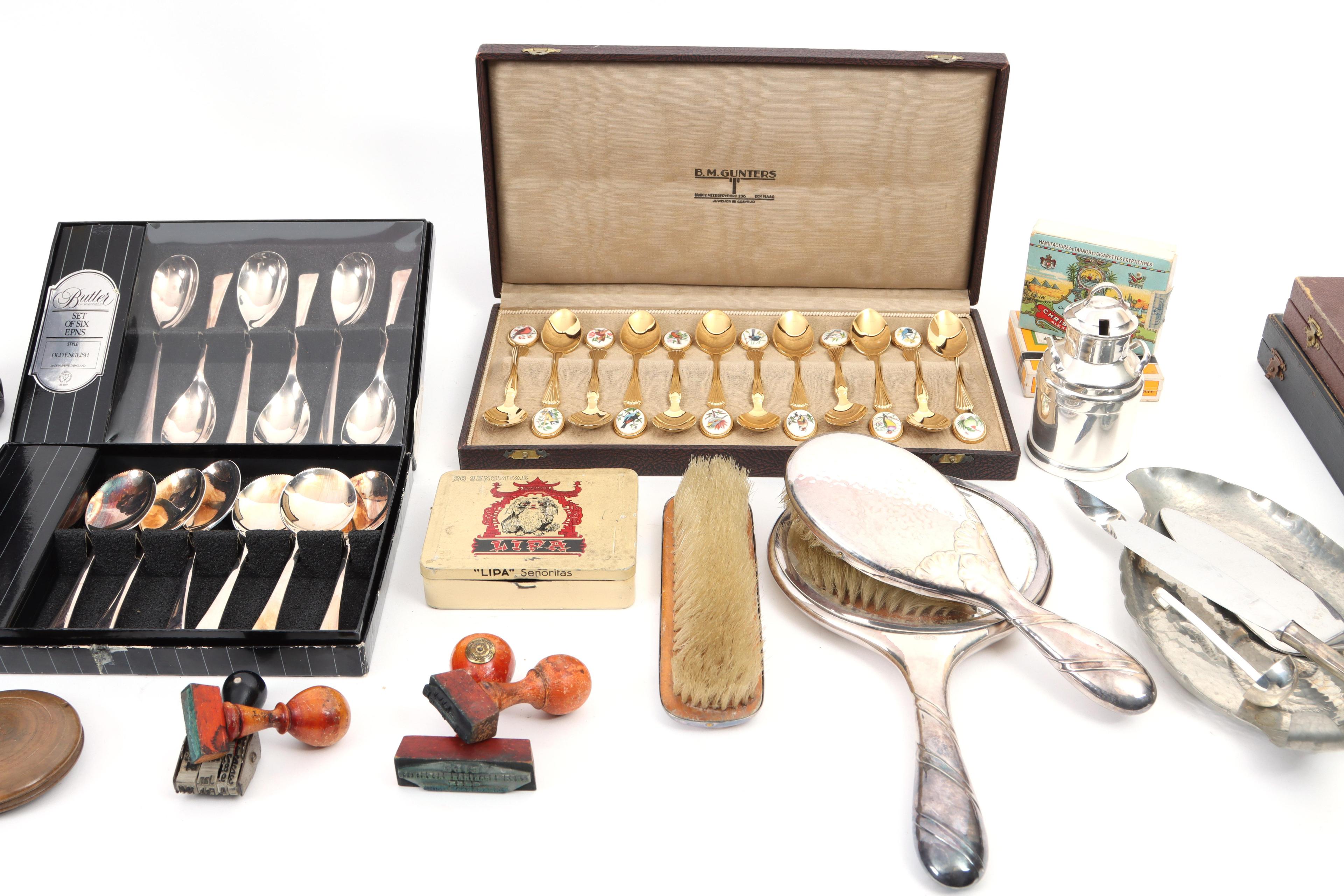 Koop divers kleingoed w.o. messenleggers, pleet kap set, houwsnijwerk, petjes, etc.