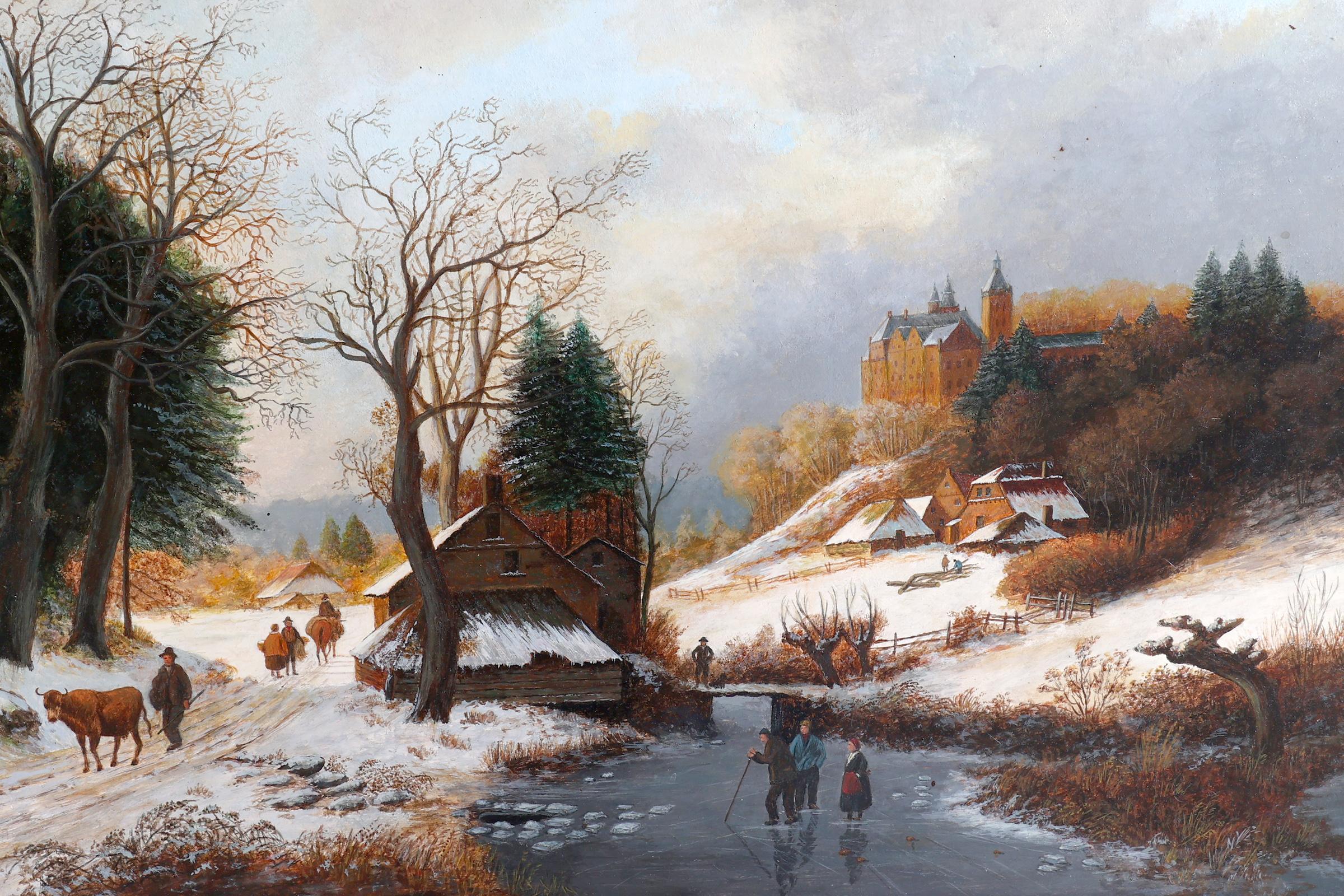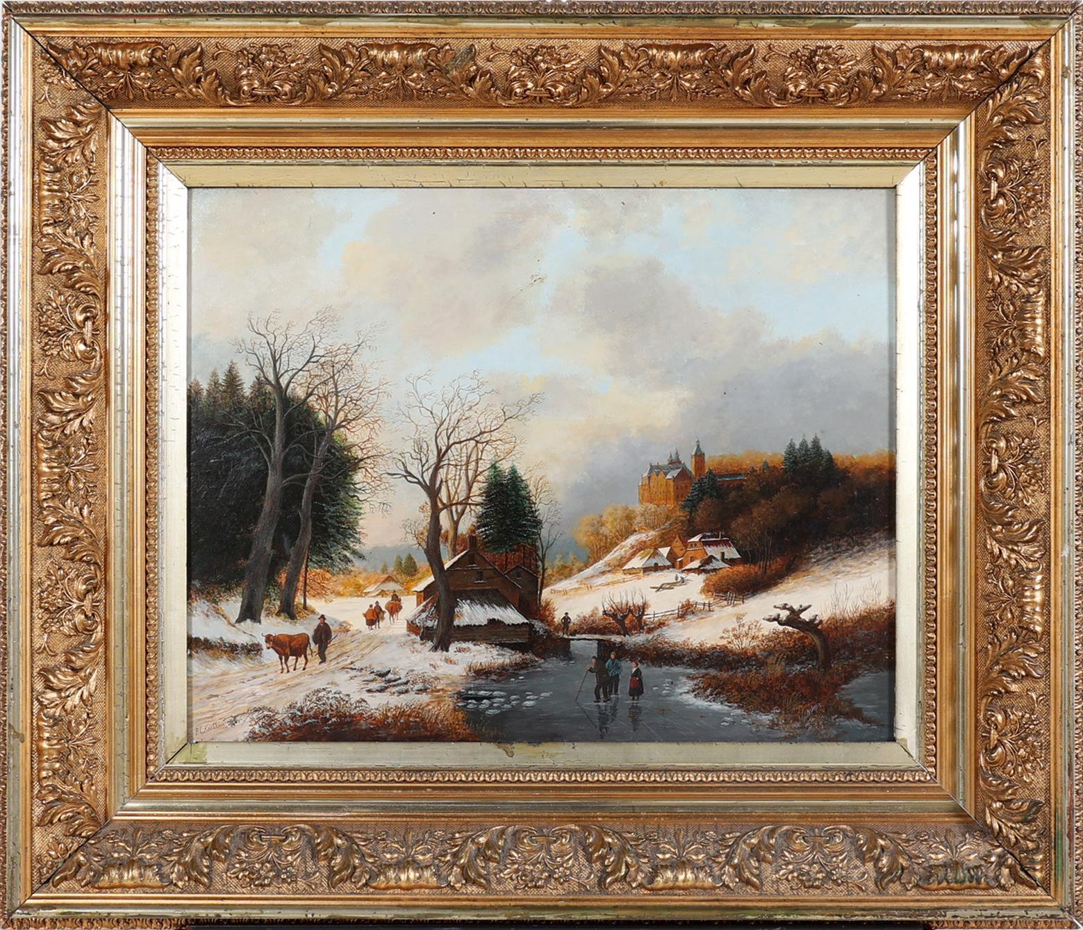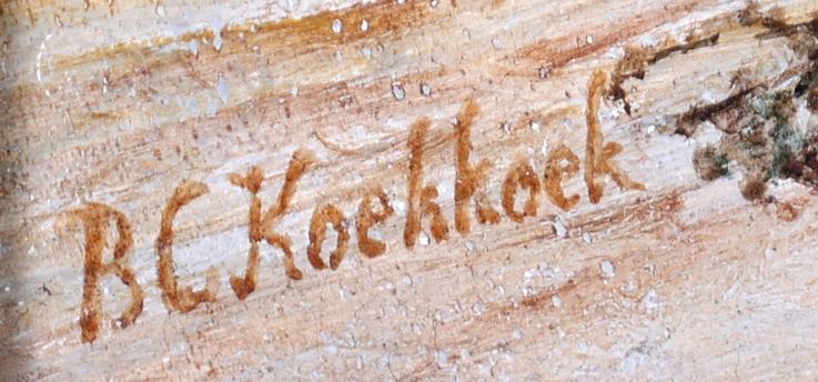 Naar B.C. Koekoek, Winterlandschap met personen, olieverf op paneel, 60 x 46 cm.
